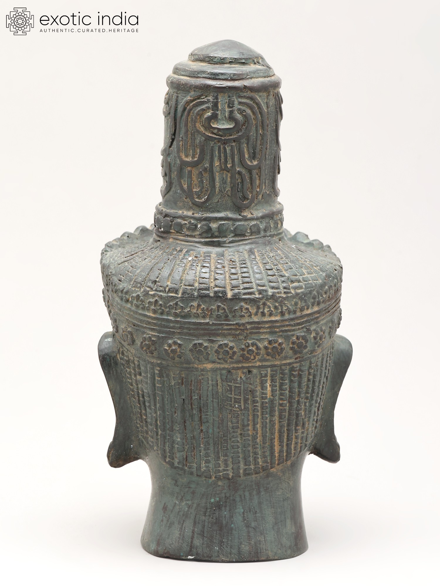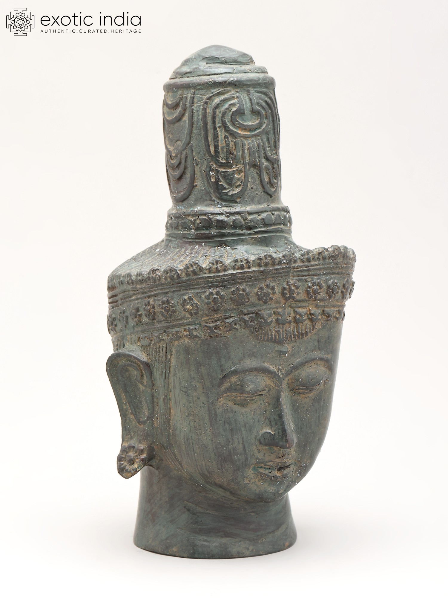 11" Lord Buddha Head | Brass Statue with Inlay Work