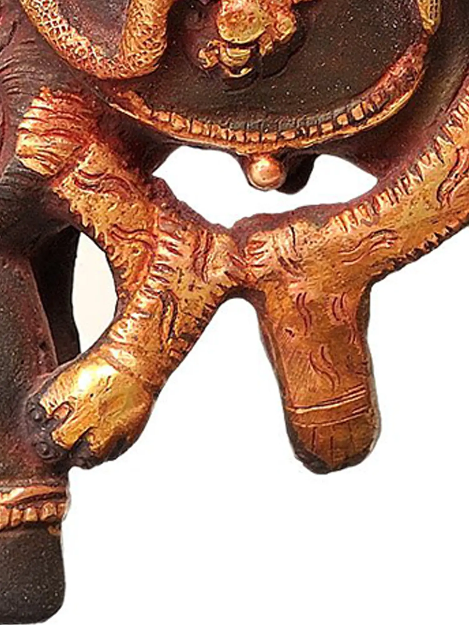 Crafted from high-quality brass, this statue is a testament to the enduring traditions of Indian metal artistry. Each detail, from the intricate facial features and the ornate crown to the powerful musculature and the flowing drapery, has been meticulously hand-finished by skilled artisans. The choice of brass not only lends a durable and lustrous quality to the sculpture but also holds significant cultural and religious importance in India, often used for sacred objects and divine representations. The rich patina and the contrasting gold highlights enhance the depth and visual impact of the piece, making it a captivating focal point for any altar, meditation space, or collection of sacred art. This handmade creation carries the spirit and devotion of its creators, offering a tangible connection to the profound teachings of Tibetan Buddhism.