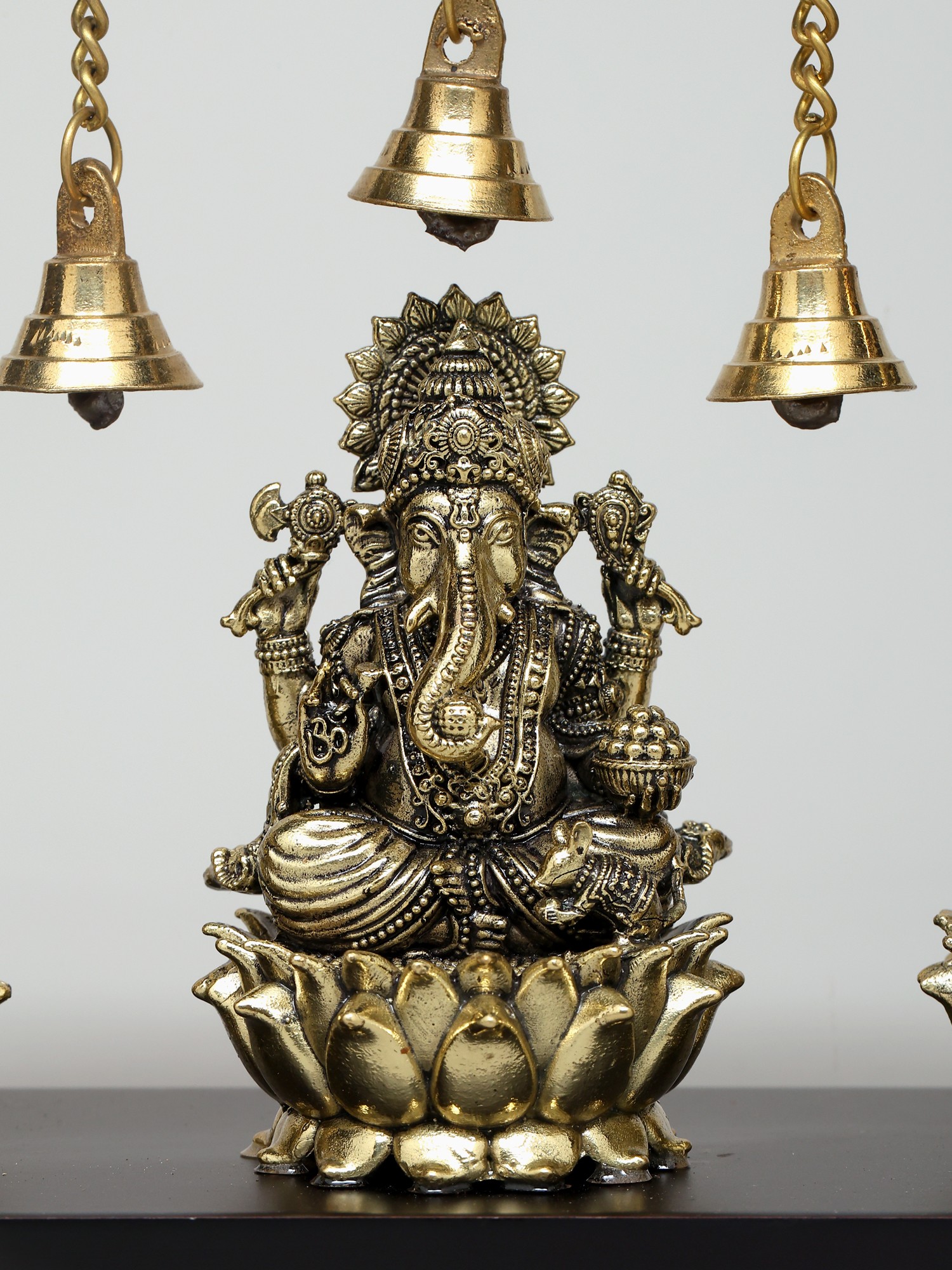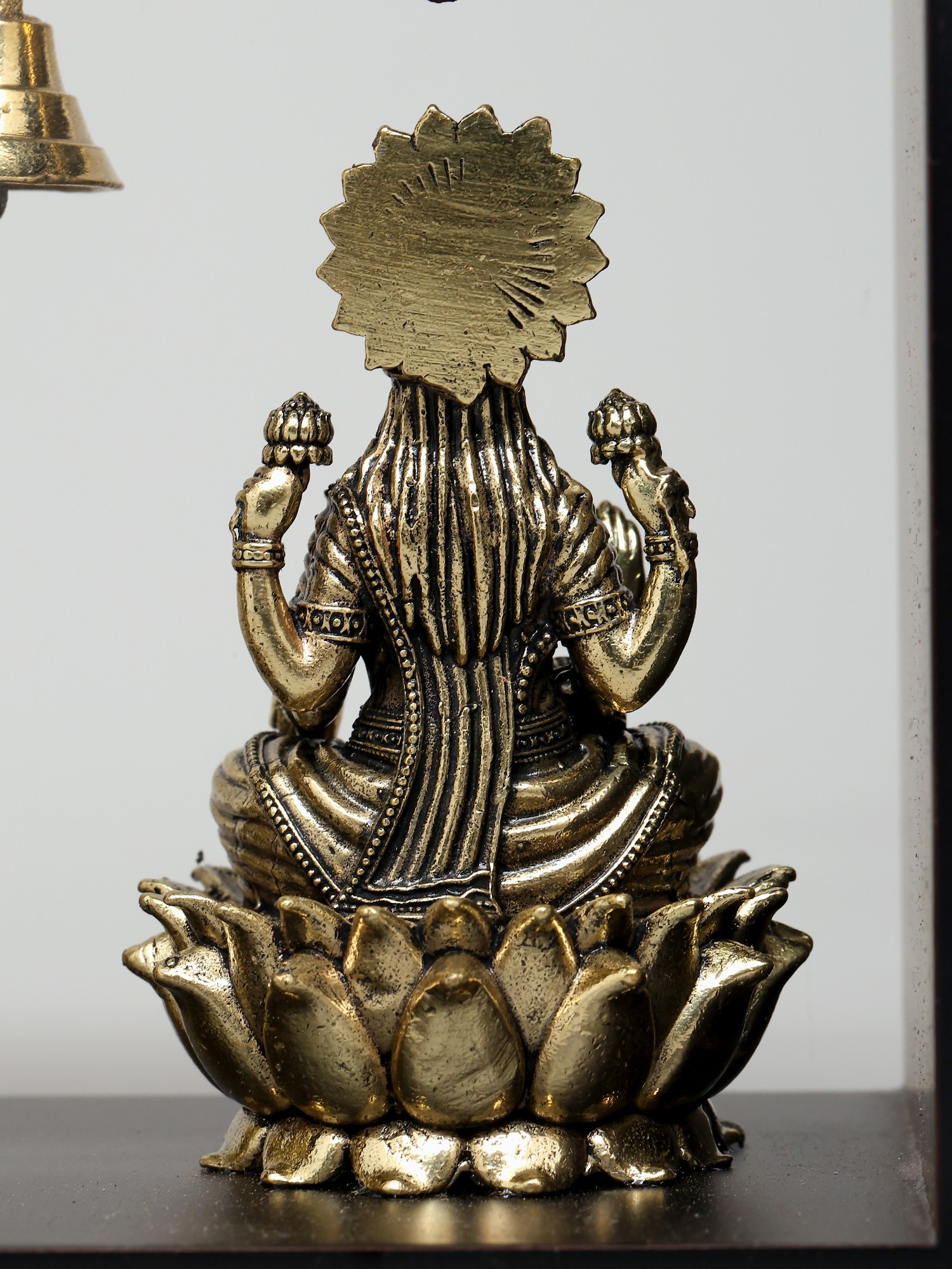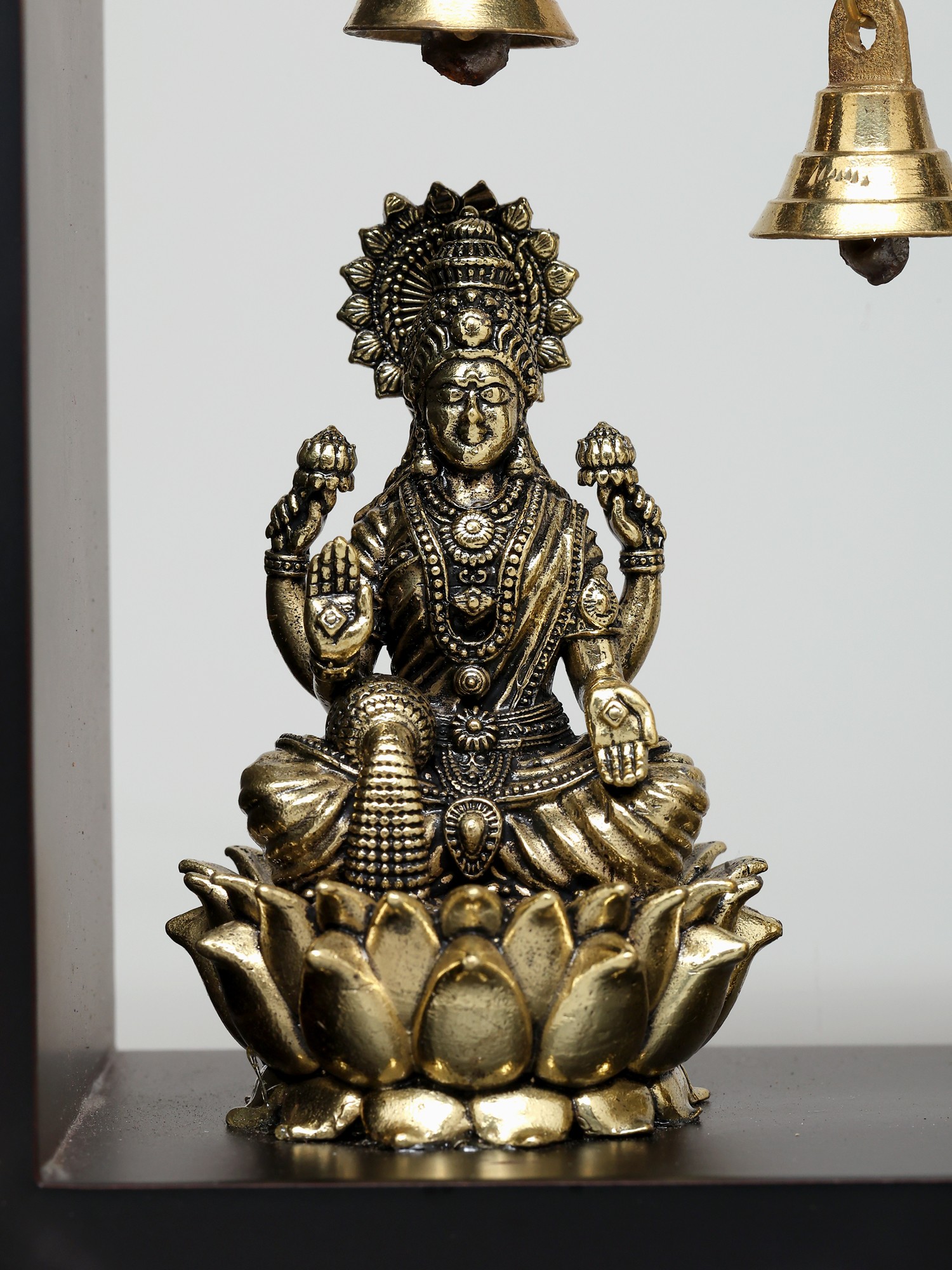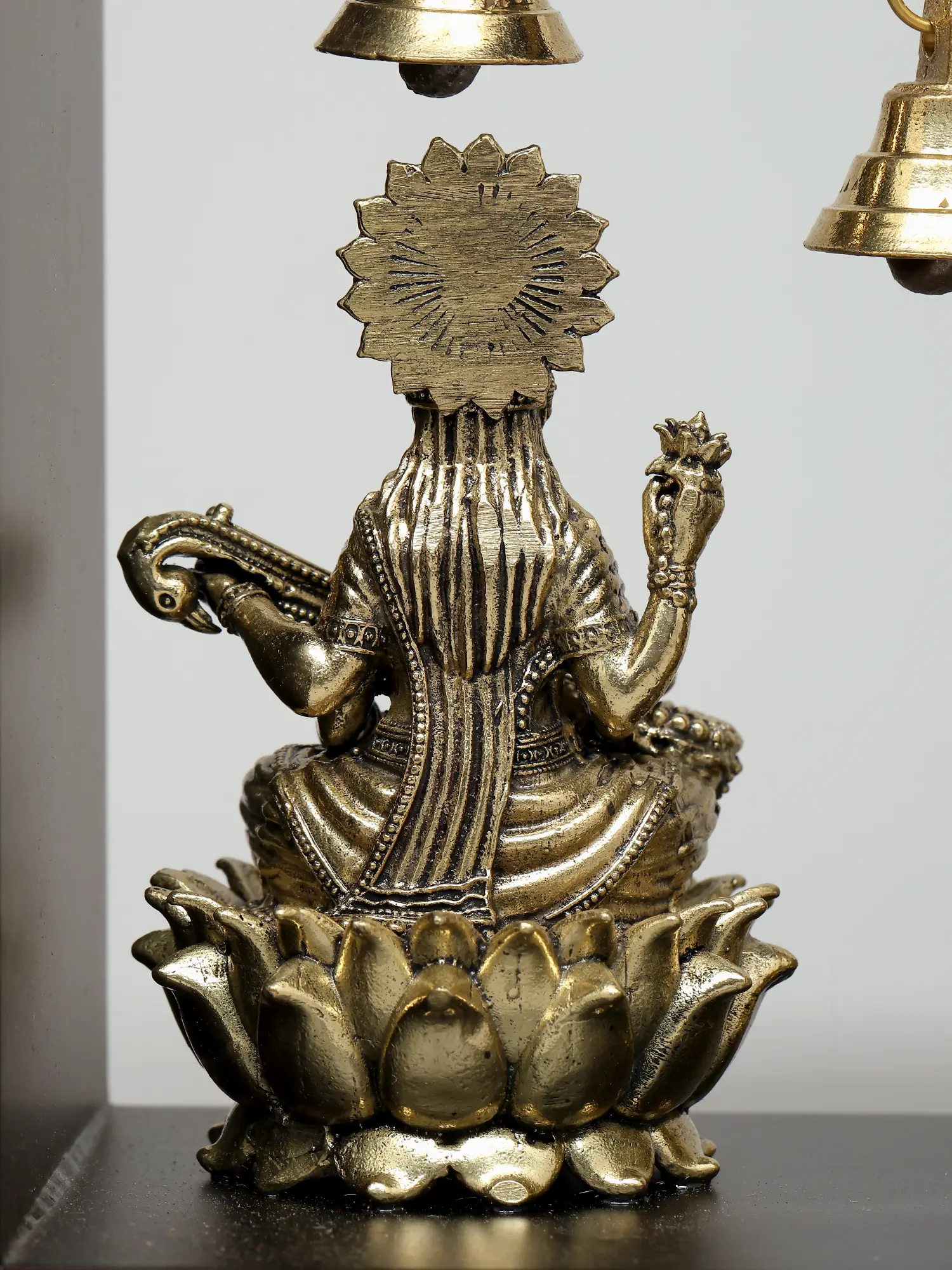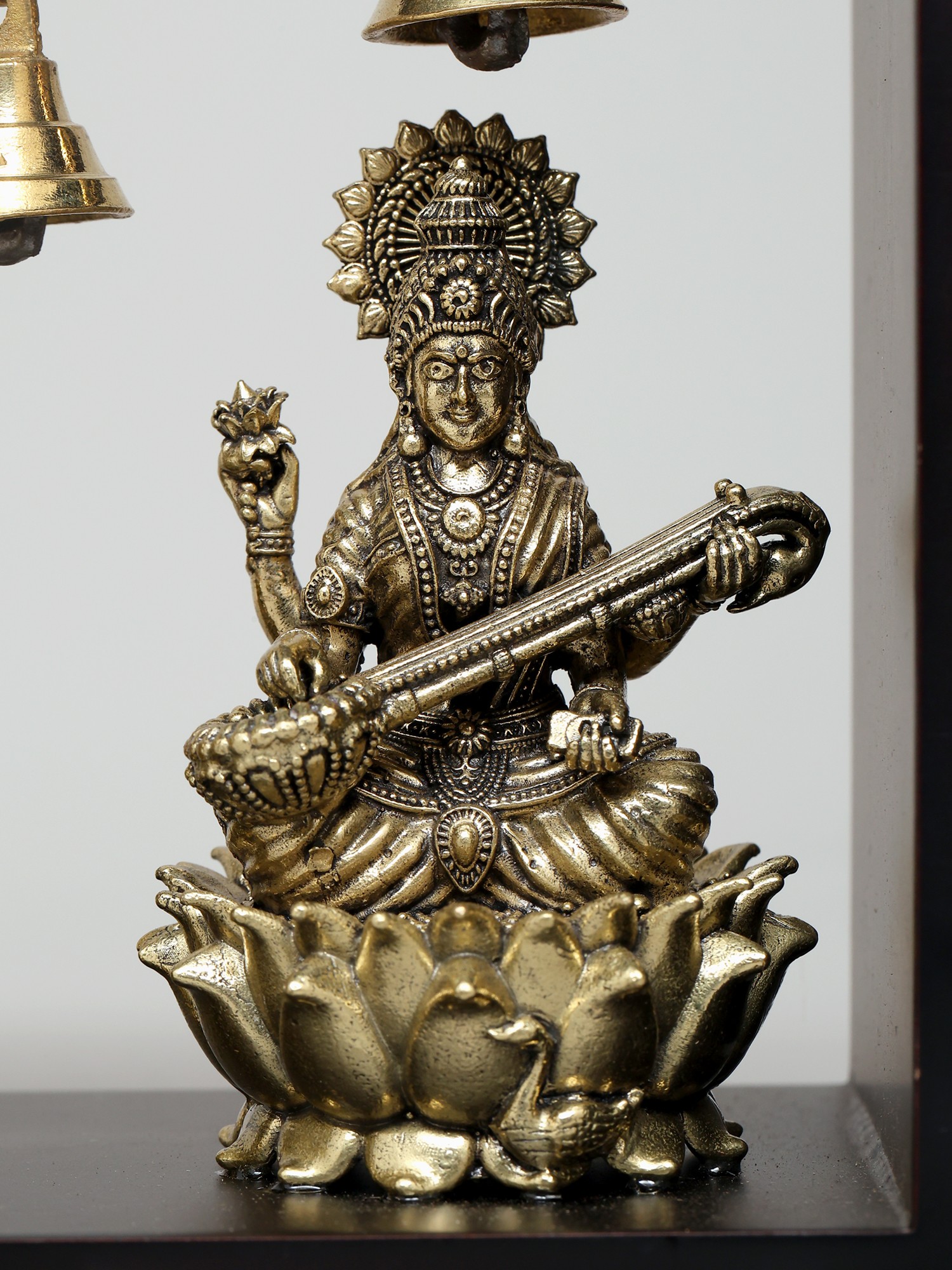 10" Superfine Lakshmi Ganesha Saraswati | Wood Framed Brass Sculptures | Wall Hanging