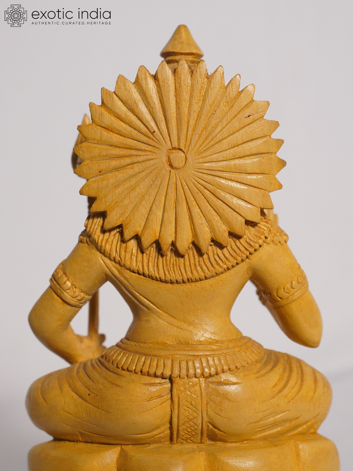 Behold a testament to faith and artistry, rendered in the gentle hues of white wood. This carefully carved statue depicts Lord Murugan, a revered deity in Hinduism, especially prominent in South India and Sri Lanka. The figure is seated in a posture of serene authority, a traditional asana signifying composure and divine presence. The hand, raised in the Abhaya Mudra, promises protection and dispels fear for those who seek refuge in him. Every line and contour speaks of the artisan's devotion, transformed into tangible form. The fine details, from the intricate jewelry adorning the deity to the meticulously crafted folds of the dhoti, showcase an understanding of traditional iconography and skilled craftsmanship.