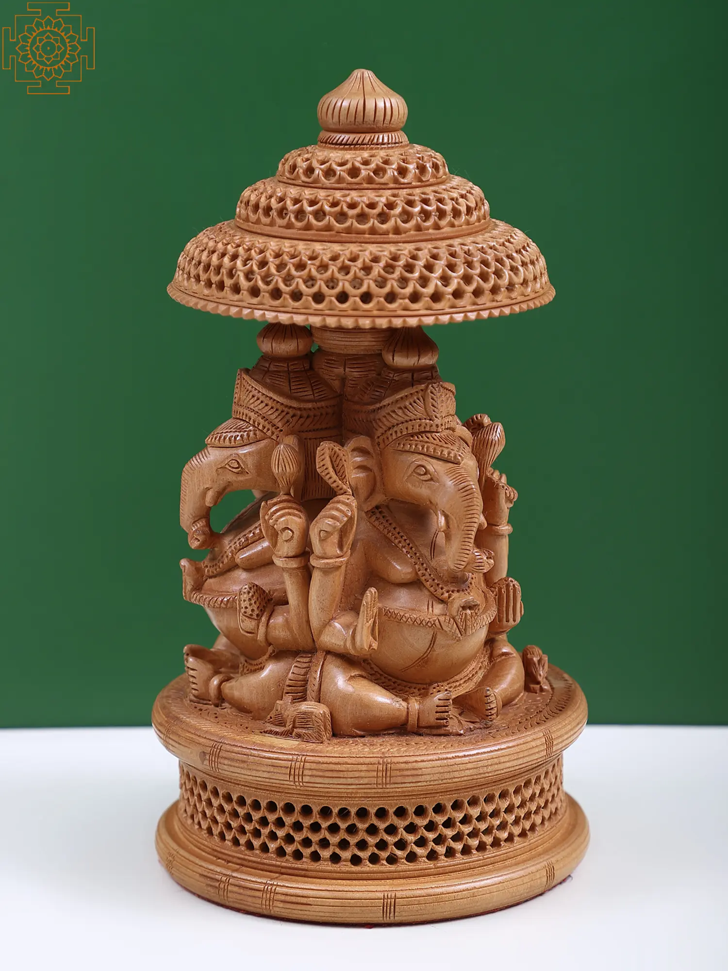 9" Wooden Lord Ganesha Three Face Attractive Design