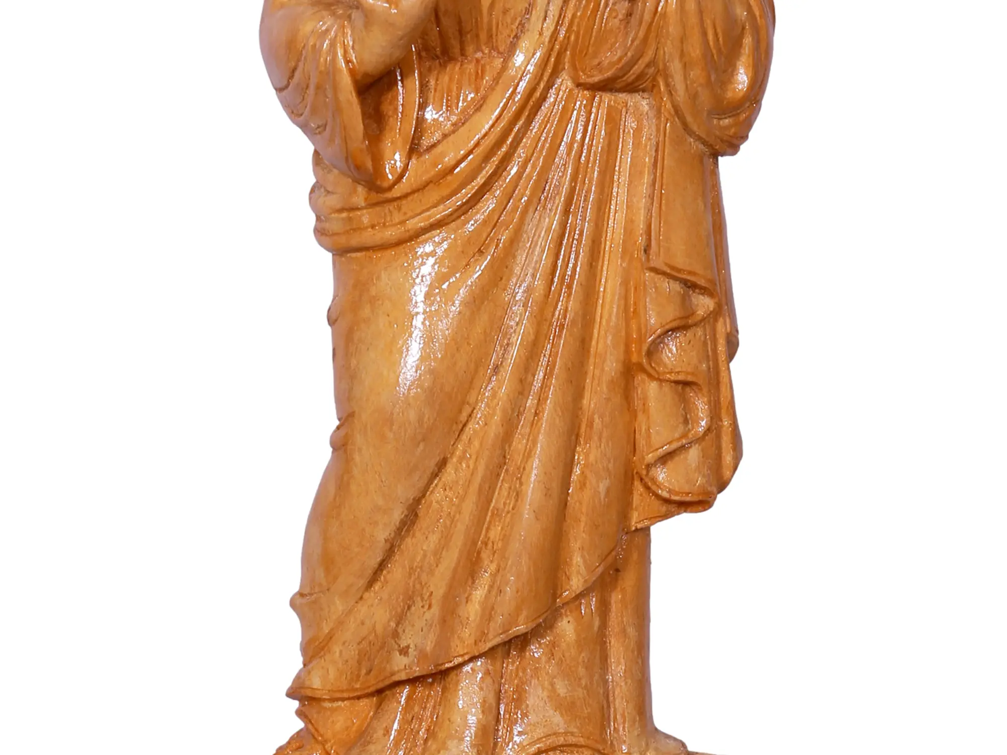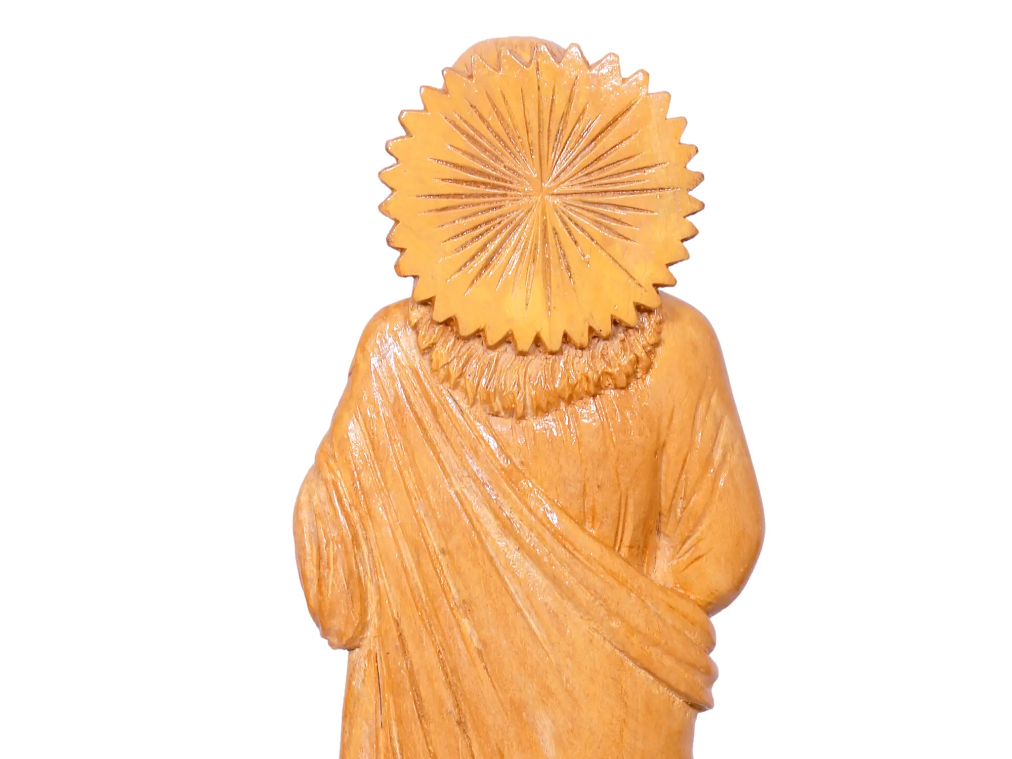 This 9-inch wooden statue is designed to be a lasting addition to your home or place of worship. Its compact size makes it versatile, suitable for placement on an altar, a mantelpiece, a bookshelf, or a desk. The natural wood grain and the subtle variations in the carving ensure that each piece is unique, carrying the individual touch of the craftsman. It serves as a beautiful and meaningful gift for loved ones, particularly during significant life events, holidays, or times when spiritual guidance is sought. This statue is a testament to the power of faith, rendered in a material that has graced sacred spaces for generations. It is a piece that can be cherished and passed down, a tangible connection to spiritual heritage.
