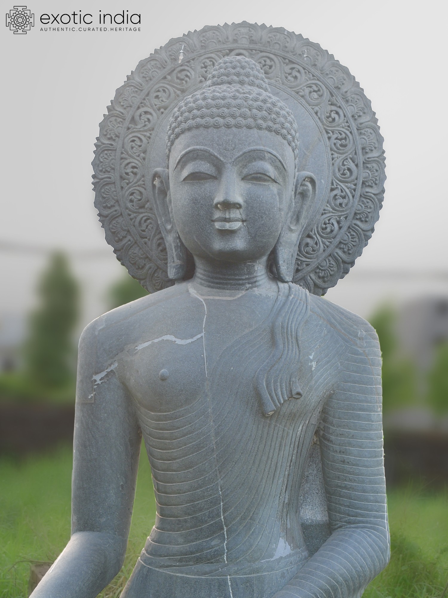6" Vitarka Mudra - Lord Buddha Statue | Hand Carved in Orissa Stone | Excellent indian art