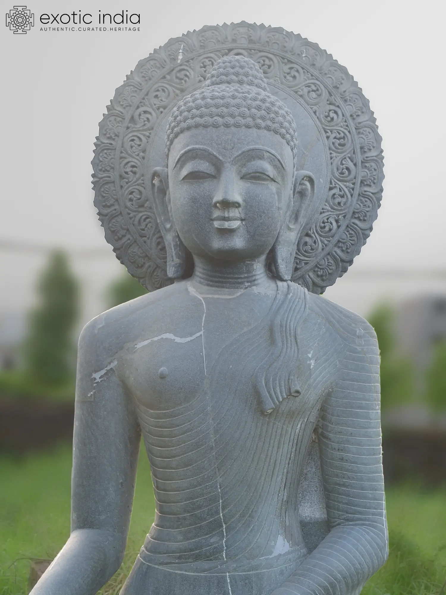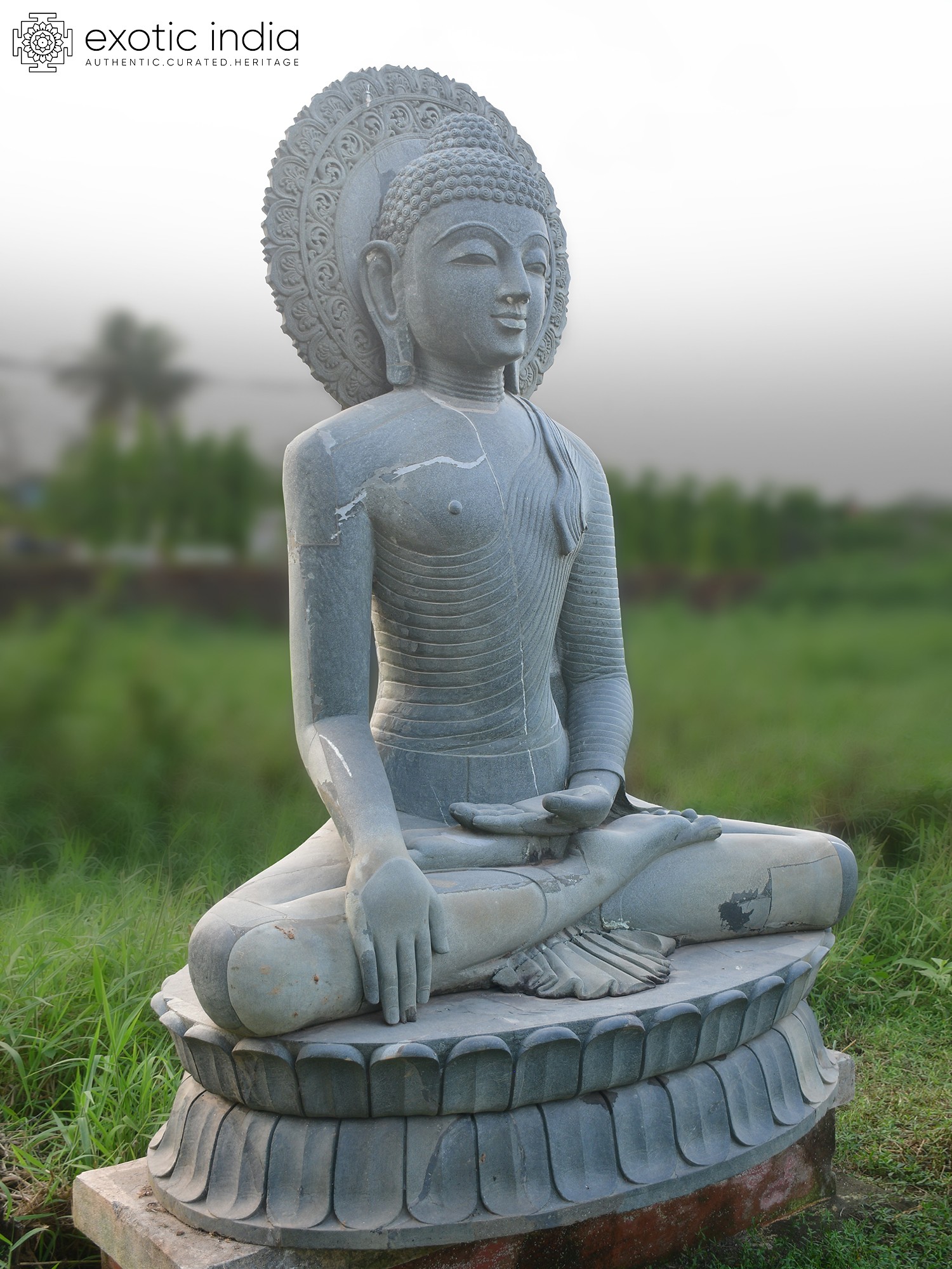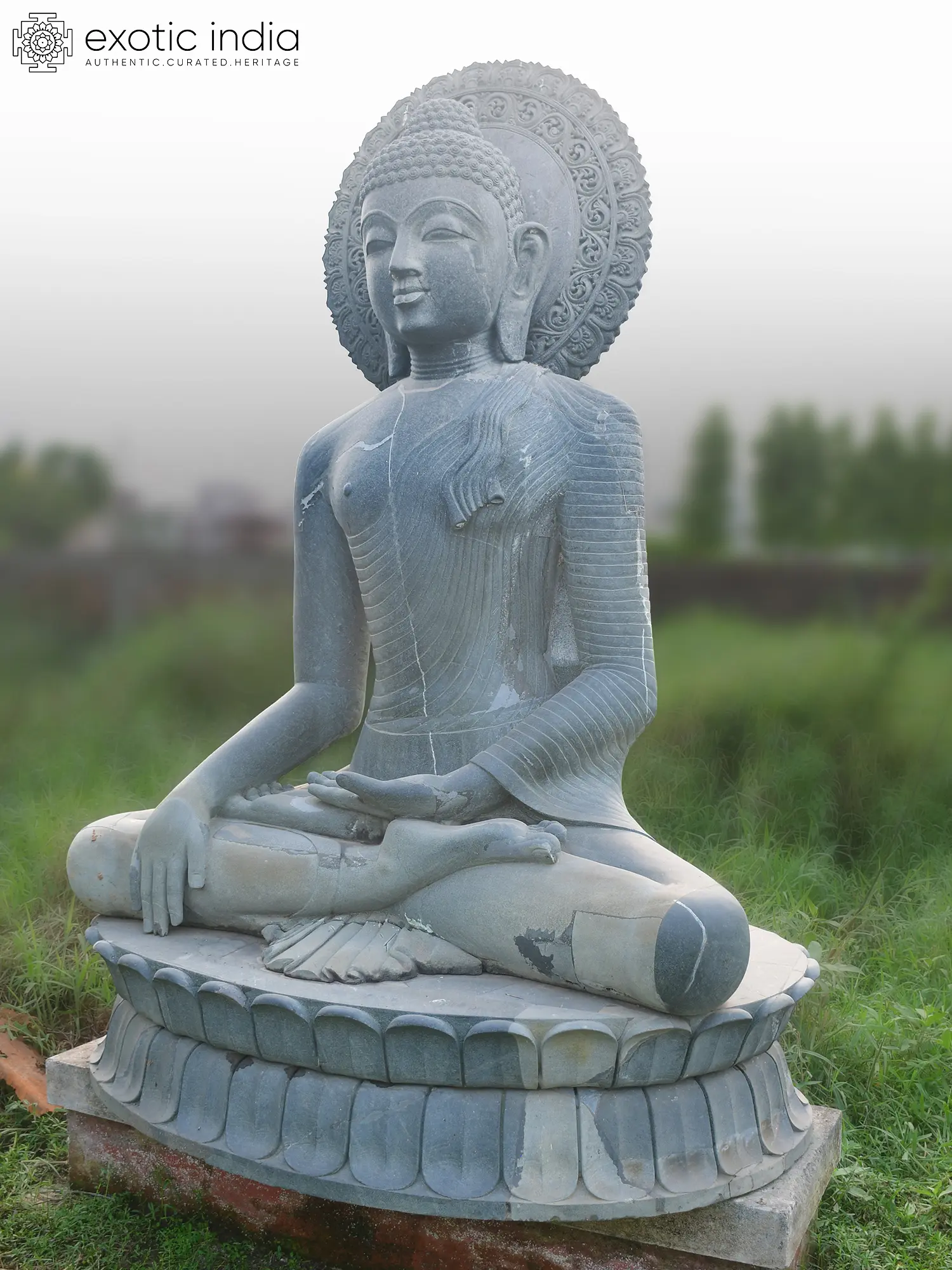39" Lord Buddha Statue With Kamalasana | Sandstone Figurine