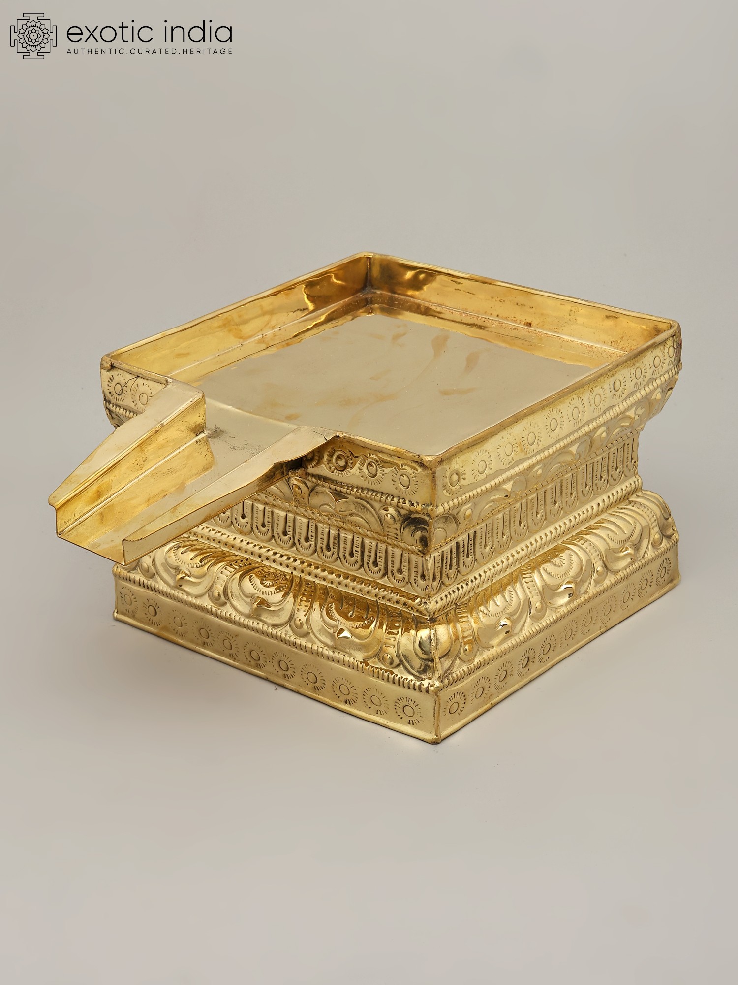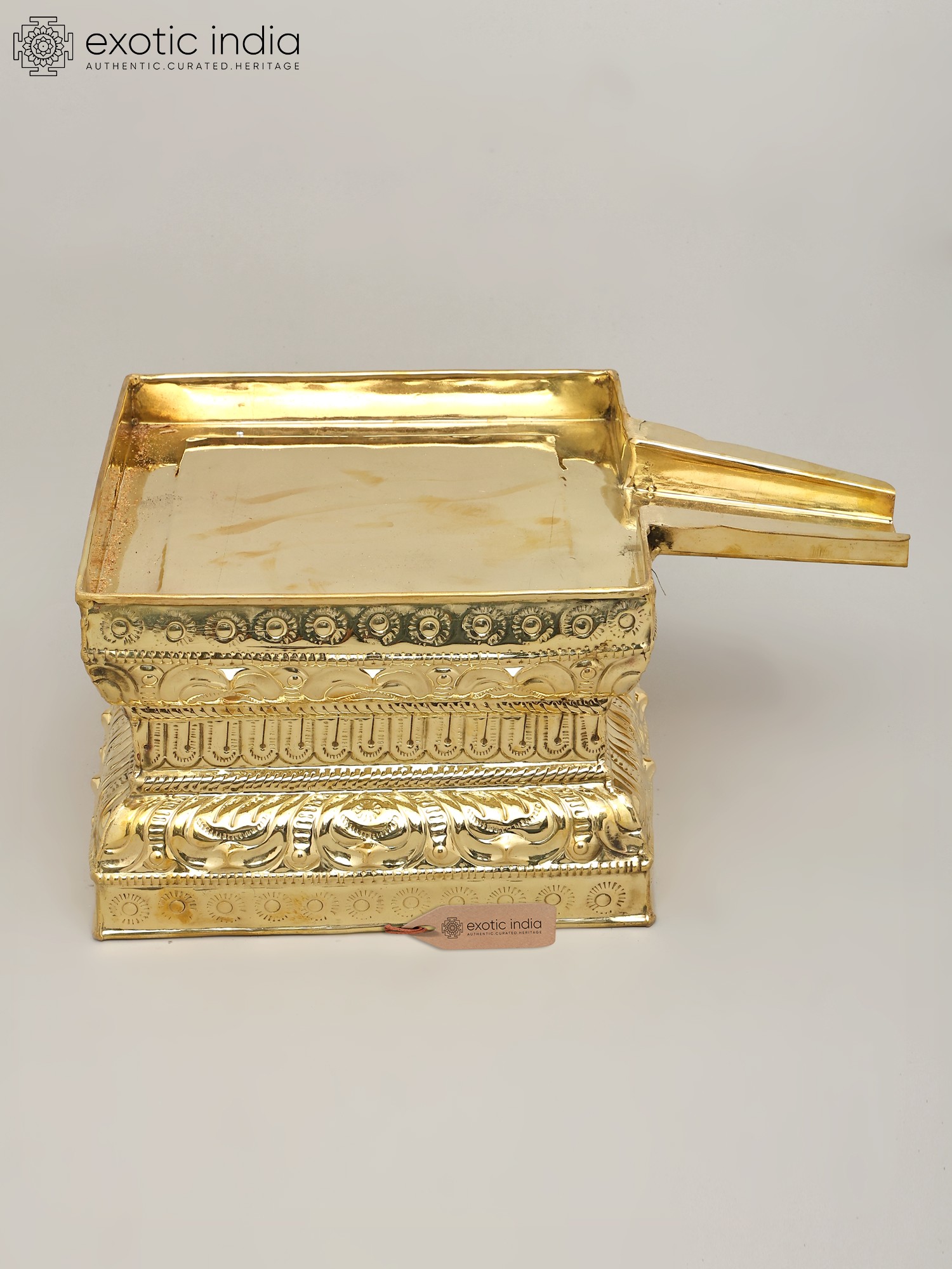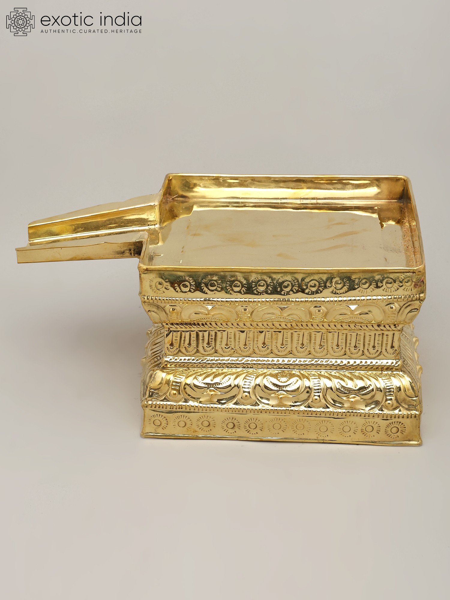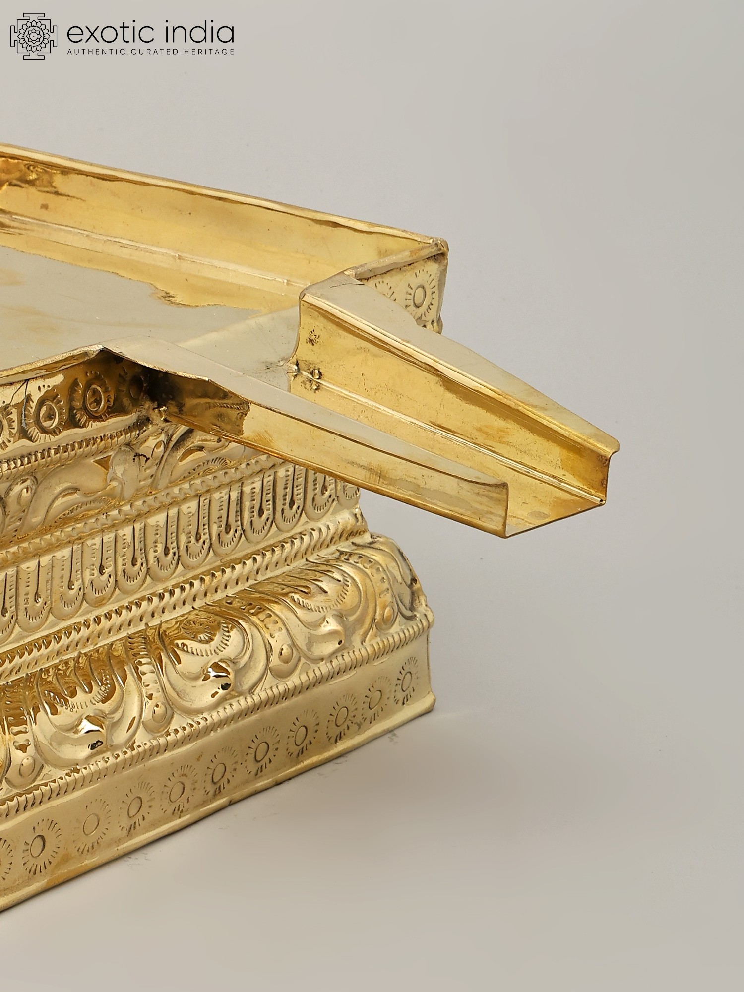 This Abhishek Patra is made of brass from South India, yet shines like molten gold. The tray of the Patra is rectangular in shape which is meant for placing the deities to be bathed.
