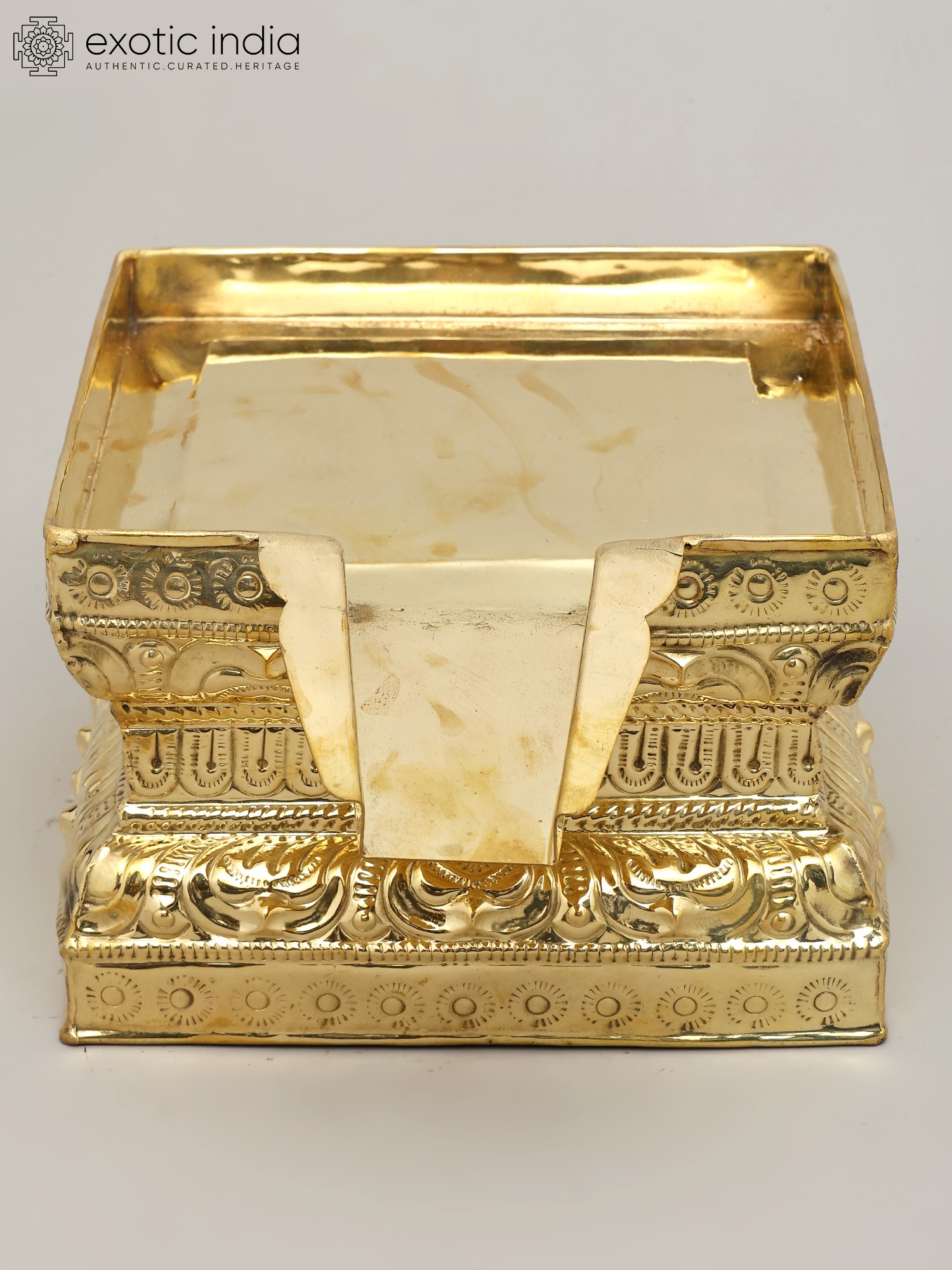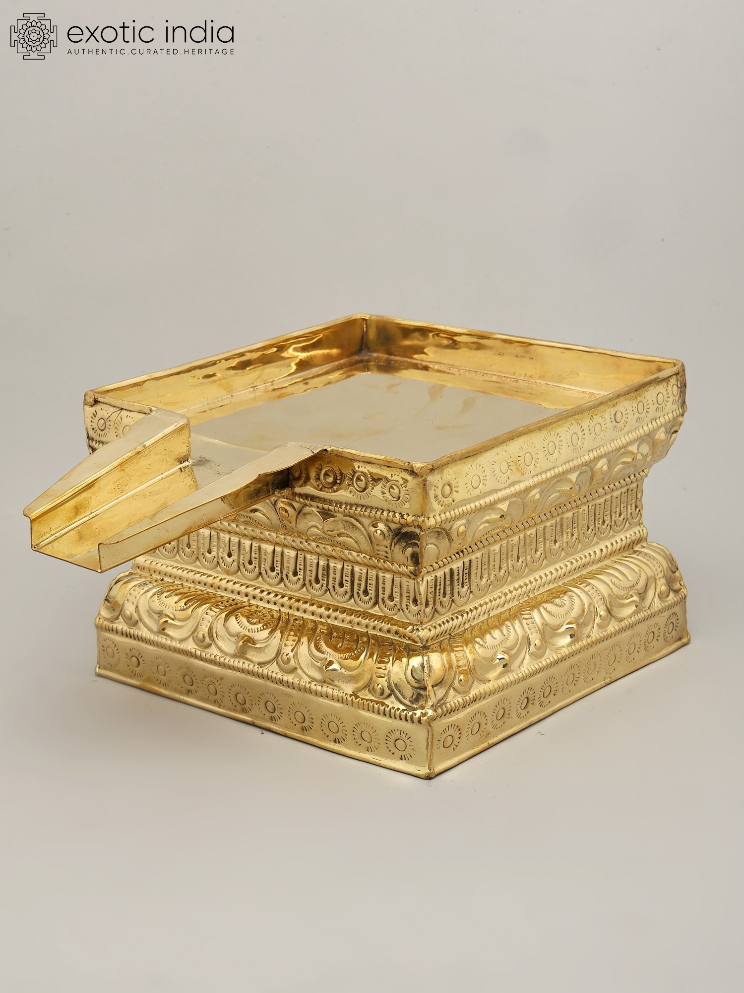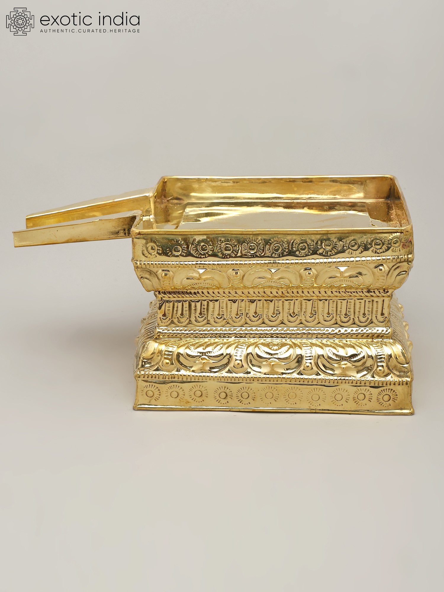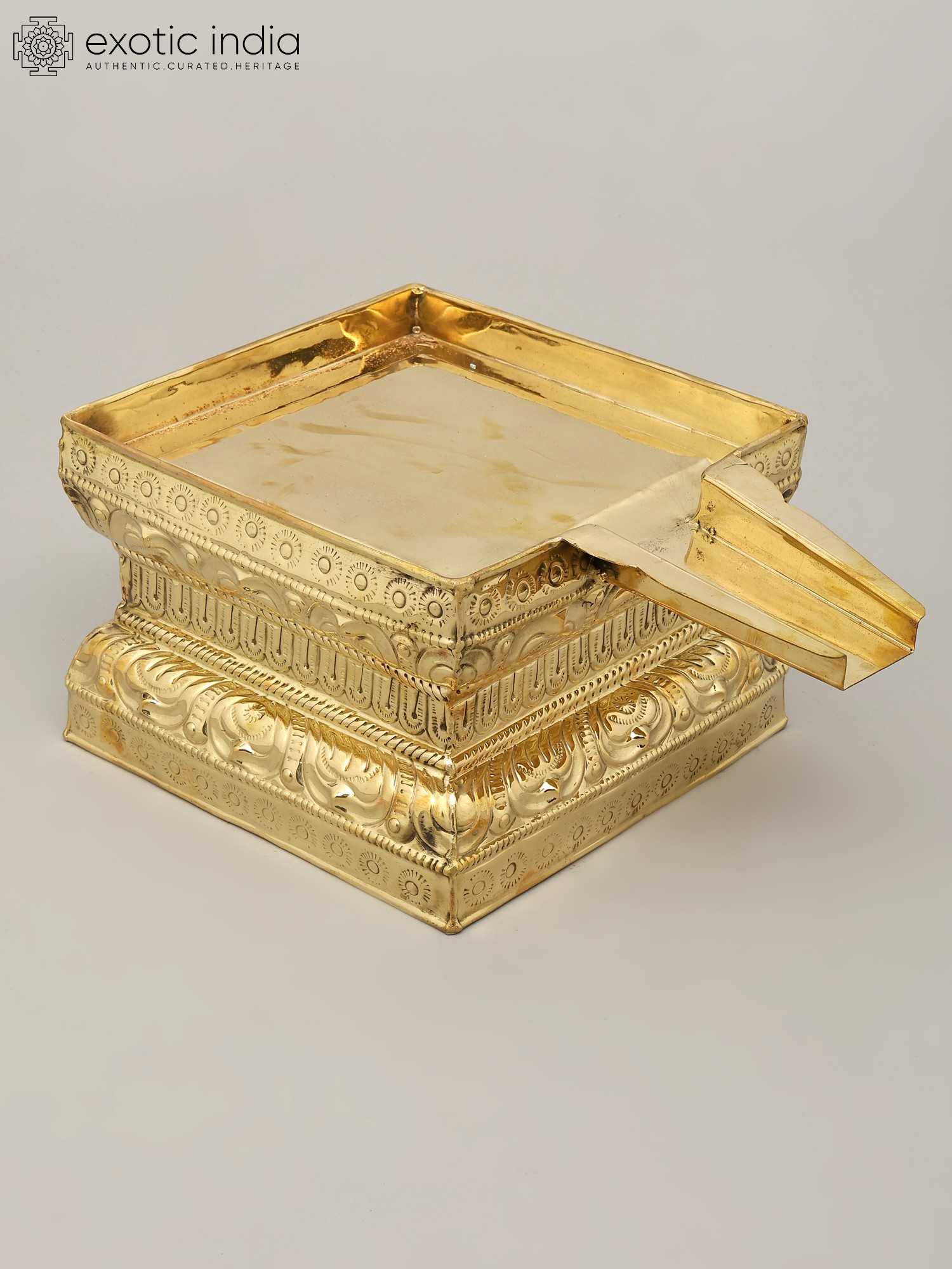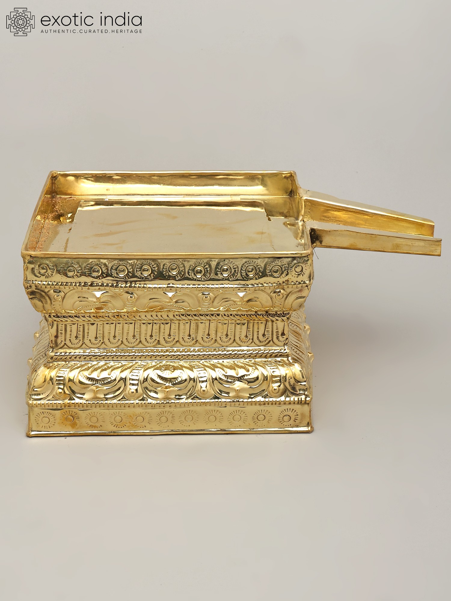 This Abhishek Patra is made of brass from South India, yet shines like molten gold. The tray of the Patra is rectangular in shape which is meant for placing the deities to be bathed.