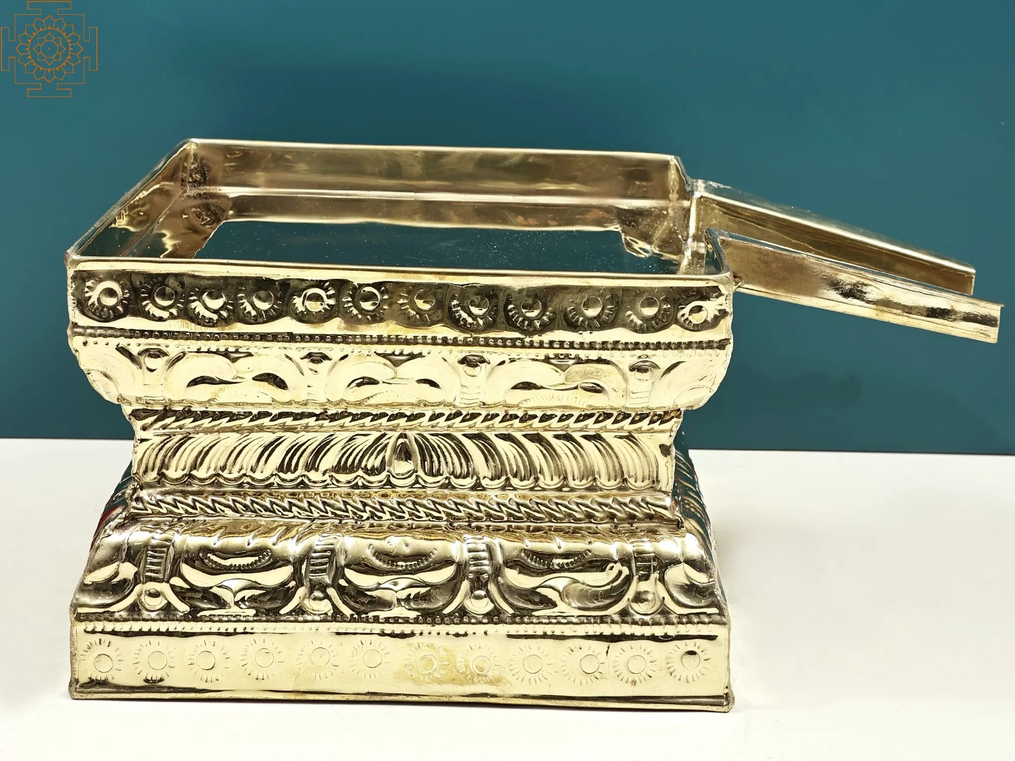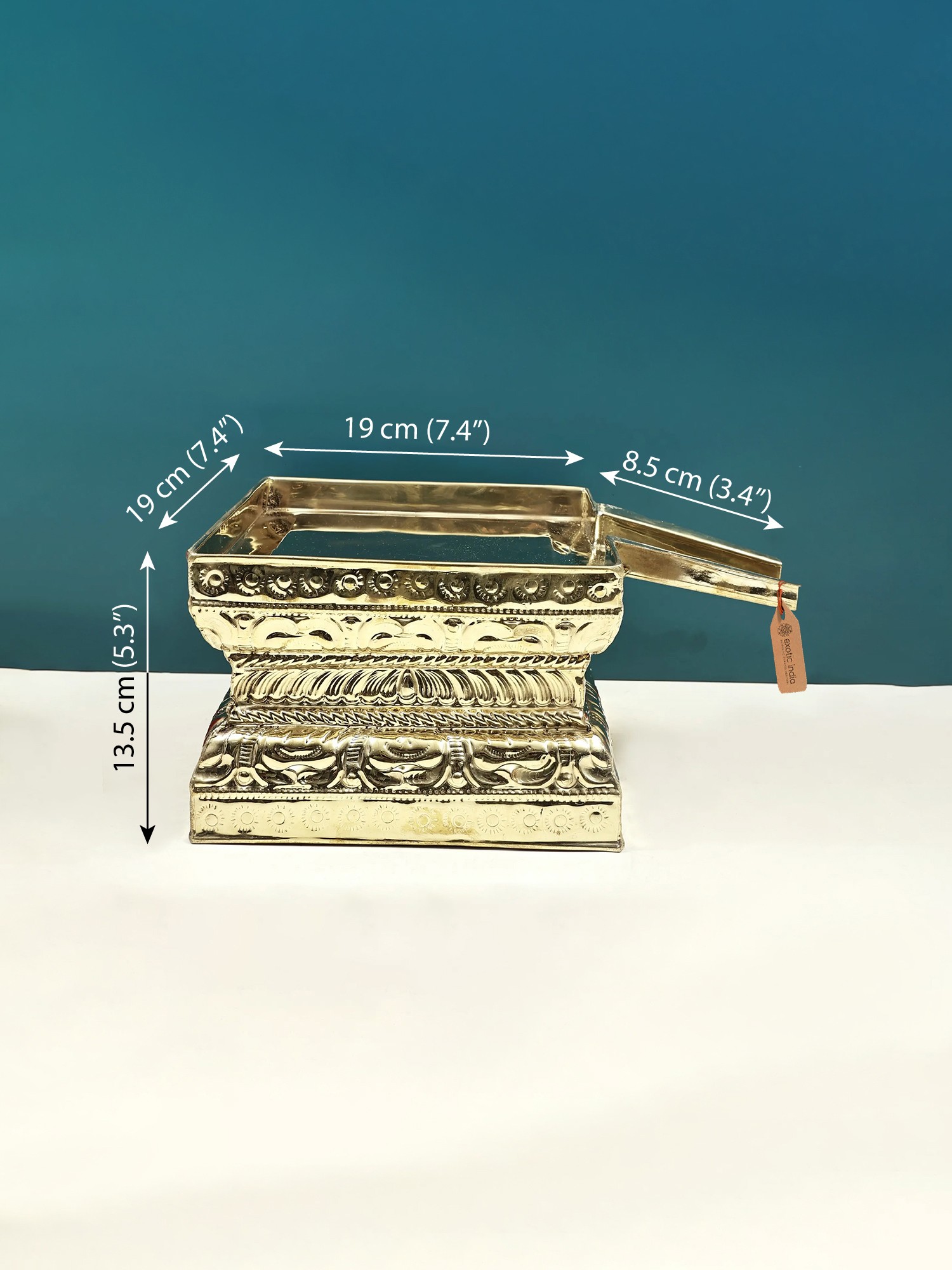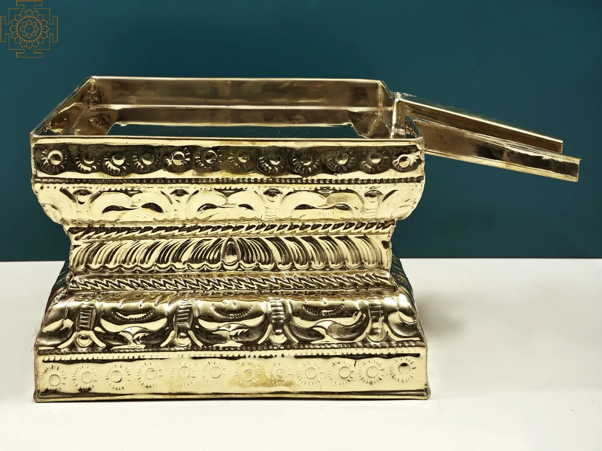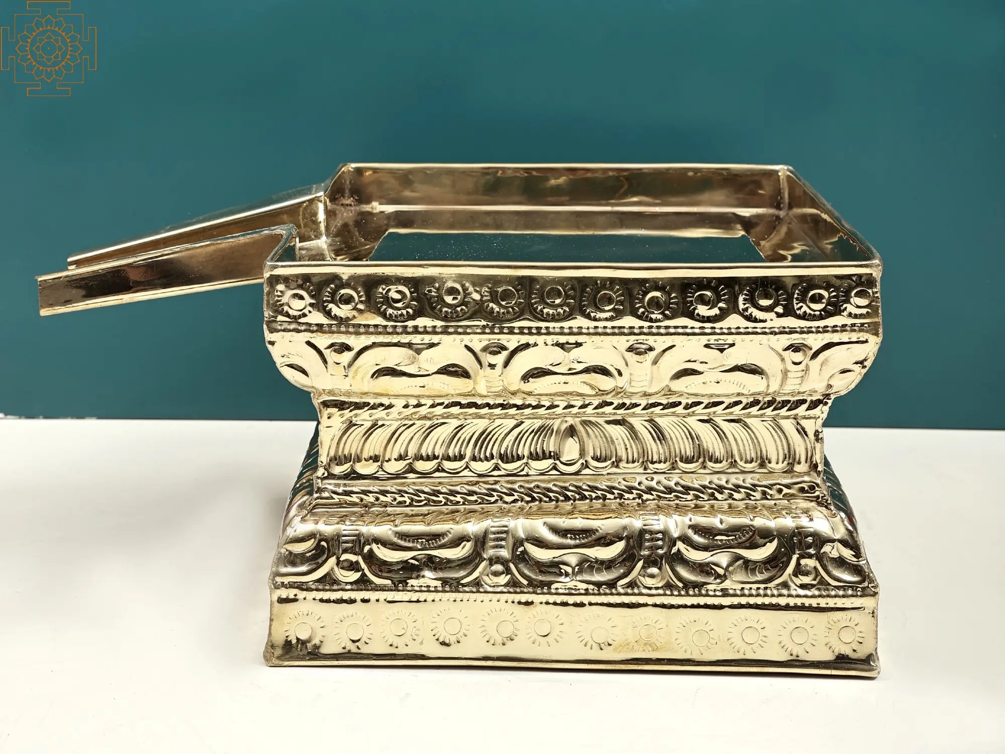 During an elaborate Abhishek ritual, a deity is washed with milk, yogurt, buttermilk, honey, clarified butter, sugar, and different fruit liquids. Following the bathing of the sacred image, it is clothed, ornamented, nourished, and praised with hymns accompanied by bells, drums, and other instruments. This brass Abhisheka Patra is a ceremonial instrument that has spiritual significance and is a vital part of Abhishek's rites. It is a bathing tray that Gods and Goddesses utilize. It has a vast center container in the shape of a beak. Abhishek is a very important religious procedure that cannot be skipped, and thus, this ritual object also holds the same kind of importance.