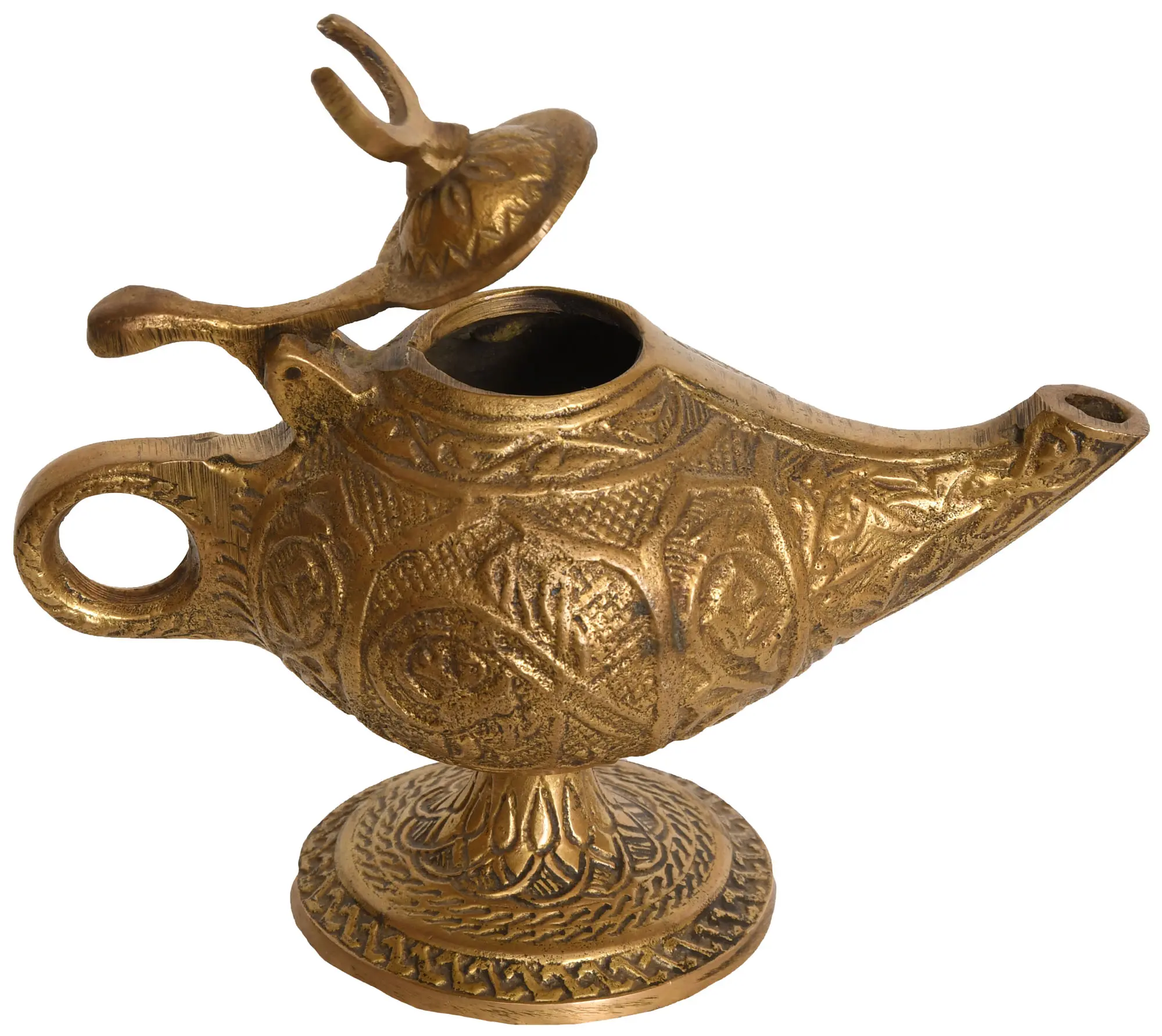 This detailed brass lamp is more than just an object; it is an invitation to dream. It’s a conversation starter, a reminder of the power of narrative, and a beautiful piece of functional art. The handle, the spout, and the small, raised element on the lid are all crafted with care, creating a harmonious and aesthetically pleasing form. Each detail whispers tales of distant lands and bygone eras, making it a truly unique addition to your collection. Let it serve as a daily reminder that even in the mundane, there is room for enchantment and the possibility of the miraculous.