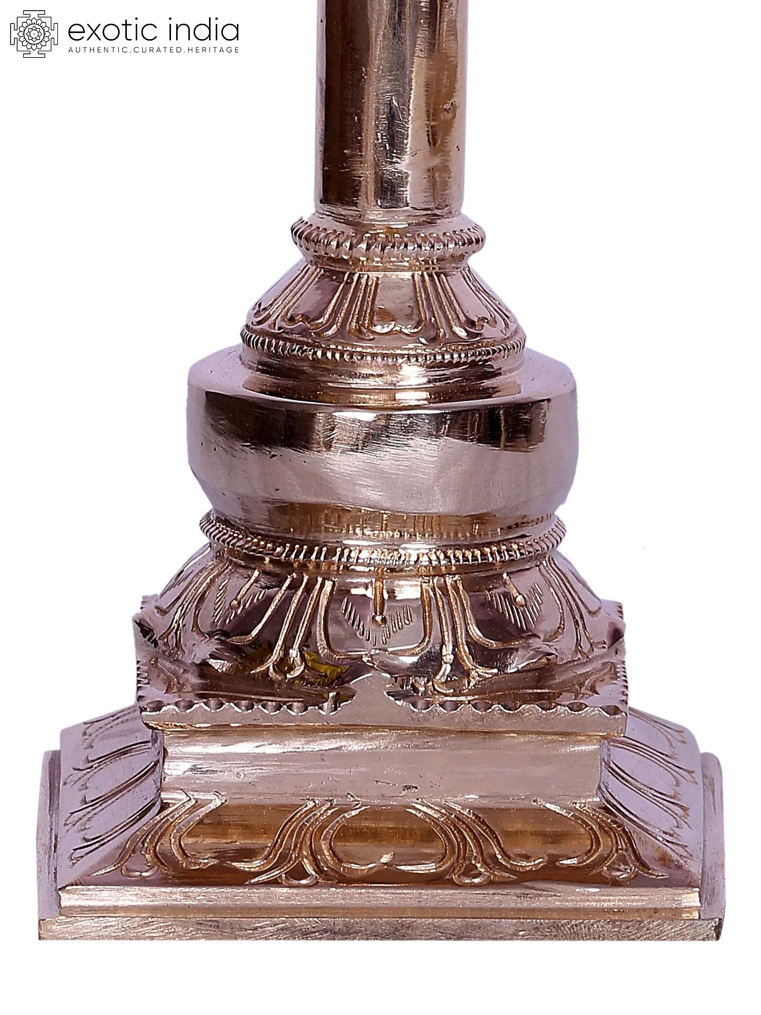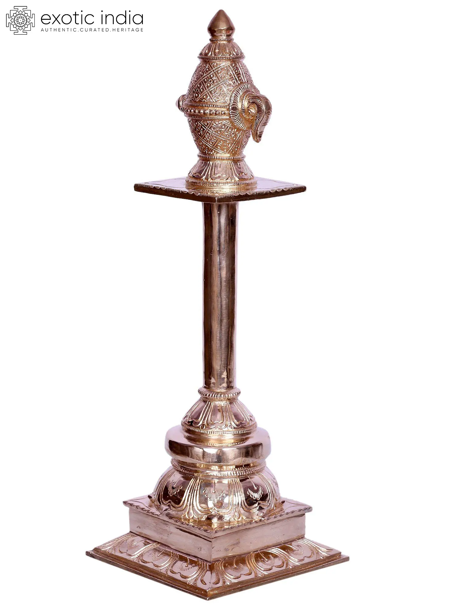 This Ankush, also known as an elephant goad, is a ceremonial artifact that is usually put beside a Ganesha statue. It is composed of solid bronze and has ceremonial significance. The Mahauts employ elephant goads to tame elephants while they are out on a stroll. Lord Ganesha, the guardian deity, also carries the Ankush and is said to restrain harmful ideas while guiding his followers to wisdom. This goad is very well-defined, with excellent carvings on the goad itself, which is further supported by a stand. This bronze ceremonial object represents Lord Ganesha's benediction and aids worshippers in keeping a watch on their lives.