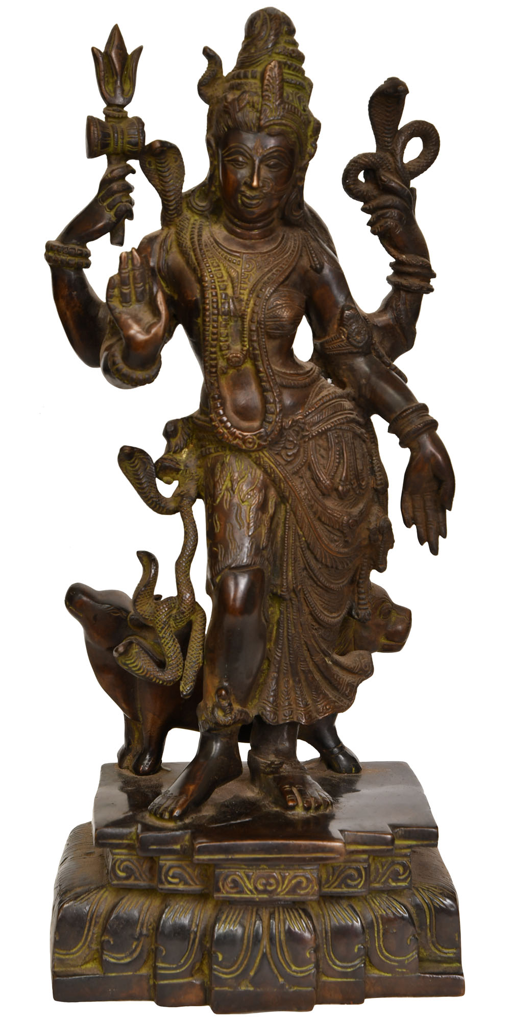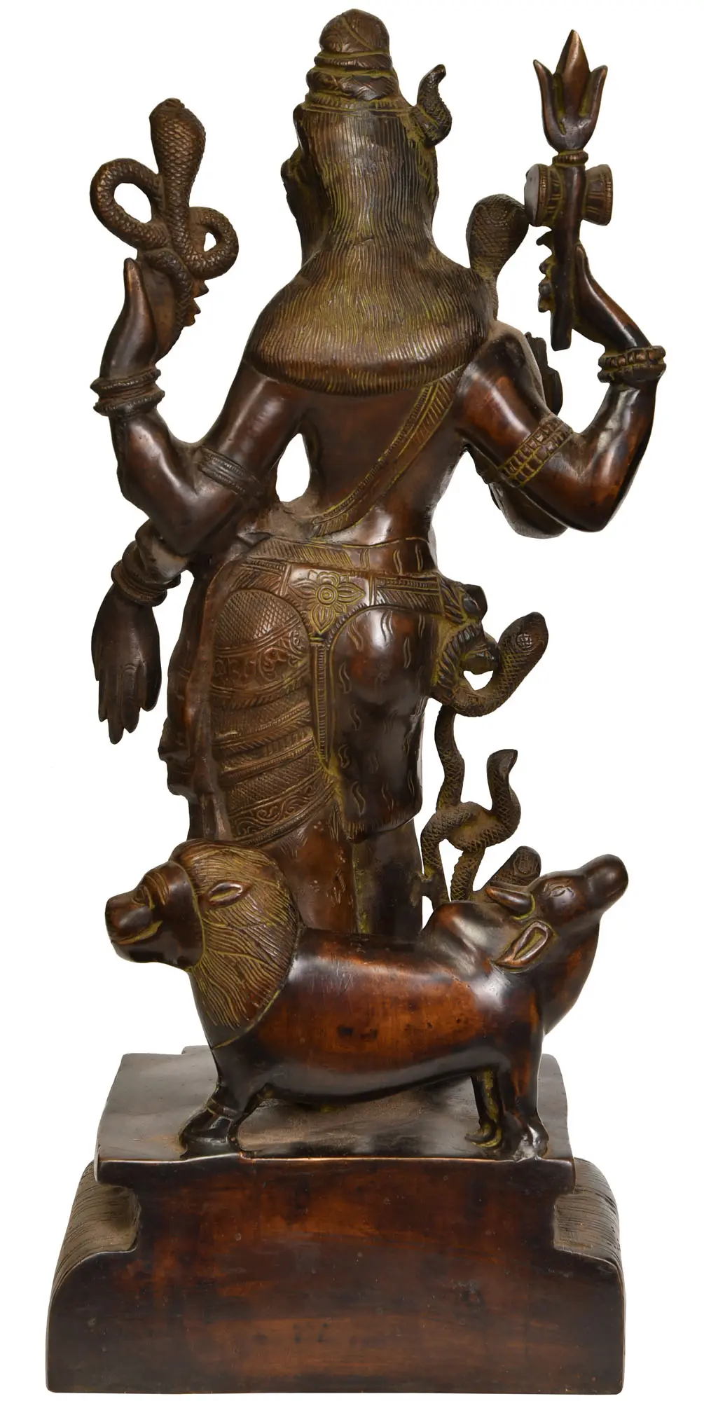 Crafted from high-quality brass, this statue is a masterpiece of traditional Indian artistry. The intricate detailing showcases the sculptor's dedication to capturing the essence of this profound divine form. From the serene yet powerful expression to the subtle adornments that signify both Shiva's asceticism and Parvati's regality, every element is rendered with remarkable precision. The patina and texture of the brass lend an antique charm, suggesting a lineage of devotion that spans centuries. The craftsmanship allows the divine energy of Ardhanarishvara to emanate, making it a captivating centerpiece for any sacred space or a treasured addition to a discerning collector's ensemble.