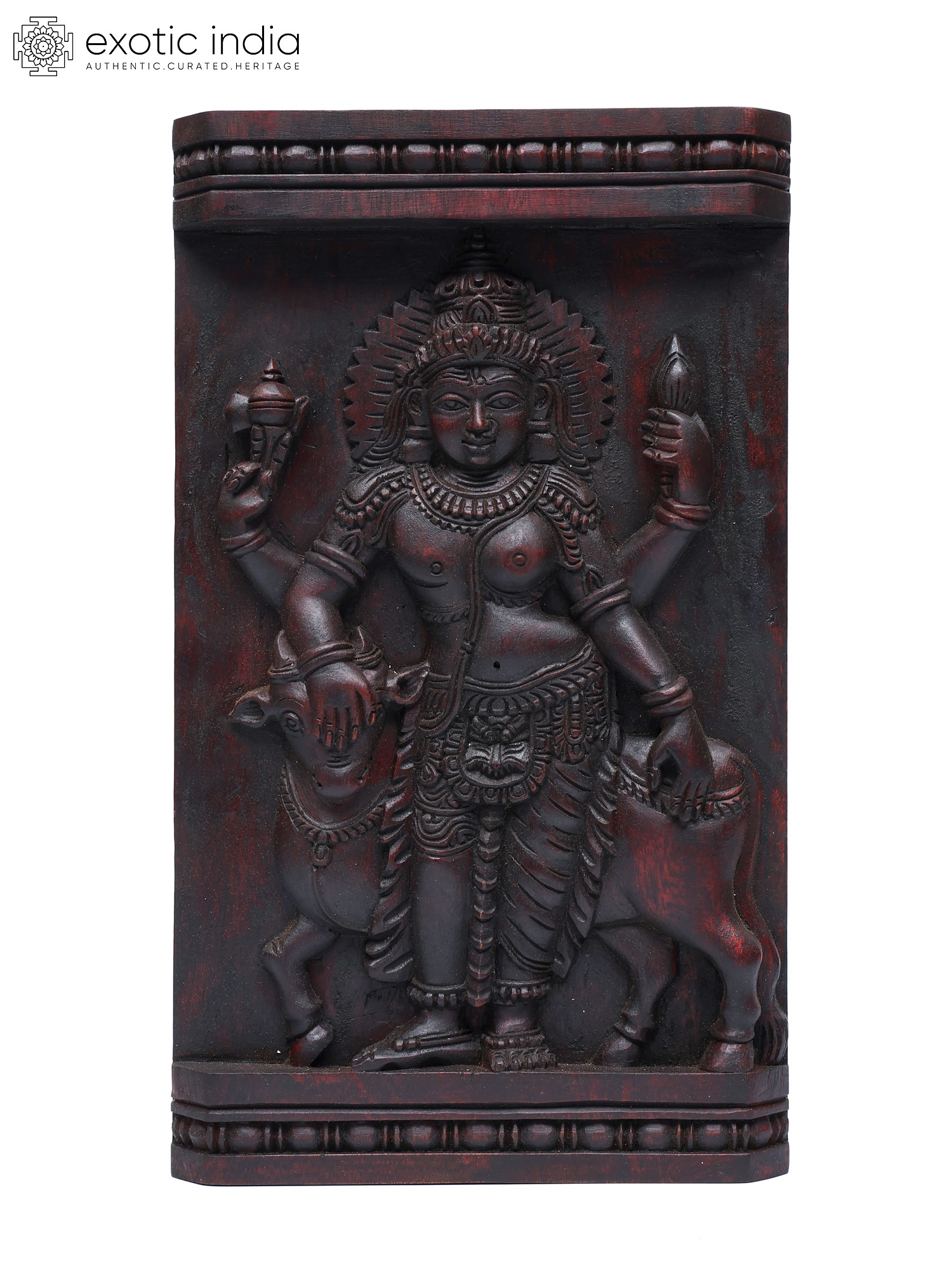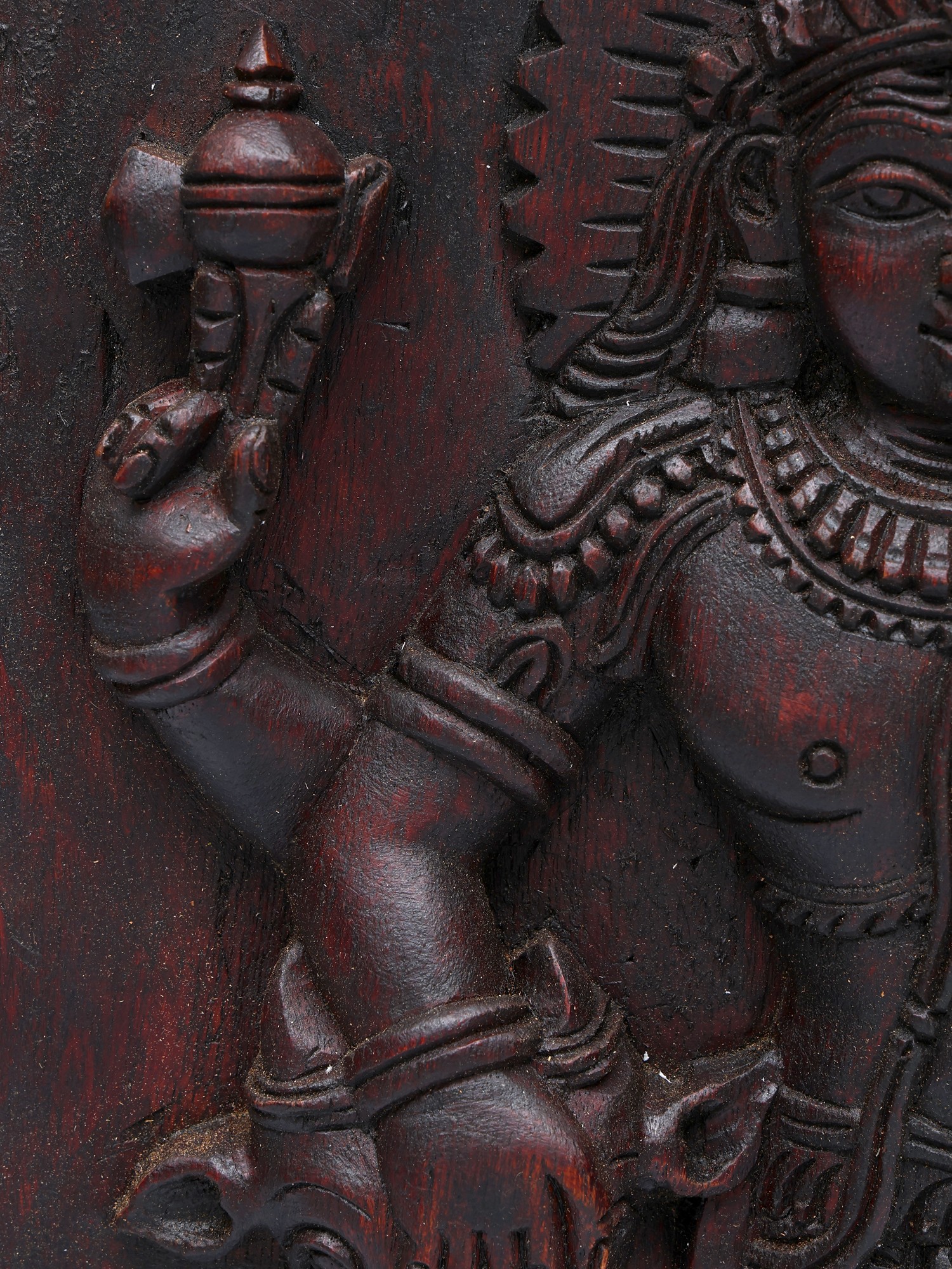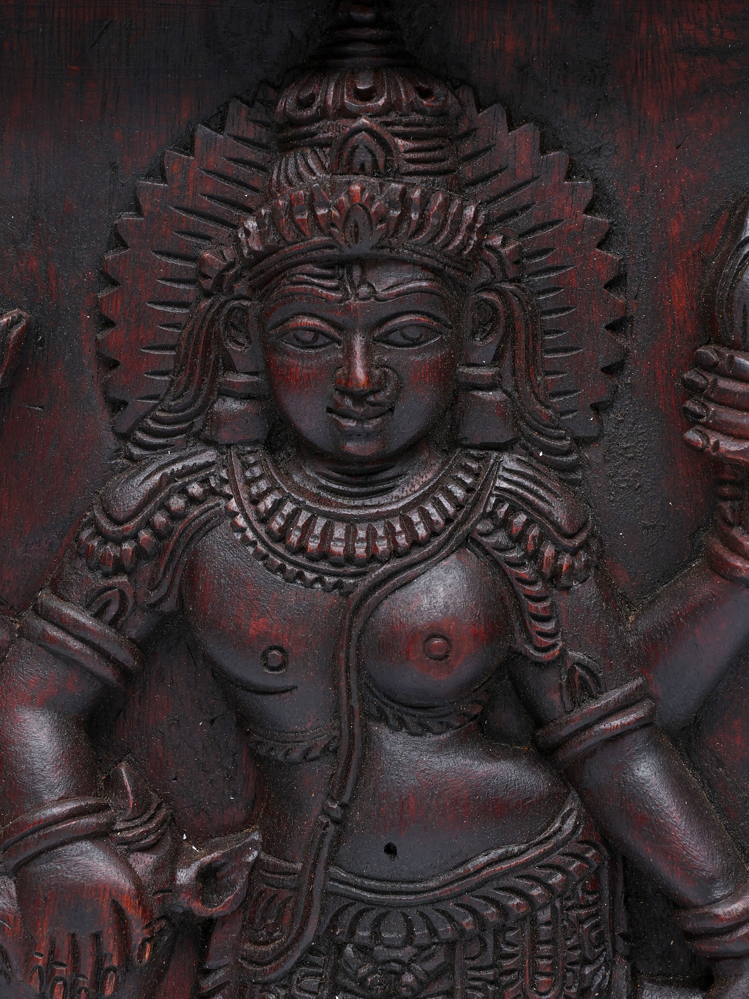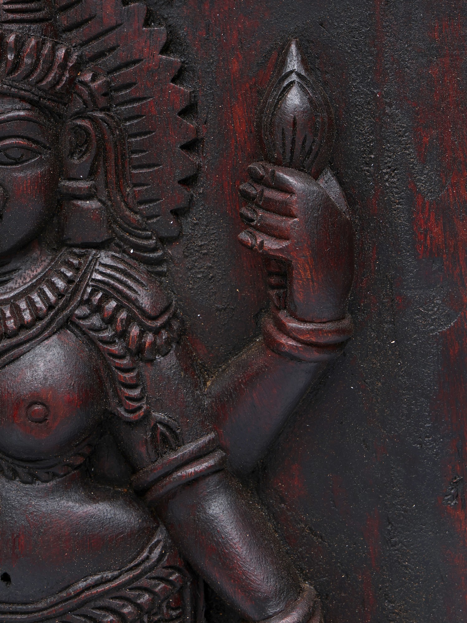 72" Large Dancing Goddess Saraswati with Vegetative Arched-Shaped Aureole | Wood Carved Statue