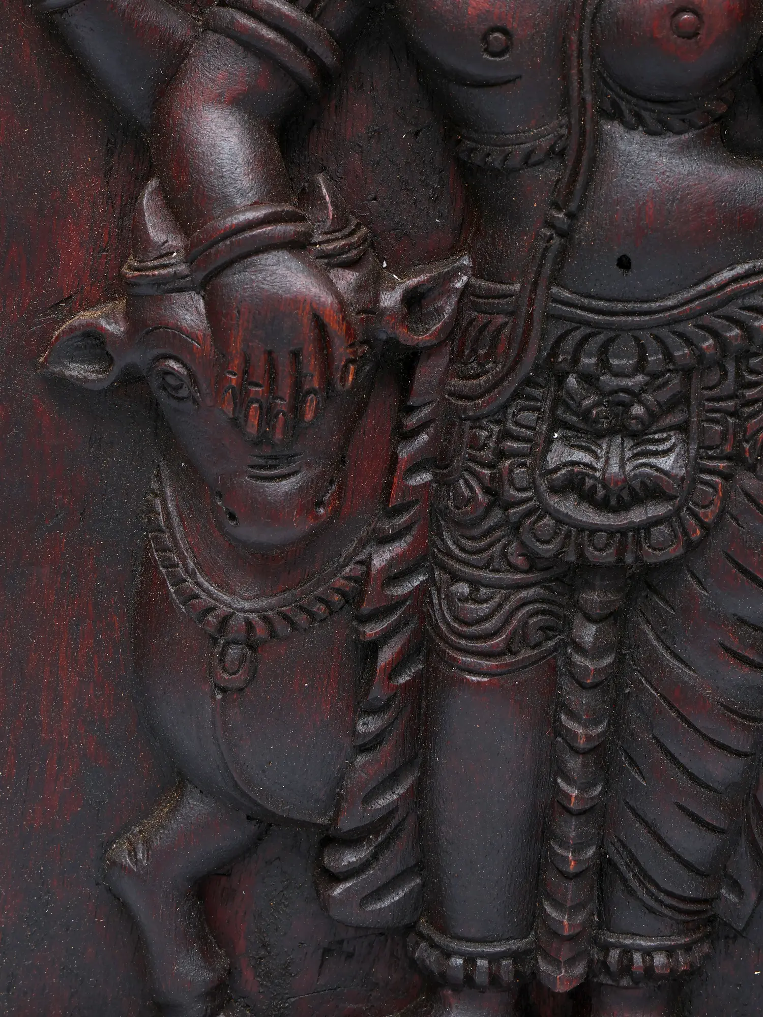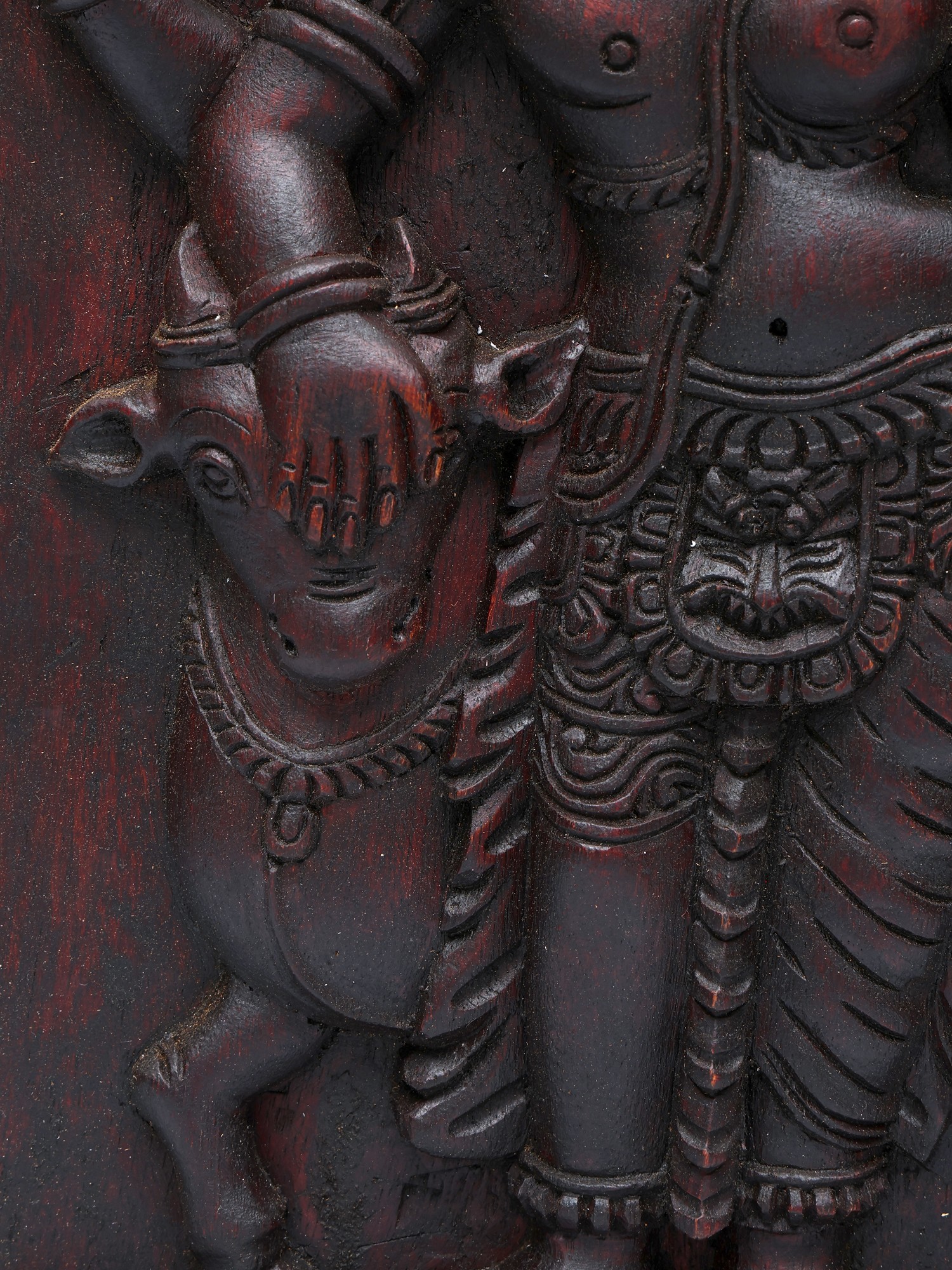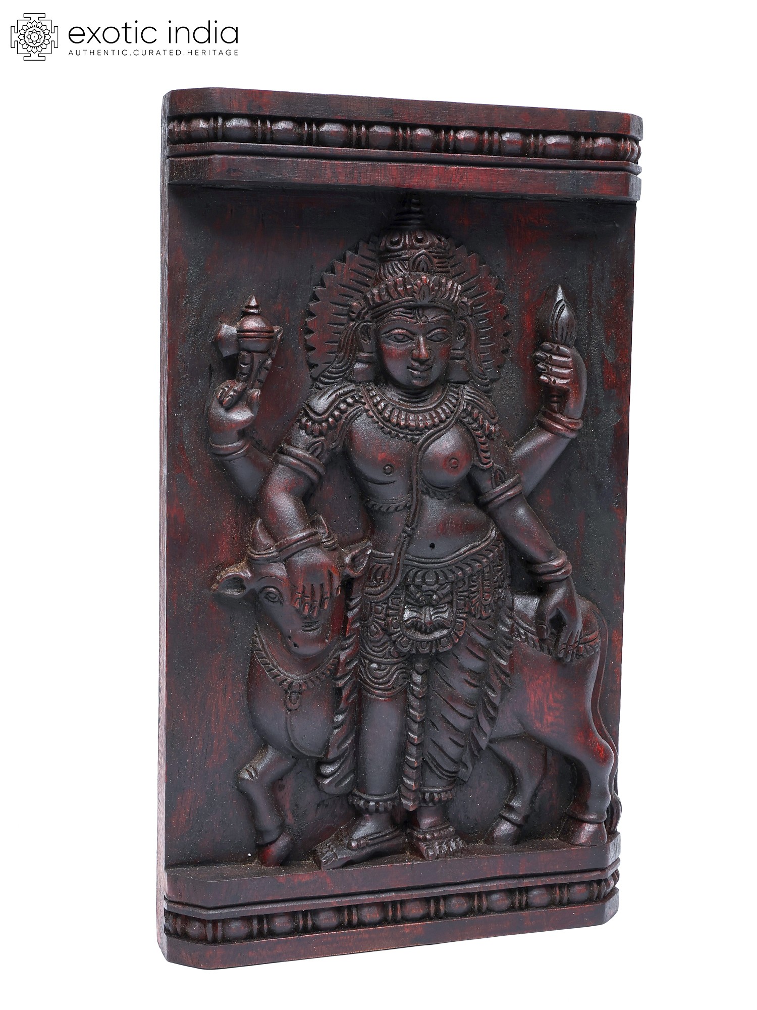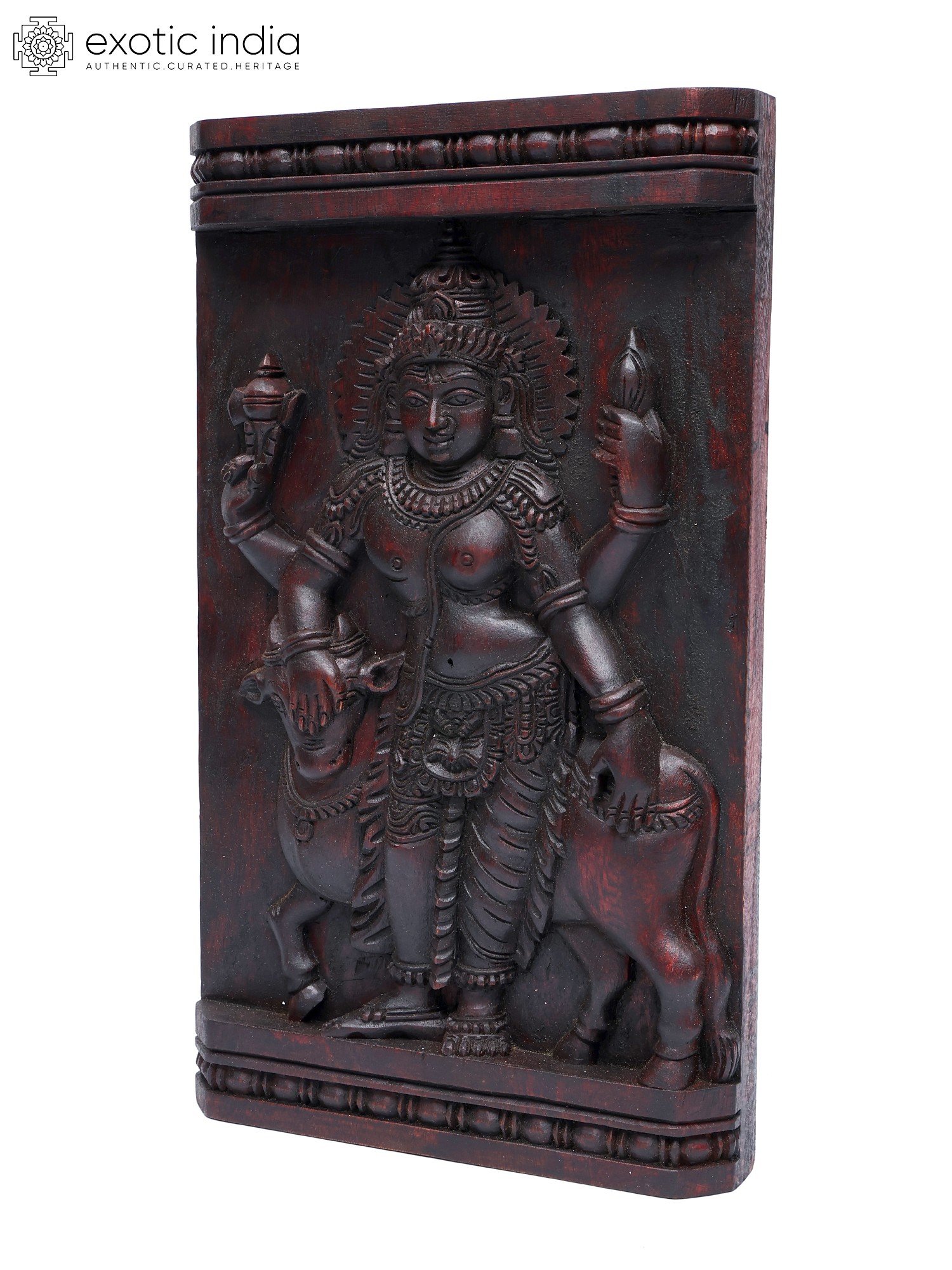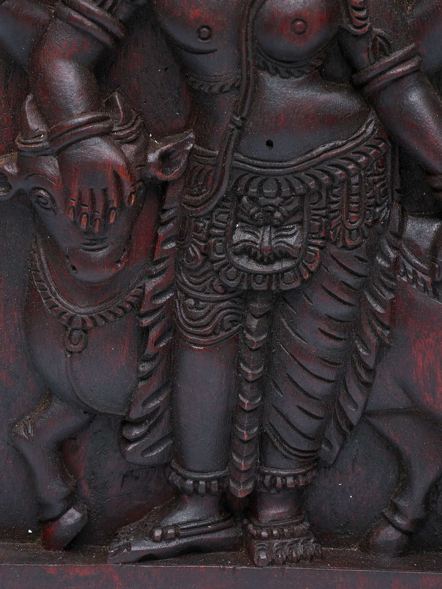 72" Large Dancing Goddess Saraswati with Vegetative Arched-Shaped Aureole | Wood Carved Statue