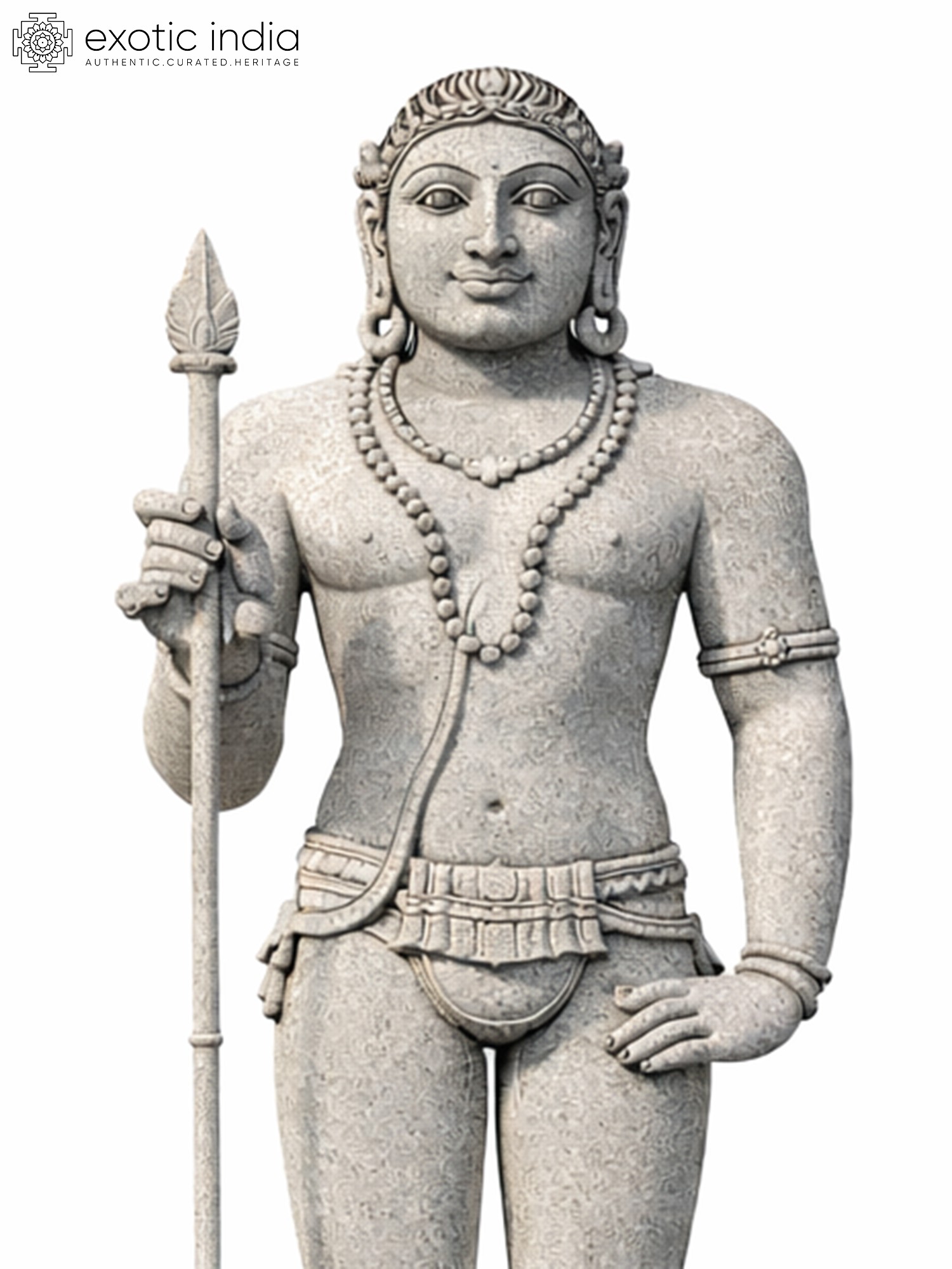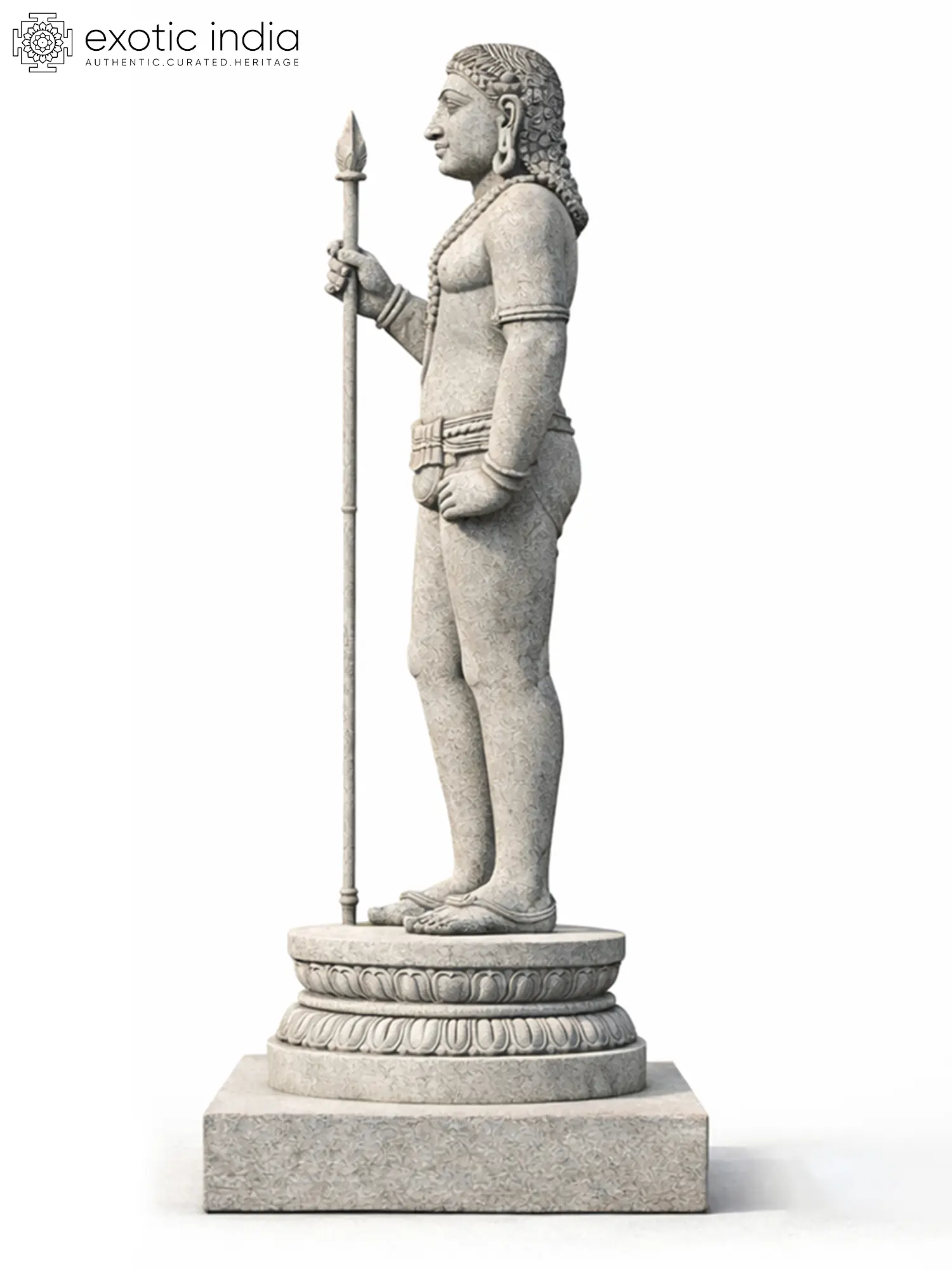40" Lord Kartikeya (Murugan) in Blessing Gesture | Hand Carved Granite Stone Statue