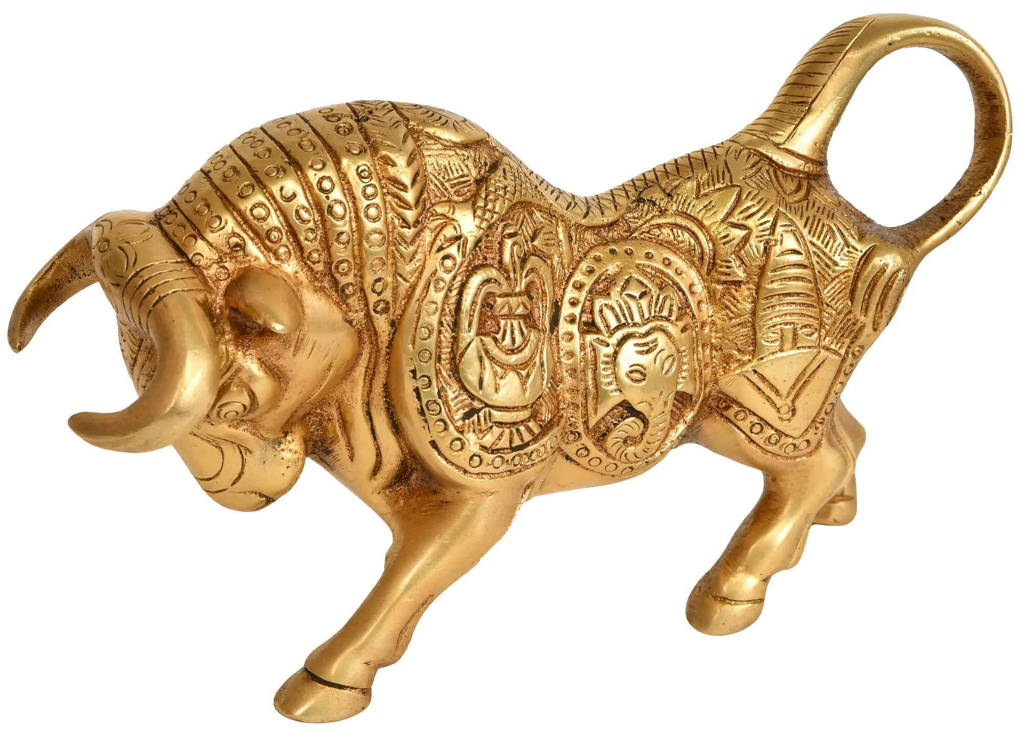 Whether placed in your living room, study, or a dedicated prayer corner, this brass bull with Ganesha and Buddha carvings serves as a powerful reminder of the forces that shape our lives. It is an ideal gift for loved ones, symbolizing wishes for strength, prosperity, wisdom, and inner peace. Embrace the auspicious energy and divine blessings embodied by this exceptional sculpture, bringing a touch of timeless tradition and spiritual depth into your surroundings.