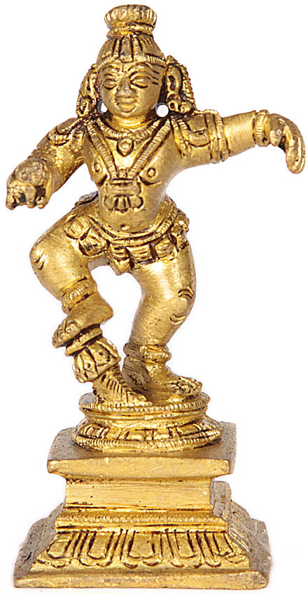 Capture the essence of divine joy and boundless energy with this meticulously crafted brass sculpture. This depiction embodies Krishna in his cherished Bala Krishna form, a celebration of his playful childhood in Vrindavan. The statue captures a moment of pure, unadulterated bliss as he dances with joyous abandon. This is a reminder that even divinity can be found in the simple pleasures of life. The craftsmanship is evident in the detail poured into every aspect of the sculpture. From the intricate ornamentation adorning his youthful form to the poised gesture, this is a true work of art. The gleaming brass material accentuates the vibrant energy that is so closely associated with Krishna, the epitome of love and devotion.