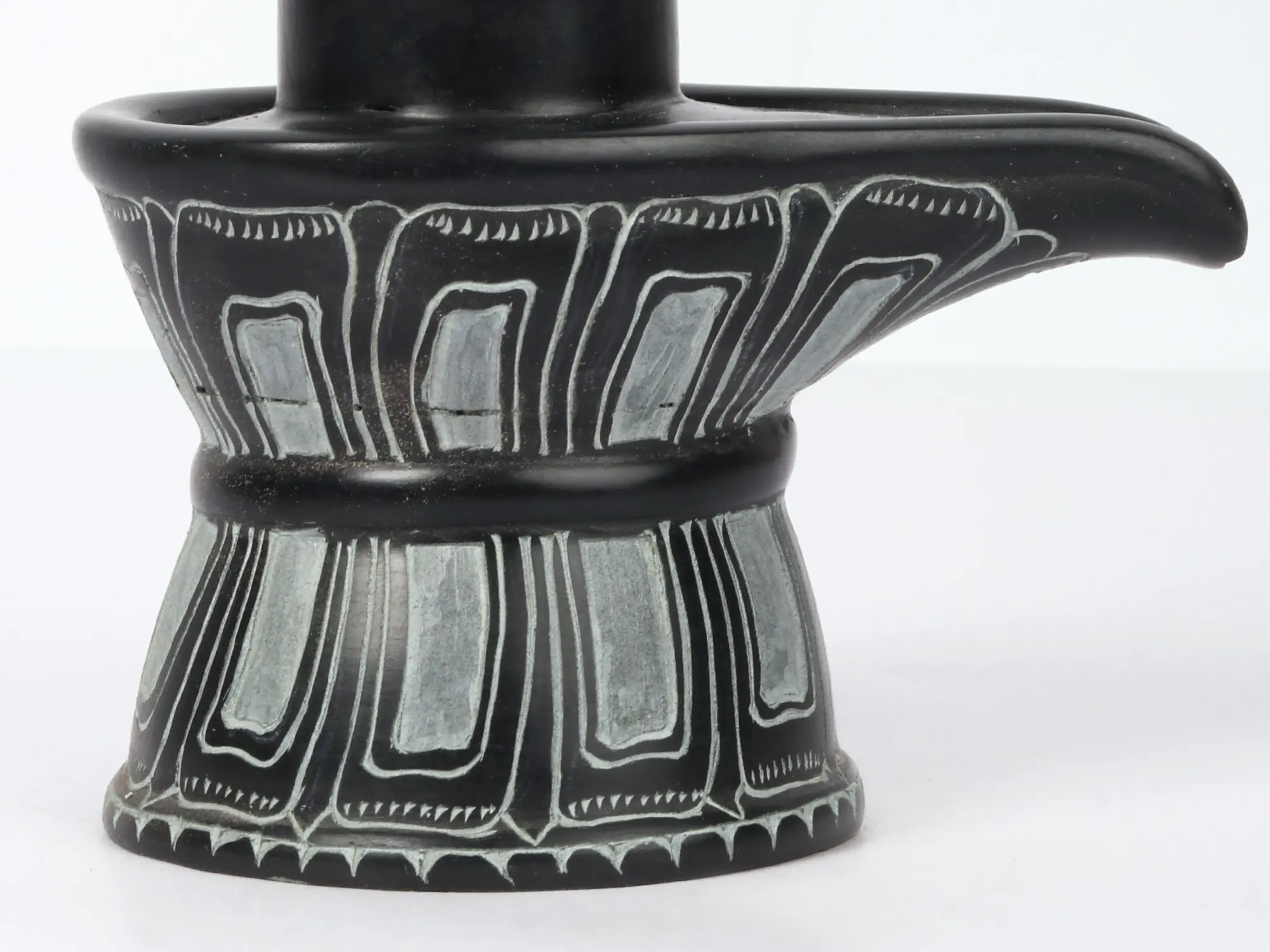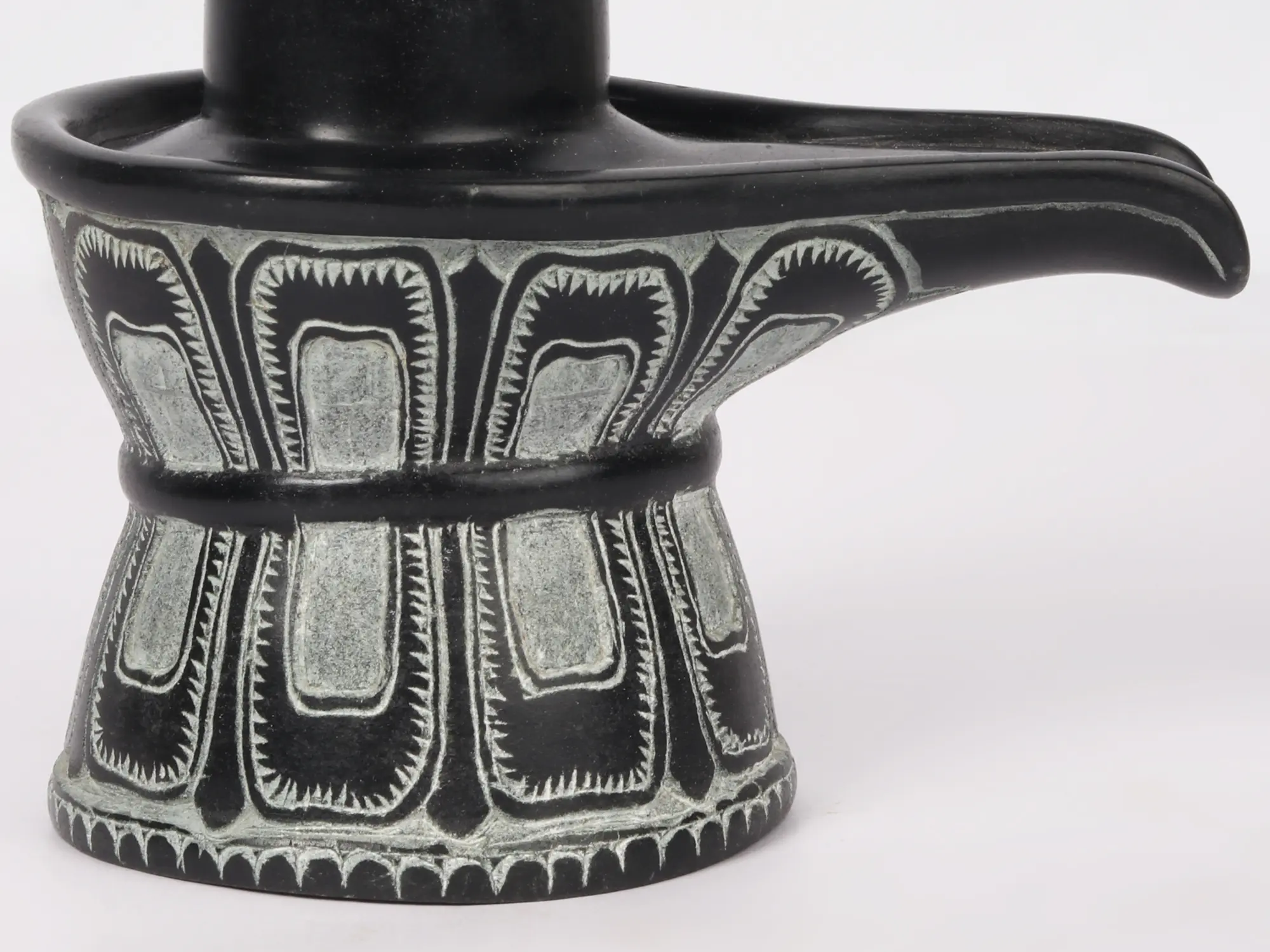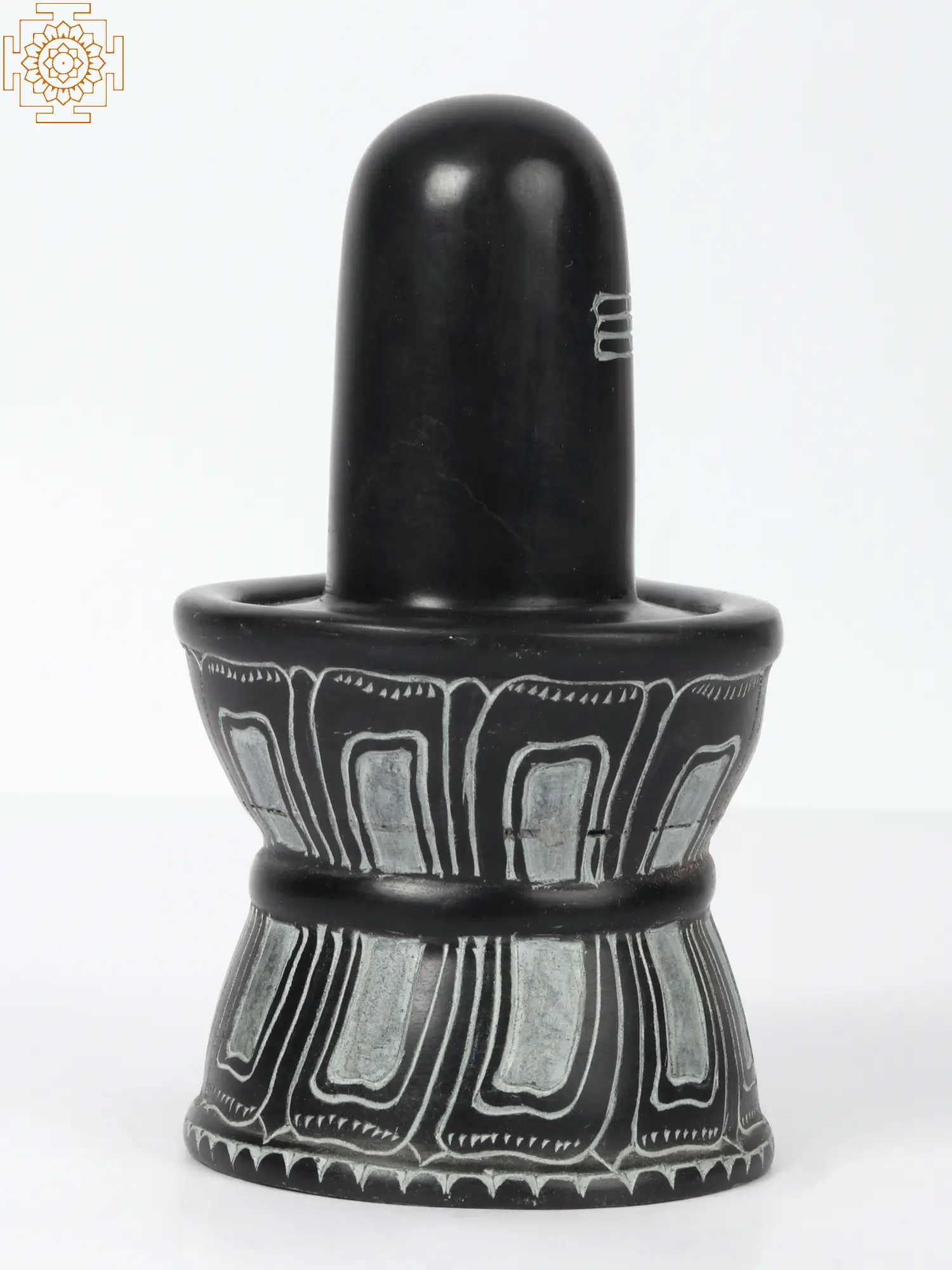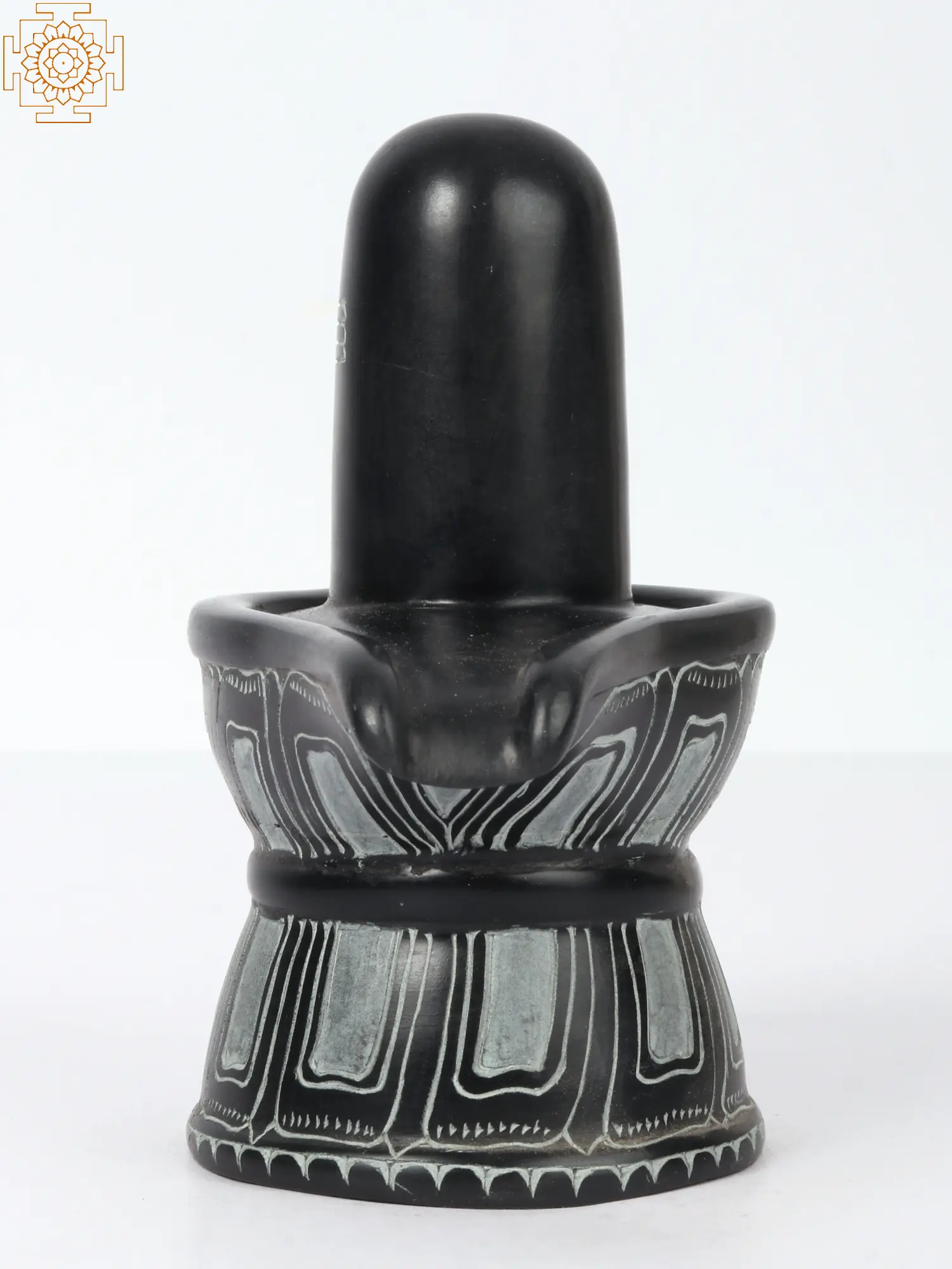 From the darkness emerges creation. This handmade black Shiva Linga embodies the cosmic energy of the universe's origin. The Linga, a representation of Lord Shiva, signifies formless divinity. The black hue signifies the primal void, from which all life emerges. The base, representing the Yoni, symbolizes feminine energy. As devotees meditate upon the Linga, they align with the eternal cycles of creation and dissolution. This sculpture invites contemplation of the cosmic dance, resonating with the heartbeat of the universe.