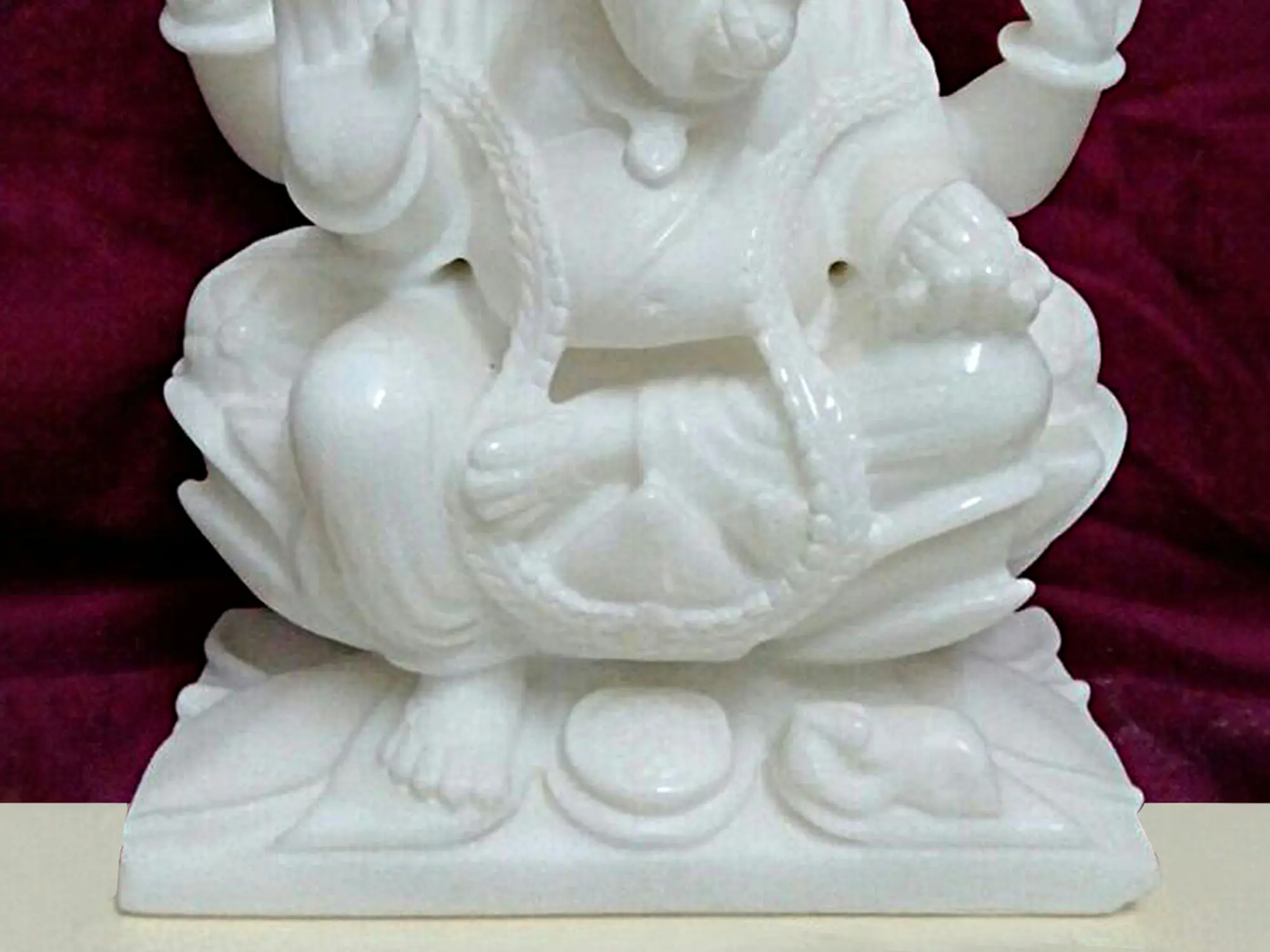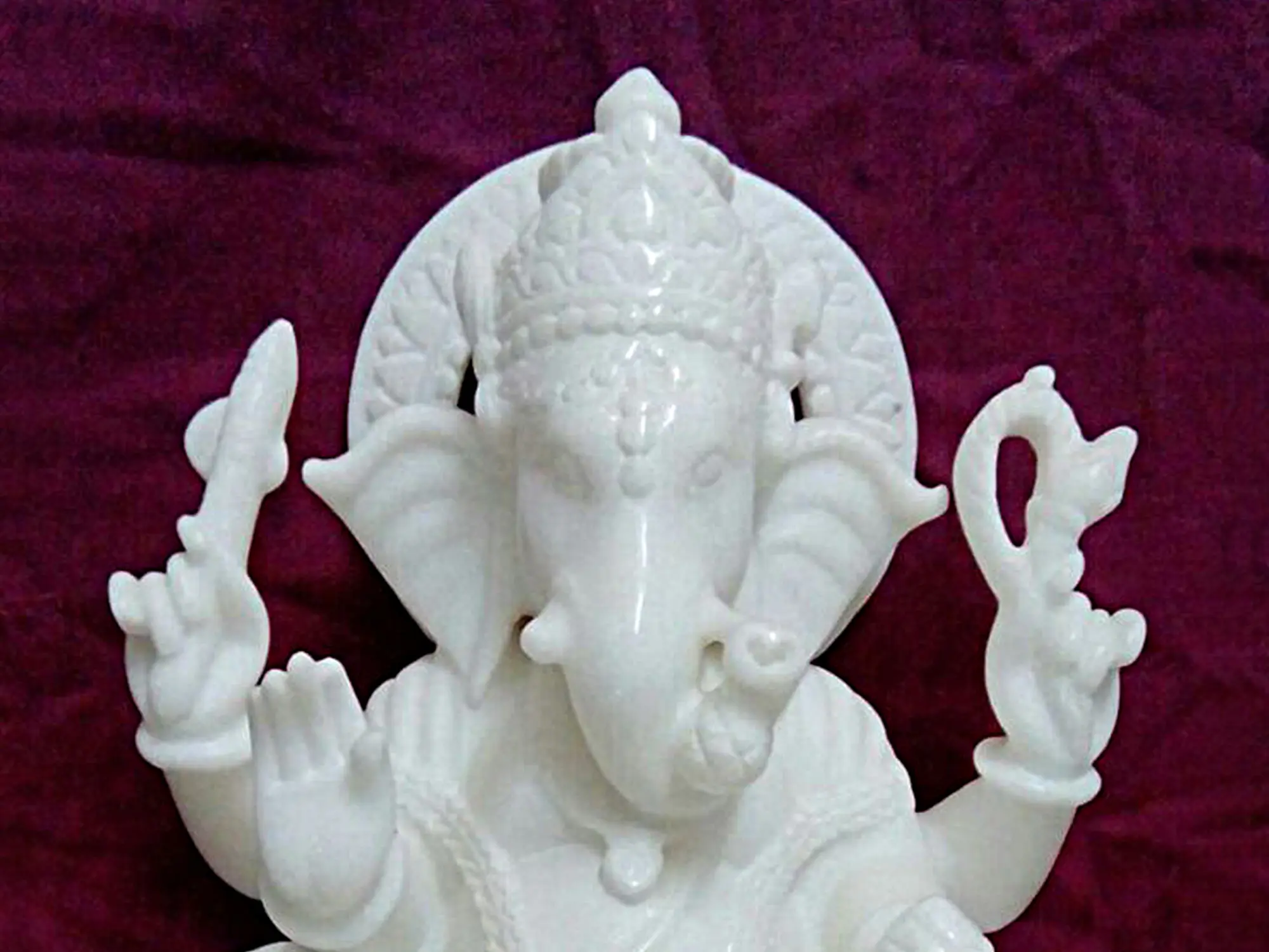 Beautifully carved from Vietnamese marble, known for its elegance and timeless allure, this sculpture embodies the essence of Lord Ganesha with intricate craftsmanship. Every contour, curve, and detail reflect the devotion and skill of the artisans who have captured the divine presence of Lord Ganesha within the natural grains and textures of the marble. In this sacred sculpture, Lord Ganesha radiates an aura of wisdom, prosperity, and protection - His elephant head, with its gentle expression and intricate features, evokes a sense of awe and reverence. The distinctive characteristics of Vietnamese marble, such as its veining and color variations, add a unique charm and depth to the sculpture, enhancing the spiritual significance of Lord Ganesha's divine form.