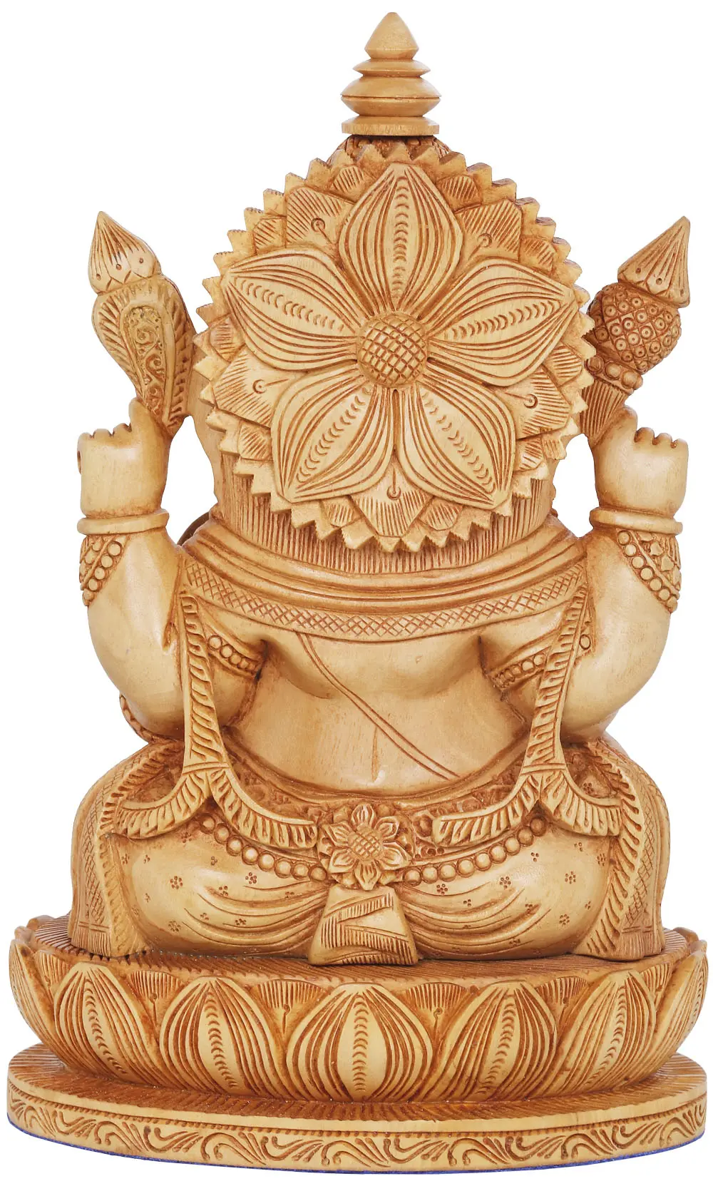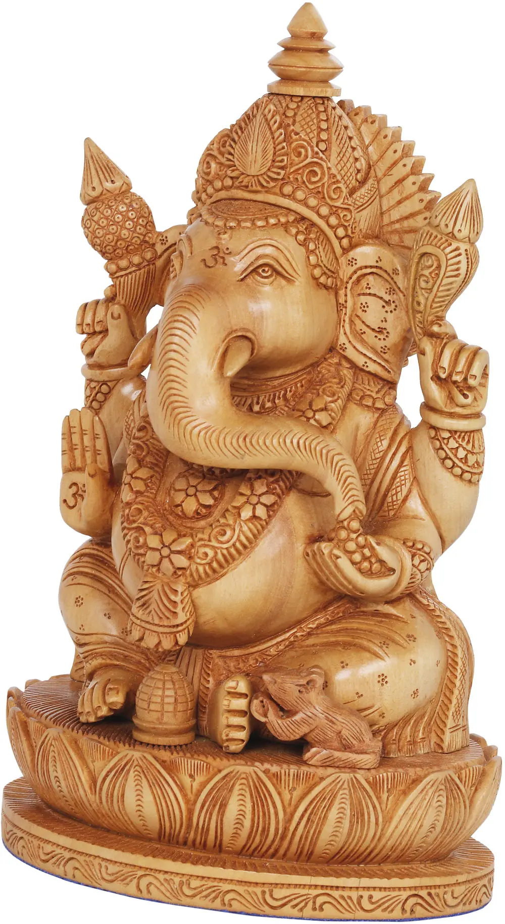 Jaipur wood is famous for its elegant color, smooth texture and refinement; it is used popularly for making sculptures, furniture etc, as it gives a vibrant and soothing look. Ganesha here sits in his usual posture on a stylized lotus pedestal, carved elegantly with the multi-layered leaves that bloom in extreme happiness. He is the supreme deity worshipped popularly in Hindu pantheon with a nature of removing obstacles for a happy and prosperous life.