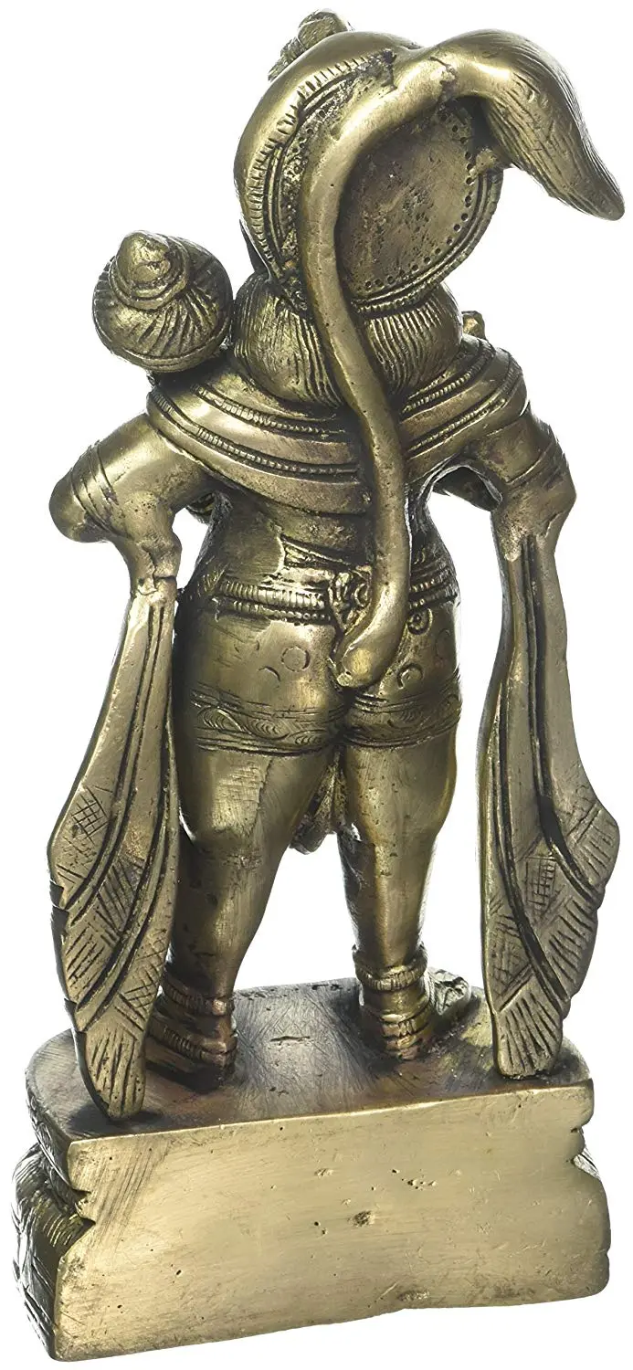 Fashioned from high-quality brass, this statue possesses a timeless appeal and durability. The lustrous golden hue of the metal evokes a sense of sacredness and grandeur, making it a focal point in any space. The craftsmanship is evident in the fine detailing and the smooth finish, ensuring that this piece will be cherished for generations. Its compact size makes it versatile, perfect for adorning a personal altar, a bookshelf, a desk, or any corner of your home that could benefit from a touch of spiritual presence and artistic excellence. Bring home this embodiment of devotion and strength, and feel the blessings of Hanuman permeate your life.