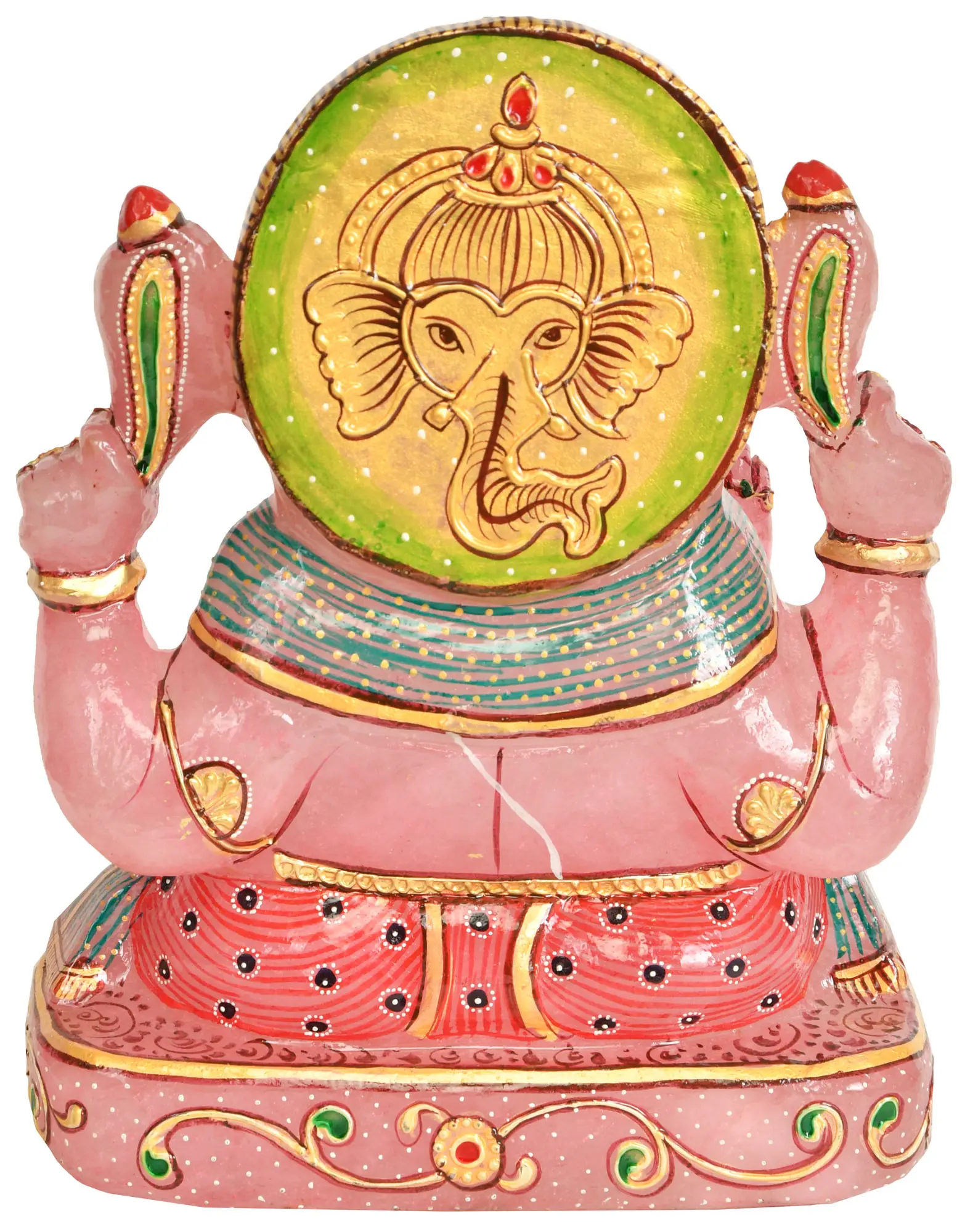 Blessing Lord Ganesha (Carved in Rose Quartz)