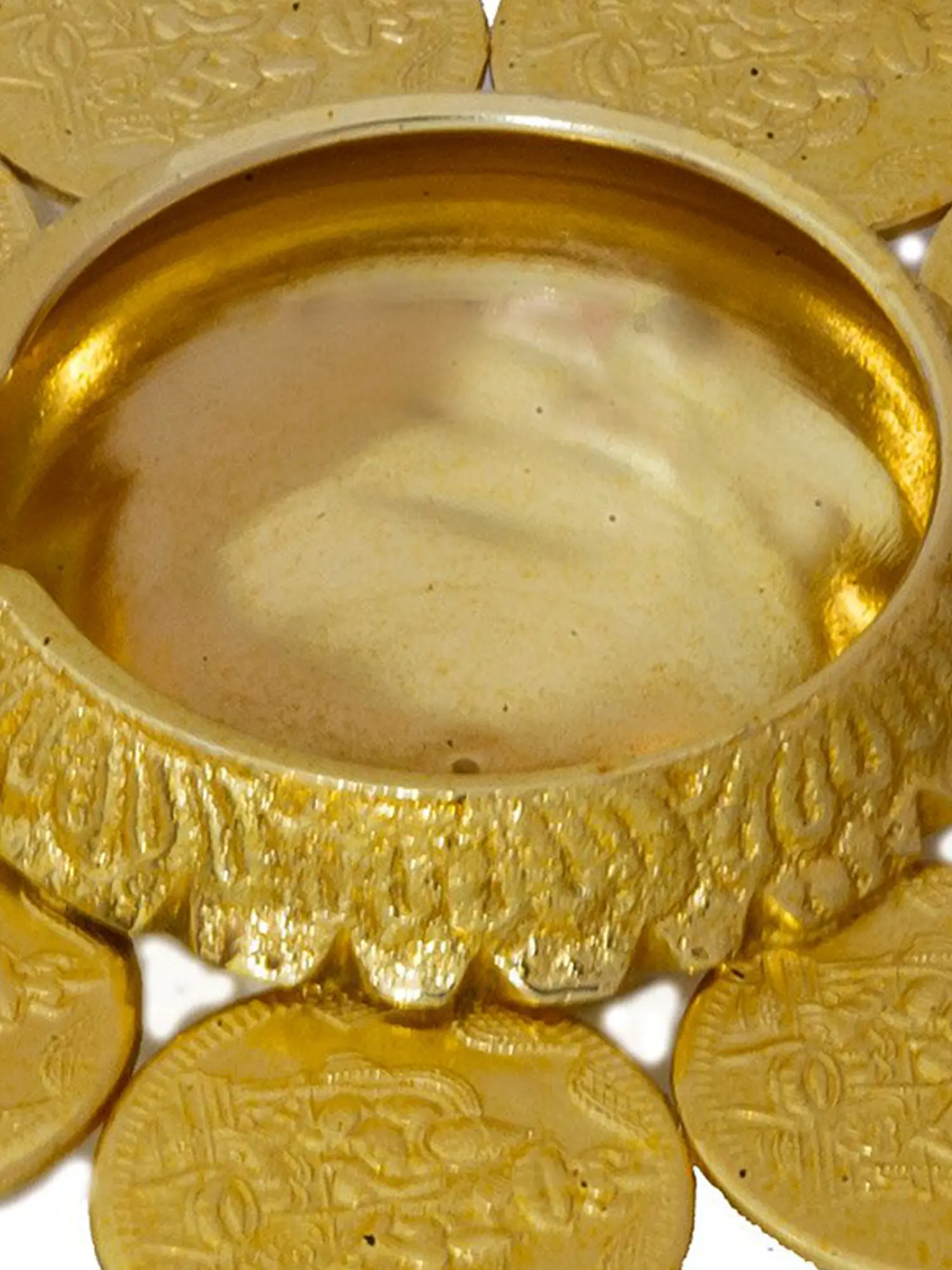 This brass Ashta Lakshmi Diya is a remarkable addition to any collection of ritual and puja items. This exquisite piece features the depiction of the eight forms of Goddess Lakshmi, known as Ashta Lakshmi, on the outer rings attached to a Diya. The brass Diya holds immense significance on auspicious occasions, bringing good luck and prosperity to the home.