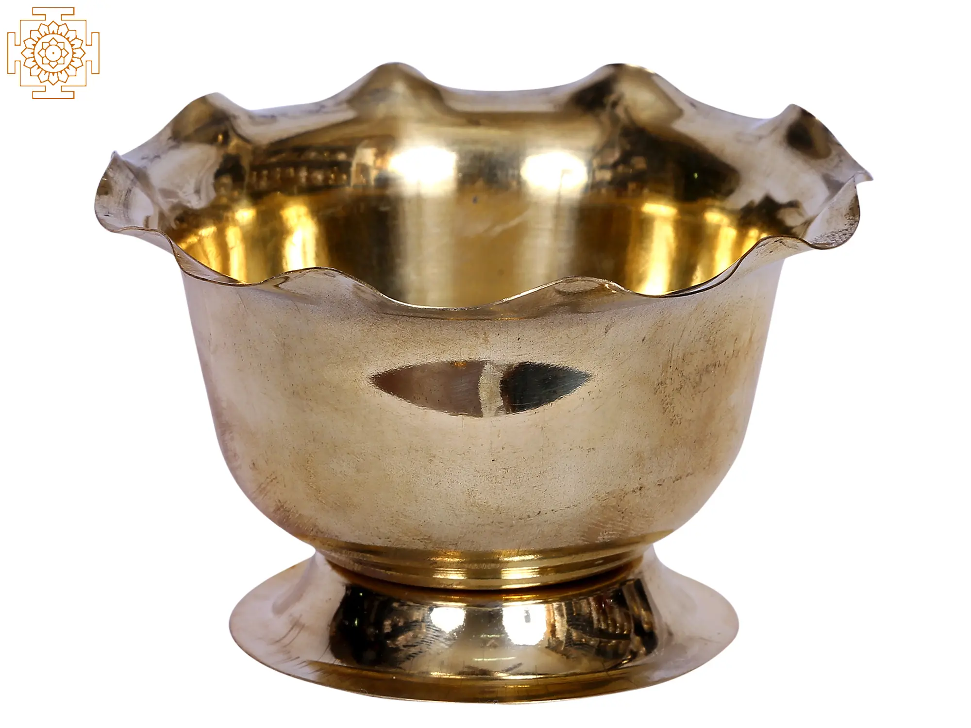 The practice of applying Tilak and Chandan is practiced by various Hindu groups. Many homes have a Tilak-Chandan stand alongside the Puja stand to preserve little amounts of vermillion and sandalwood power to gift to the deities and afterward apply to their foreheads. This brass Chandan Pela is an auspicious ceremonial item endowed with the brass metal's virtue. The containers are well-balanced thanks to the strong base. The container's mouth is artistically cut to resemble the petals of a blossomed lotus flower. It is a basic yet effective technique for keeping the goods required for the daily puja ceremonies running smoothly.