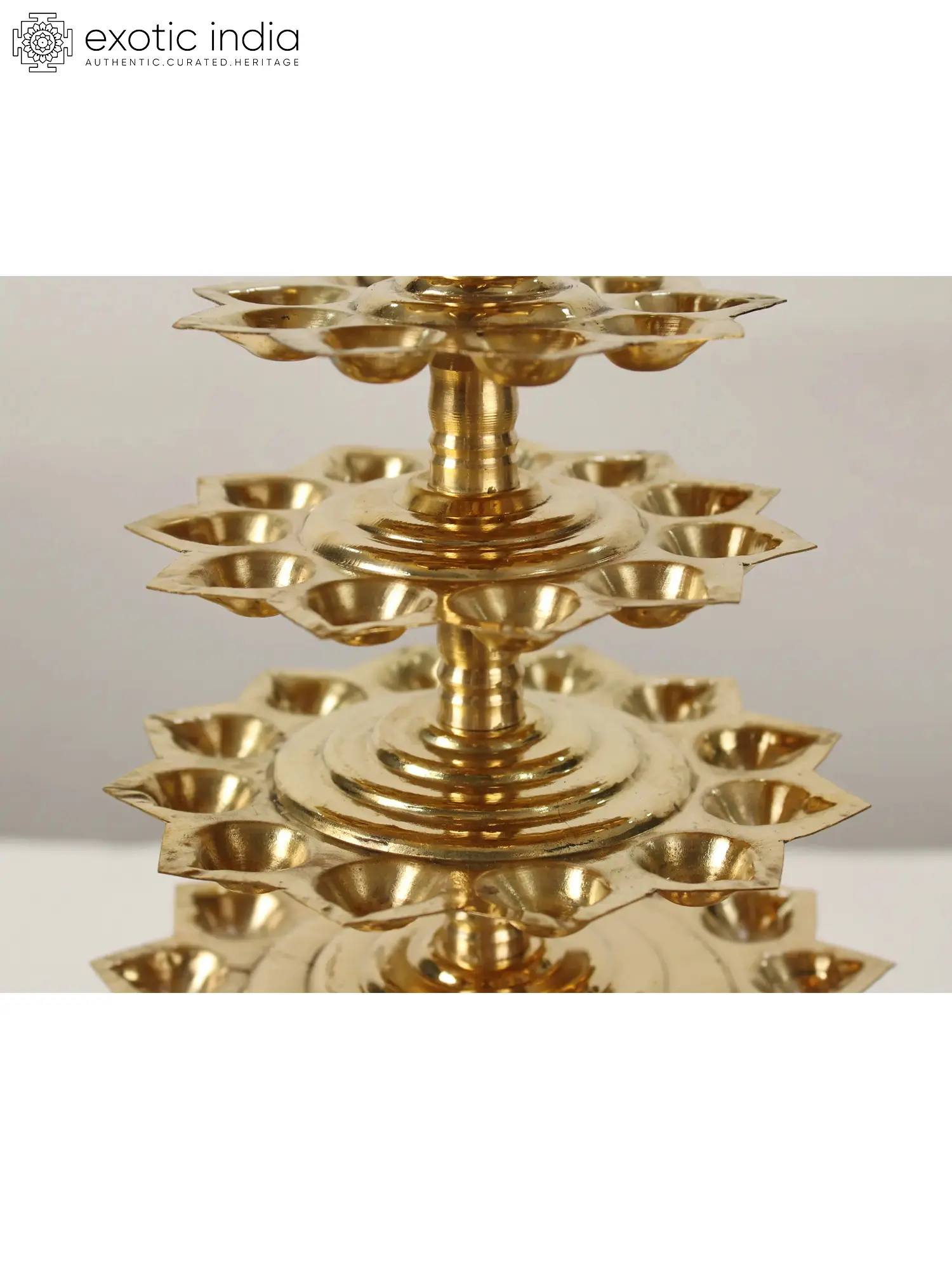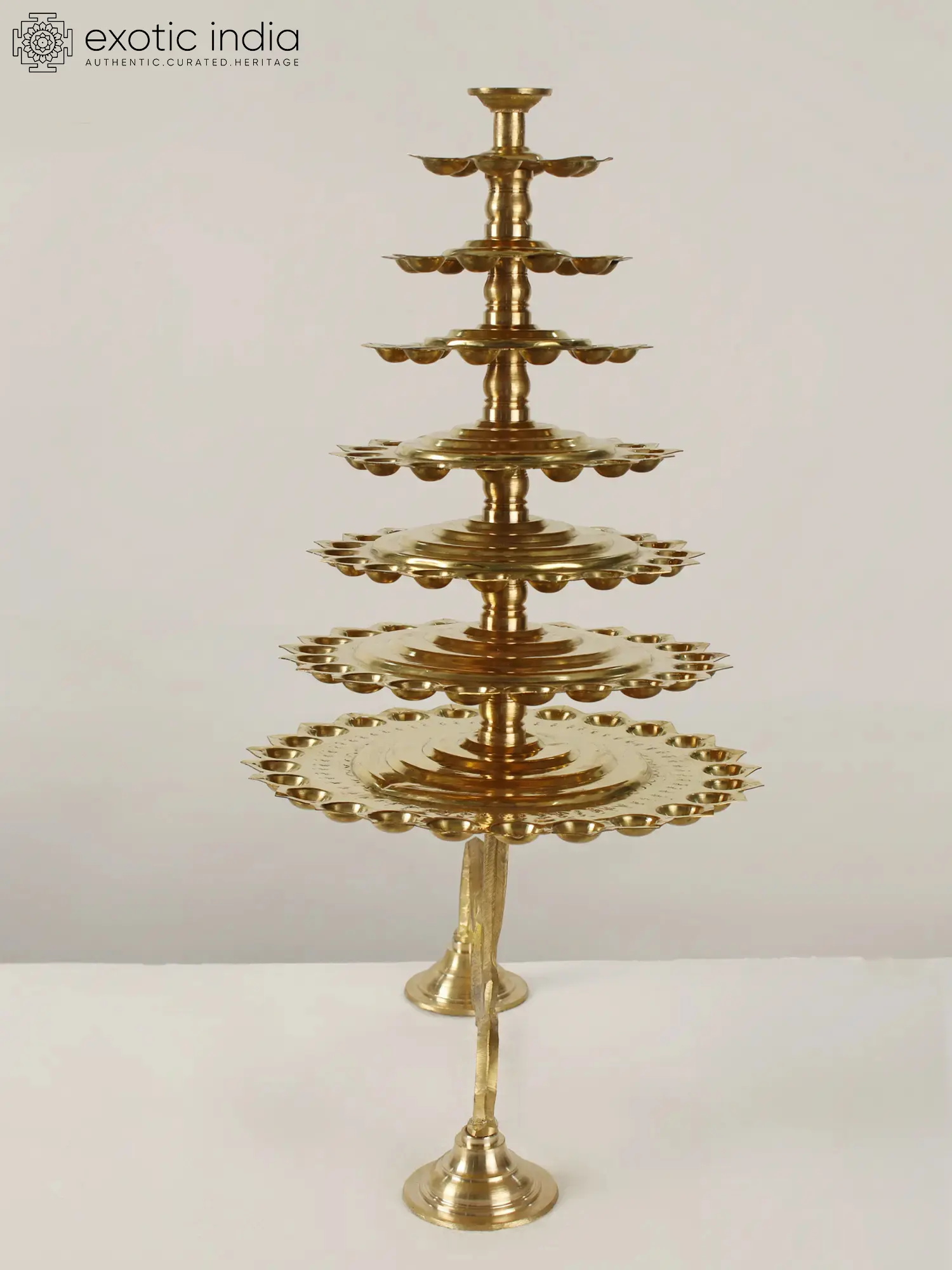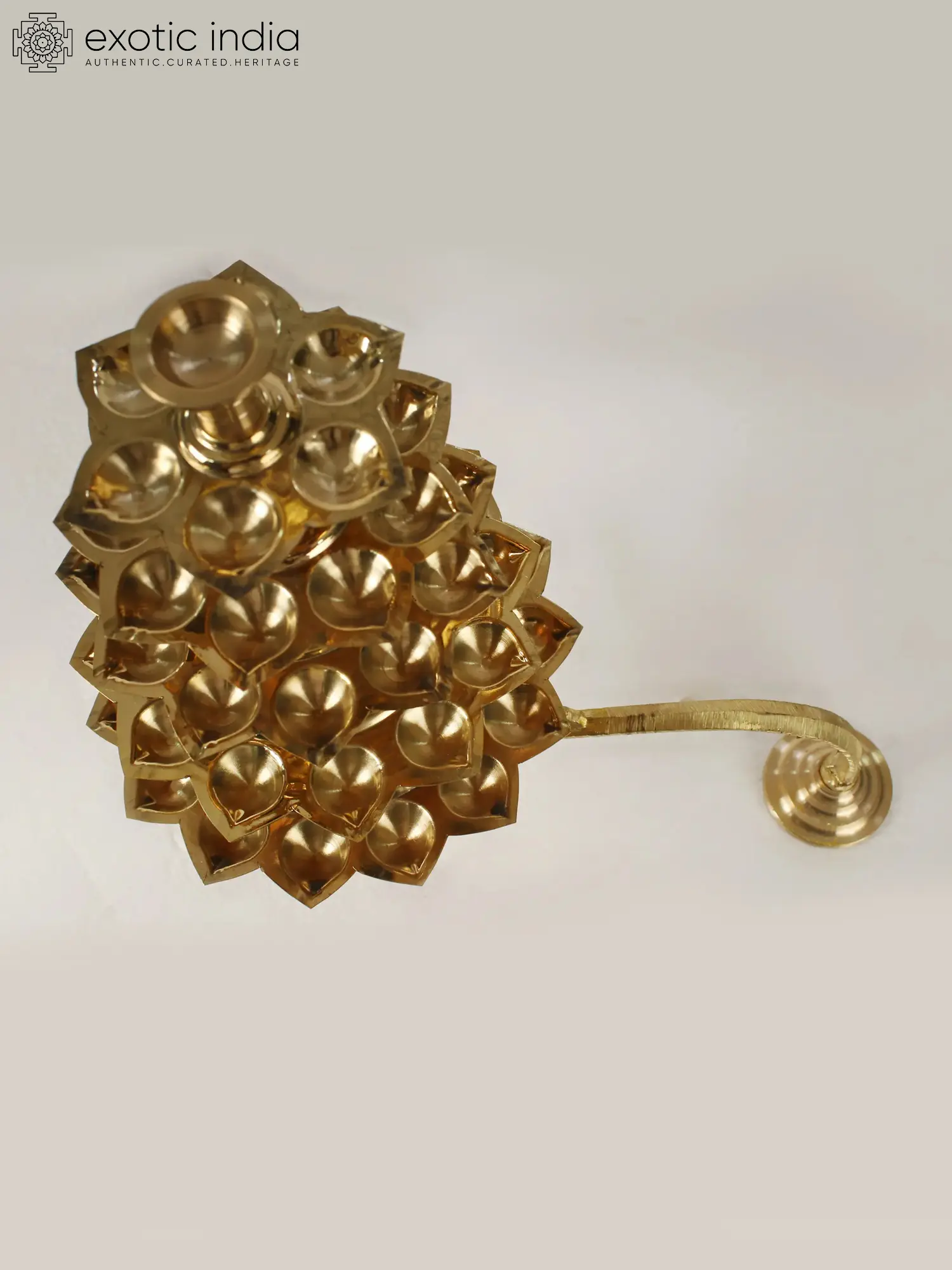 Offering reverence to the fire god and also offering fire as reverence to other deities is a tradition in India. This hand-held brass multi-wick Aarti lamp is painstakingly built and manufactured to deliver a huge quantity of warmth to the deities via the various wicks. The Diya is made of brass, a valuable metal that lends gravitas to the event. This Arti light is frequently seen in use at Haridwar's spectacular Ganga Arti. Because of the combination of a brass container and a strong grasp, the devotee may offer devotion pleasantly. Including this item in daily worship and rituals will guarantee that the respect process proceeds well.