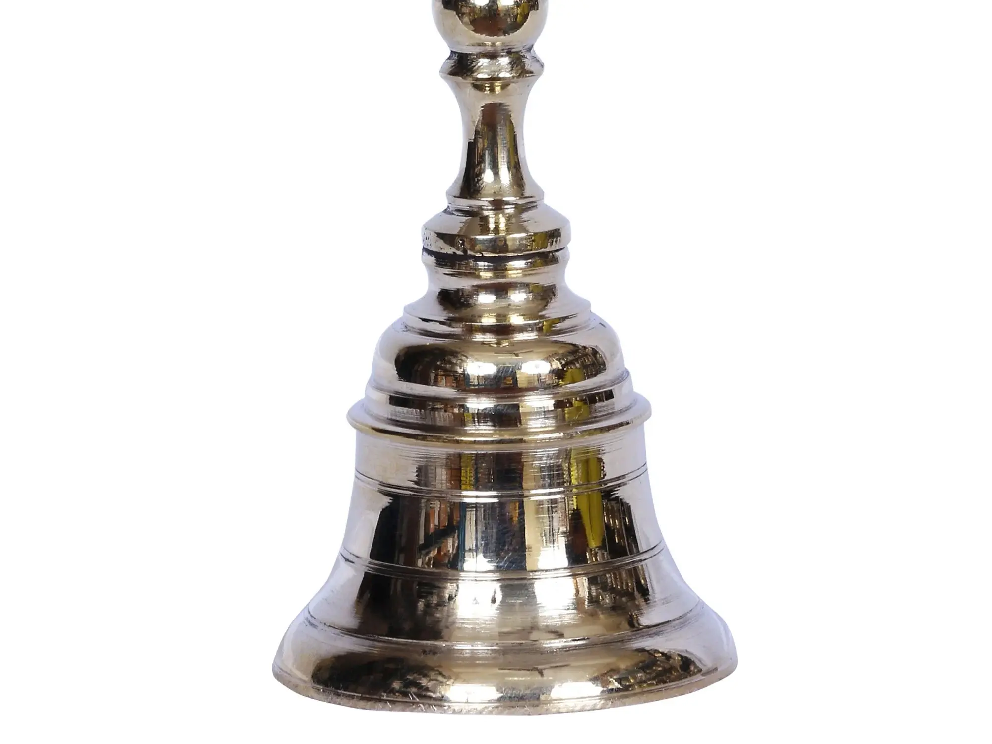 Hand-held bells are used for producing sacred sounds or vibrations during the rituals of aarti or home. This brass bell is blessed with the image of Lord Nandikeshwarag on the top of the handle. It signifies the blessings of Lord Nandi who is also considered to be the first Siddhar or teacher of Yoga science.