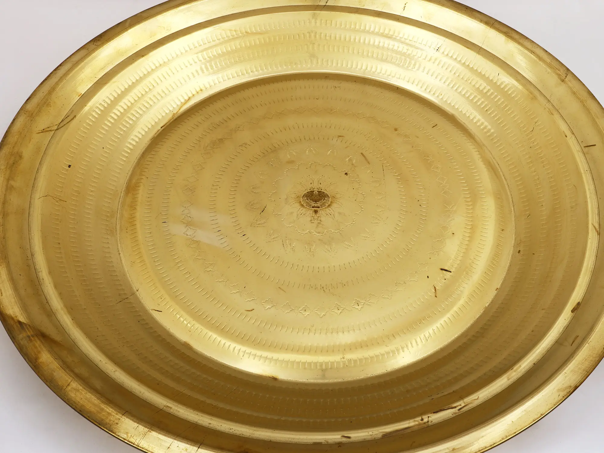 Embrace tradition and spirituality with this Brass Ritual Thali, also known as Parat. Handcrafted with care, this thali serves as a sacred vessel for holding offerings during your puja ceremonies. Its rounded design symbolizes unity and completeness, reflecting the holistic nature of spirituality. Place your sacred items on this thali and create a harmonious atmosphere for your rituals. Let each element on the thali be a reminder of the interconnectedness of all aspects of life.