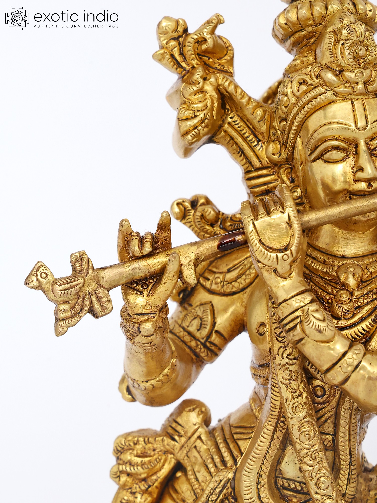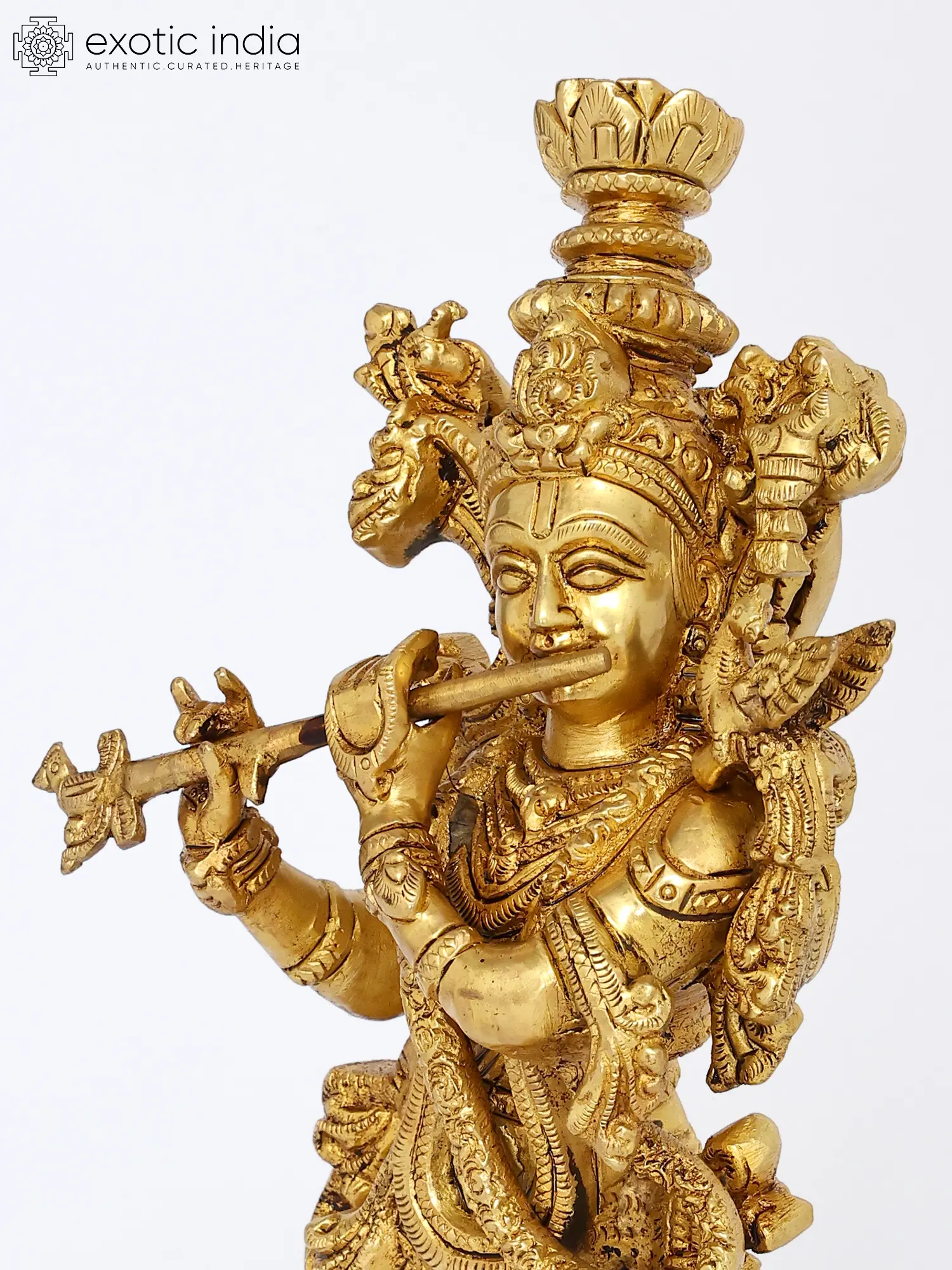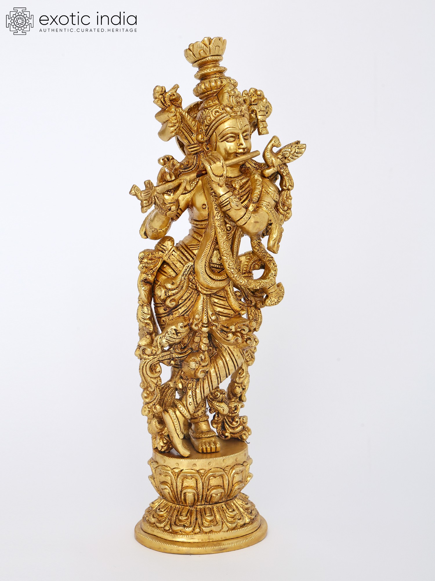 18" Brass Lord Krishna Statue Playing Flute