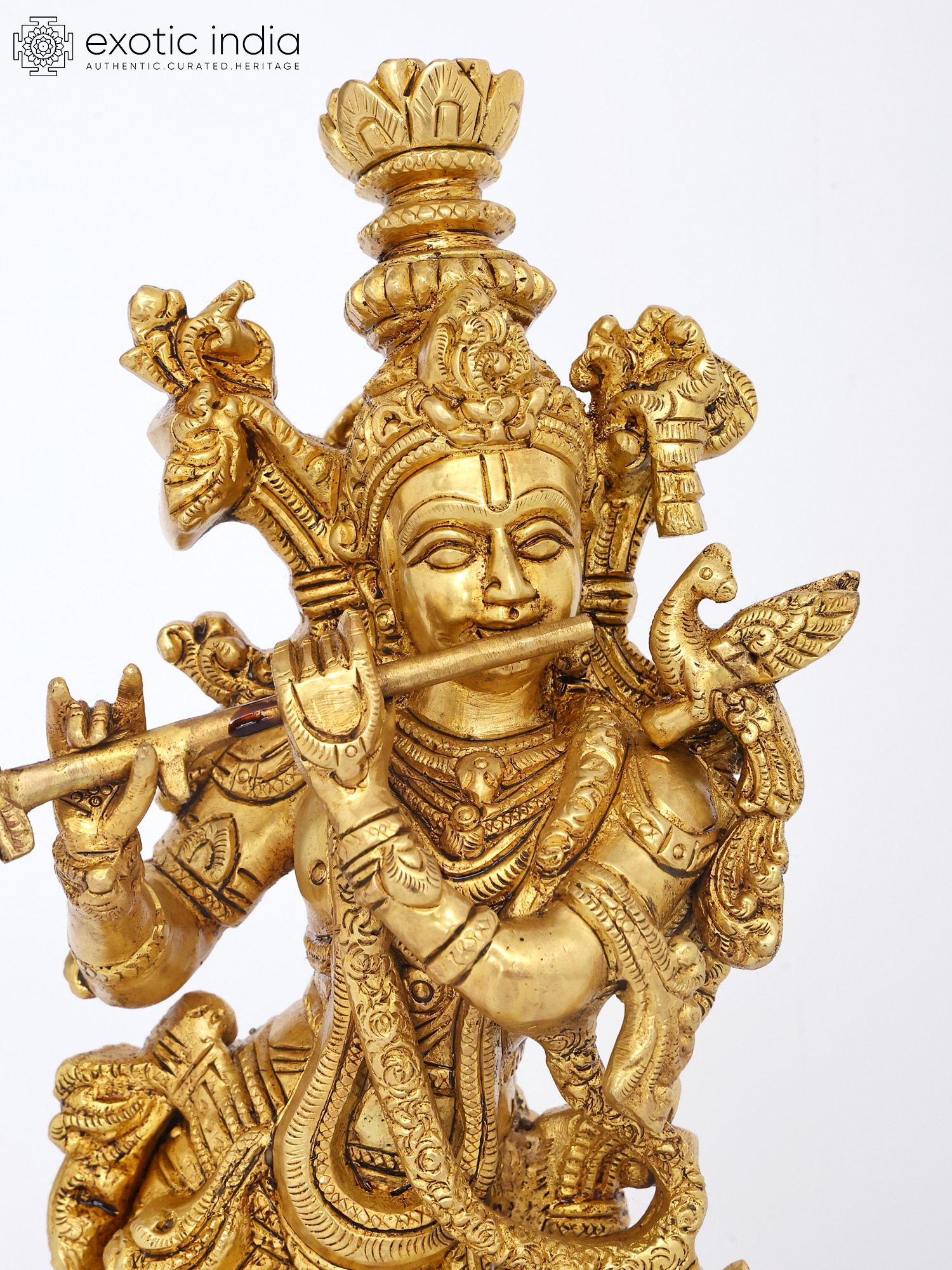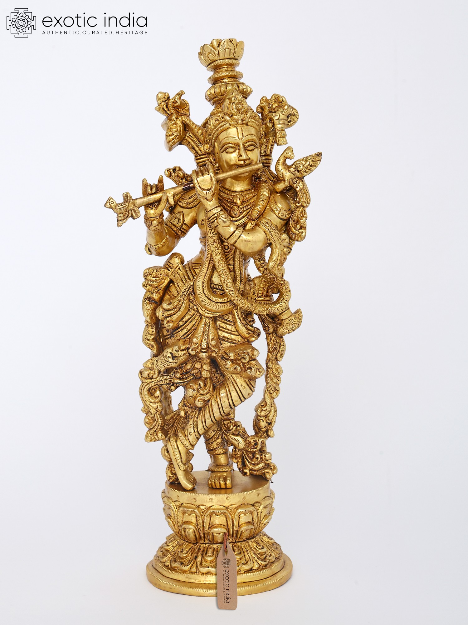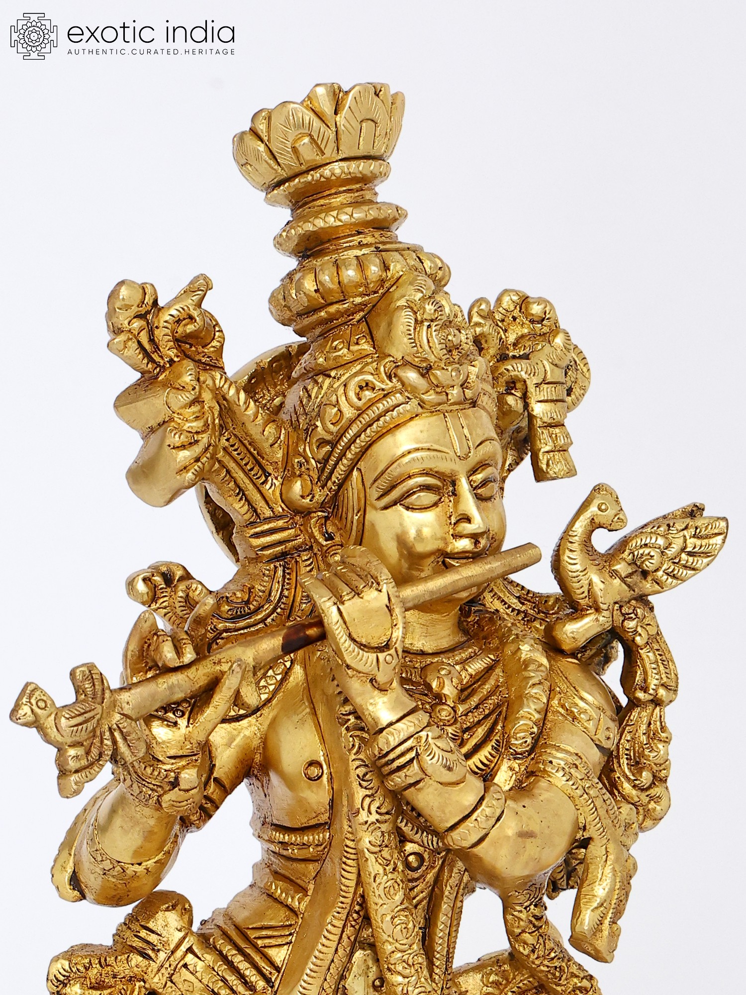 18" Brass Lord Krishna Statue Playing Flute