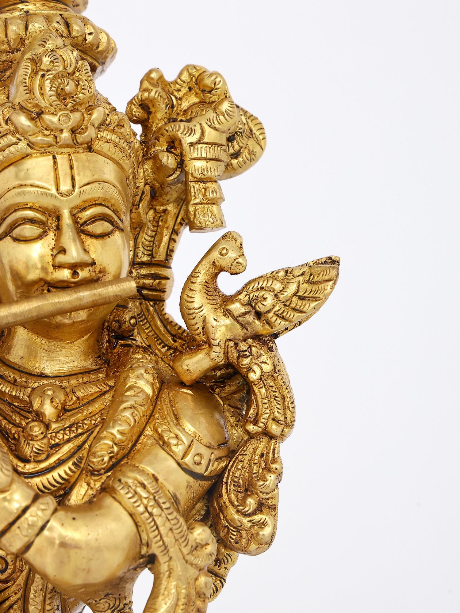 27" Large Fluting Krishna Lamp in Brass | Exquisite Handmade Craft | Authentic Indian Art