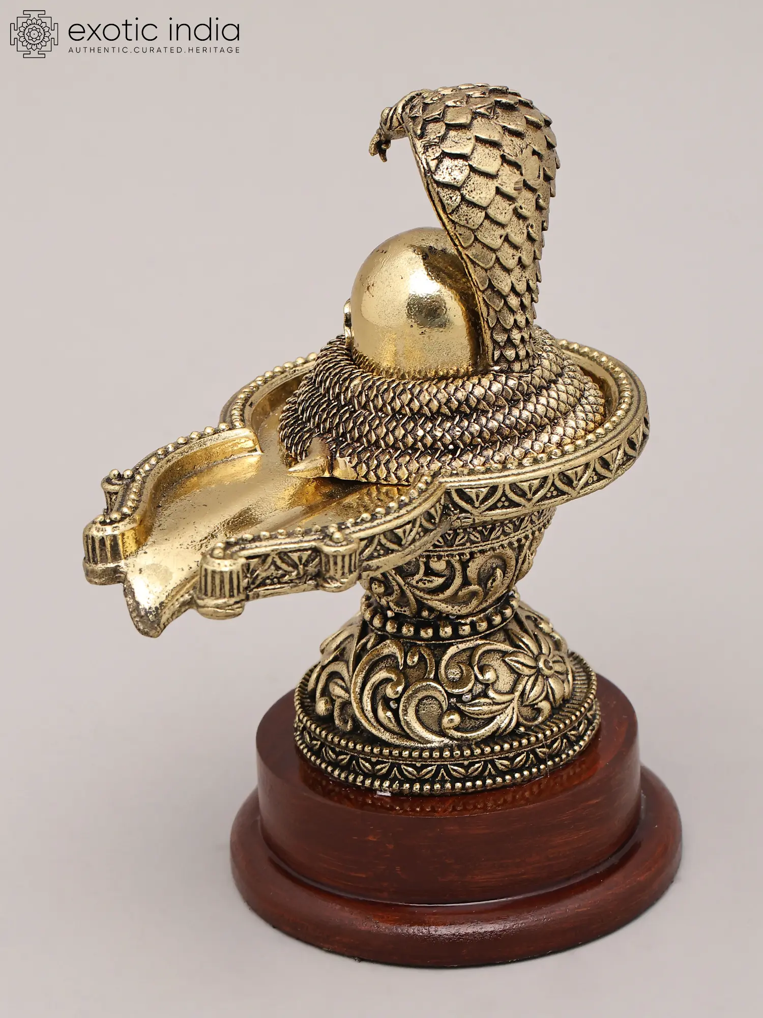 Shivling With Sheshnag | Brass Statue | Wooden Base