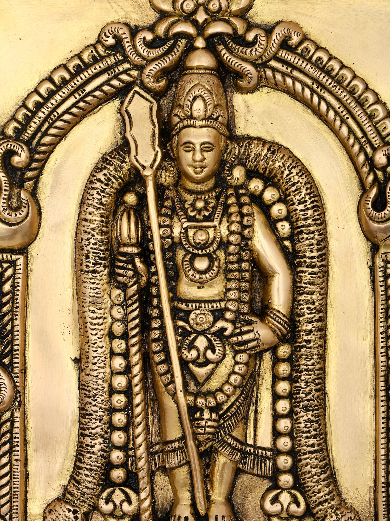 Standing Lord Murugan (Karttikeya) with Kirtimukha Prabhavali Brass Statue