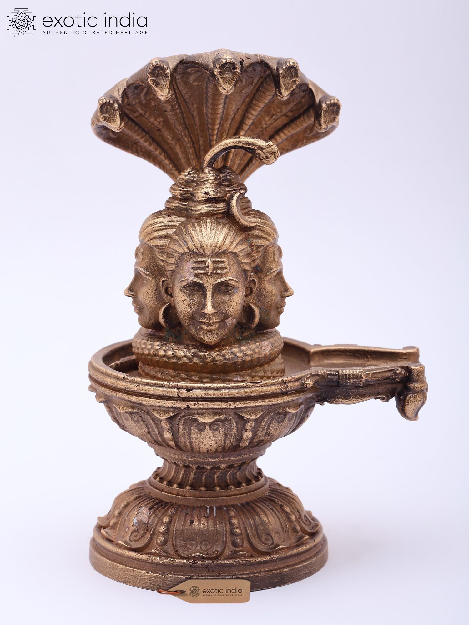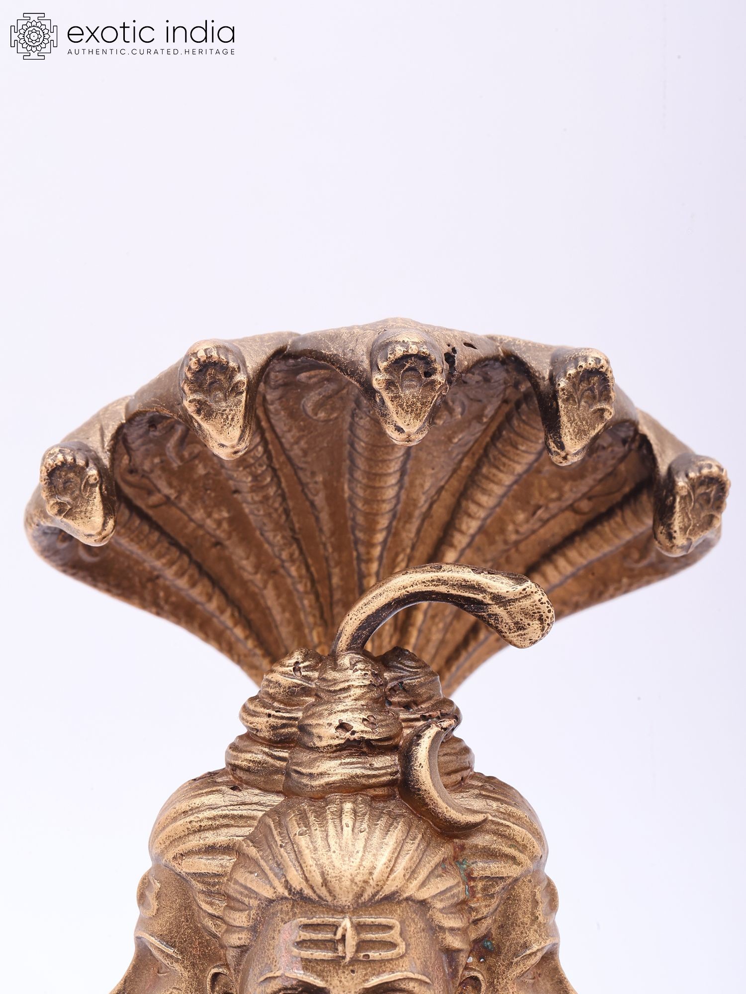 Shivalingam with Five Hooded Crowning Serpent Bronze Statue