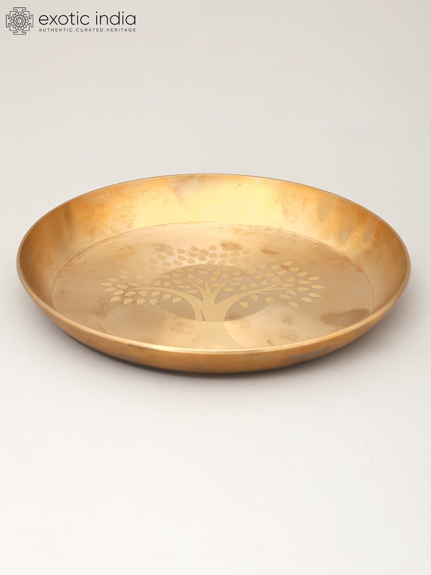 Floral Design Ritual Thali in Brass | Multiple Sizes