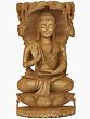 Discover the result of meticulous artistry, where skilled hands have transformed precious Kadamba wood into a masterpiece. Each detail, from the subtle folds of the robes to the serene expression, is rendered with an artisan's touch. The choice of Kadamba wood, known for its fine grain and warm hue, enhances the piece's natural elegance and tactile appeal.