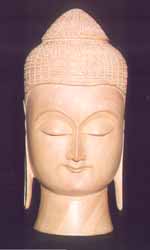 The serene and contemplative look on his face and the delicately carved thin lips are all part of his carefully delineated facial features.