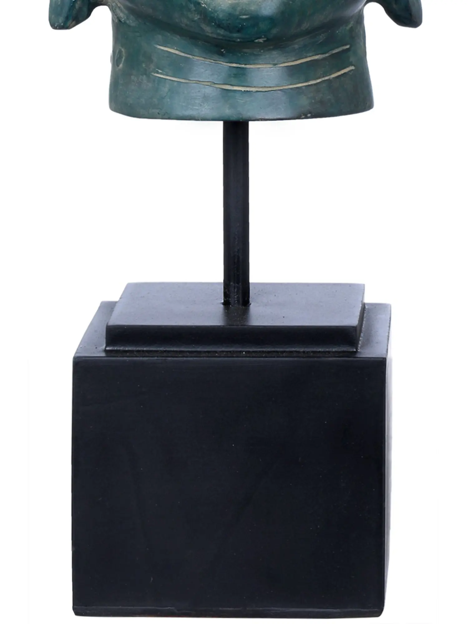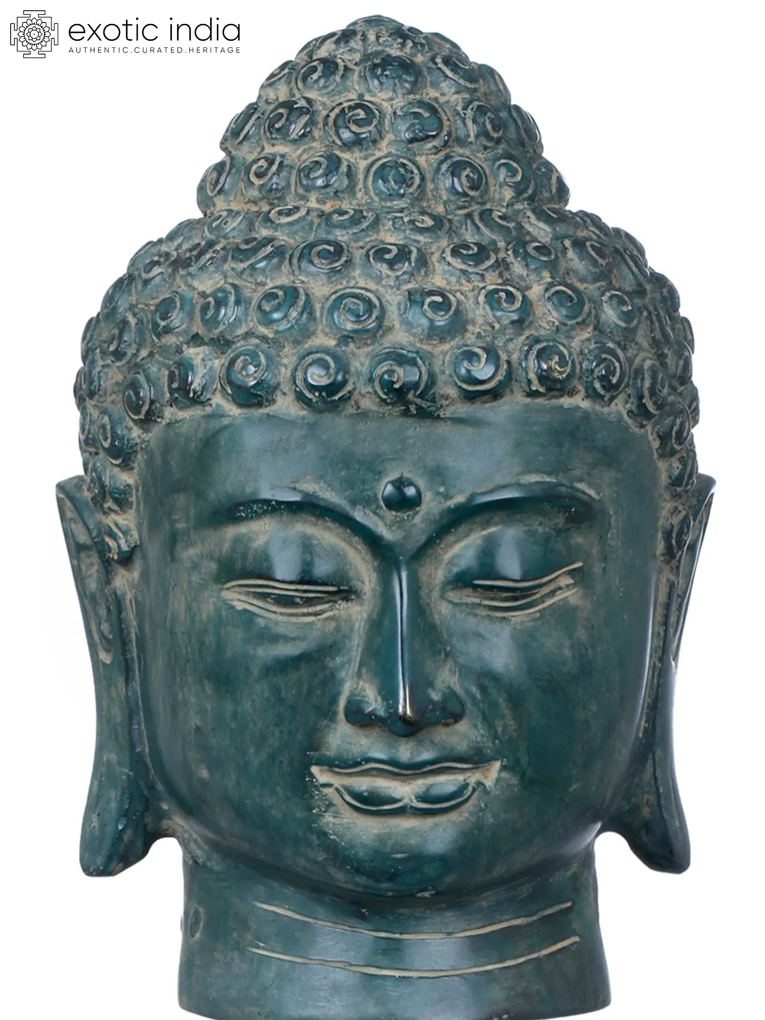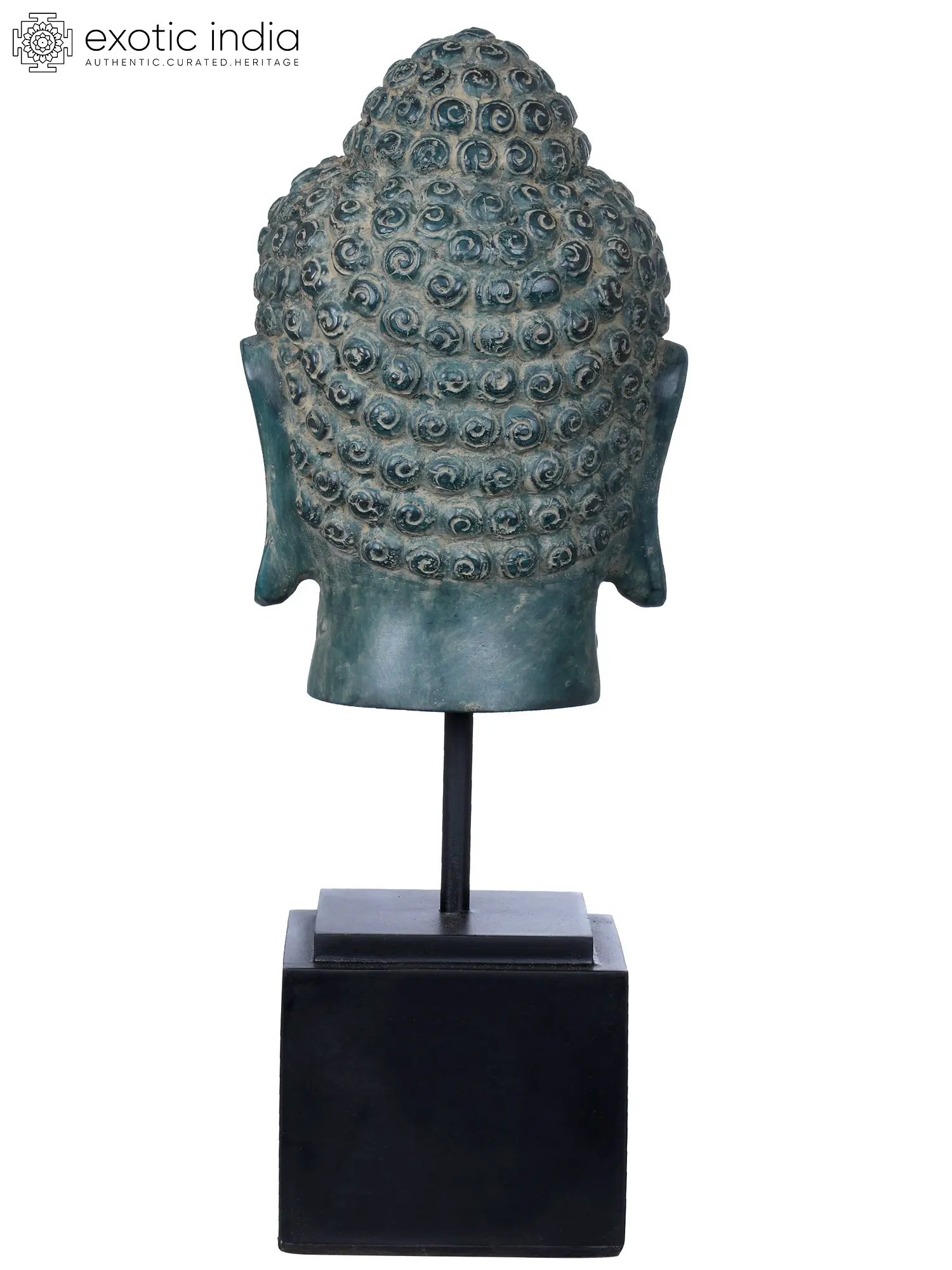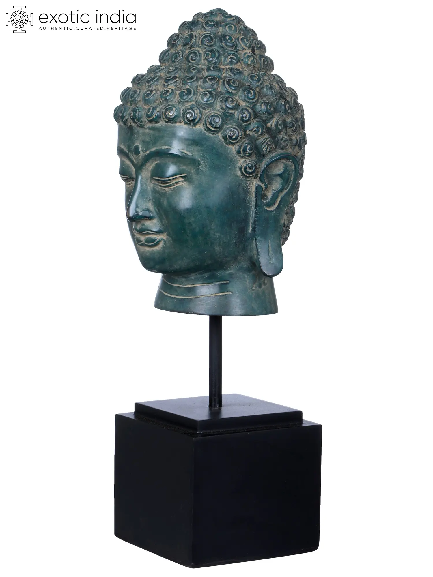 The face of Buddha is the most peaceful image one may behold. Lord Buddha meditating with half-closed eyelids has always been a symbol of discipline and tranquility. This Tibetan Buddhist Lord Buddha Head on Stand, a brass statue mounted on a wooden stand, is a profound embodiment of the spiritual serenity of meditating Buddha image.
