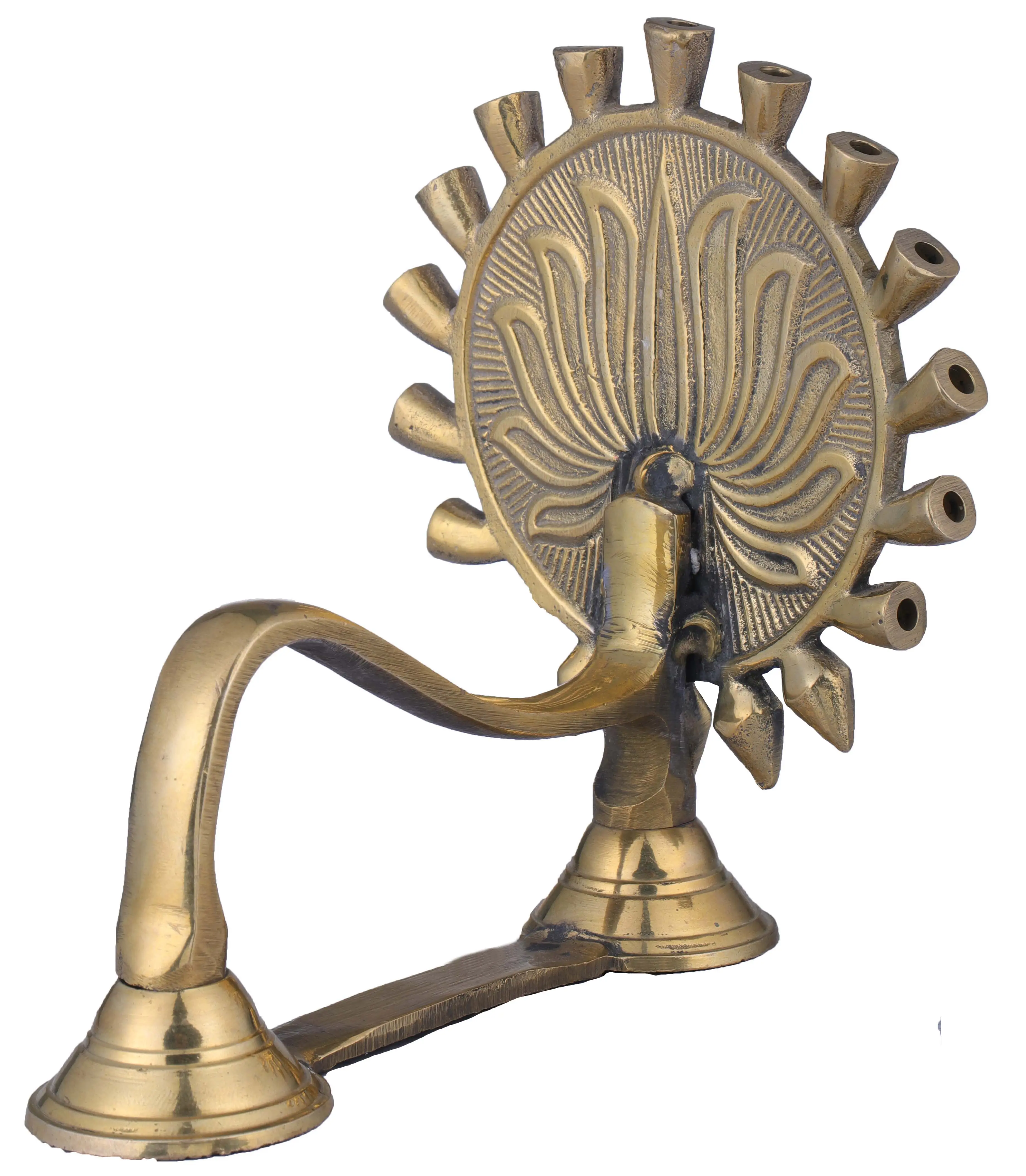 9" Fine Quality Brass Handheld Peacock Aarti Lamp | Handmade | Made in India
