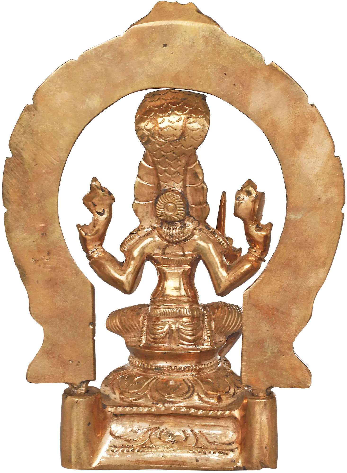In addition to the same, other signature elements of Southern workmanship are the angular face set with sharp, handsome features; a tall, tapering crown; and the Kirtimukham aureole that stems straight from the pedestal. A ferocious snake raises its five conjoined hoods above Her crown, another expression of the wrathful streak of Devi Mariamman.