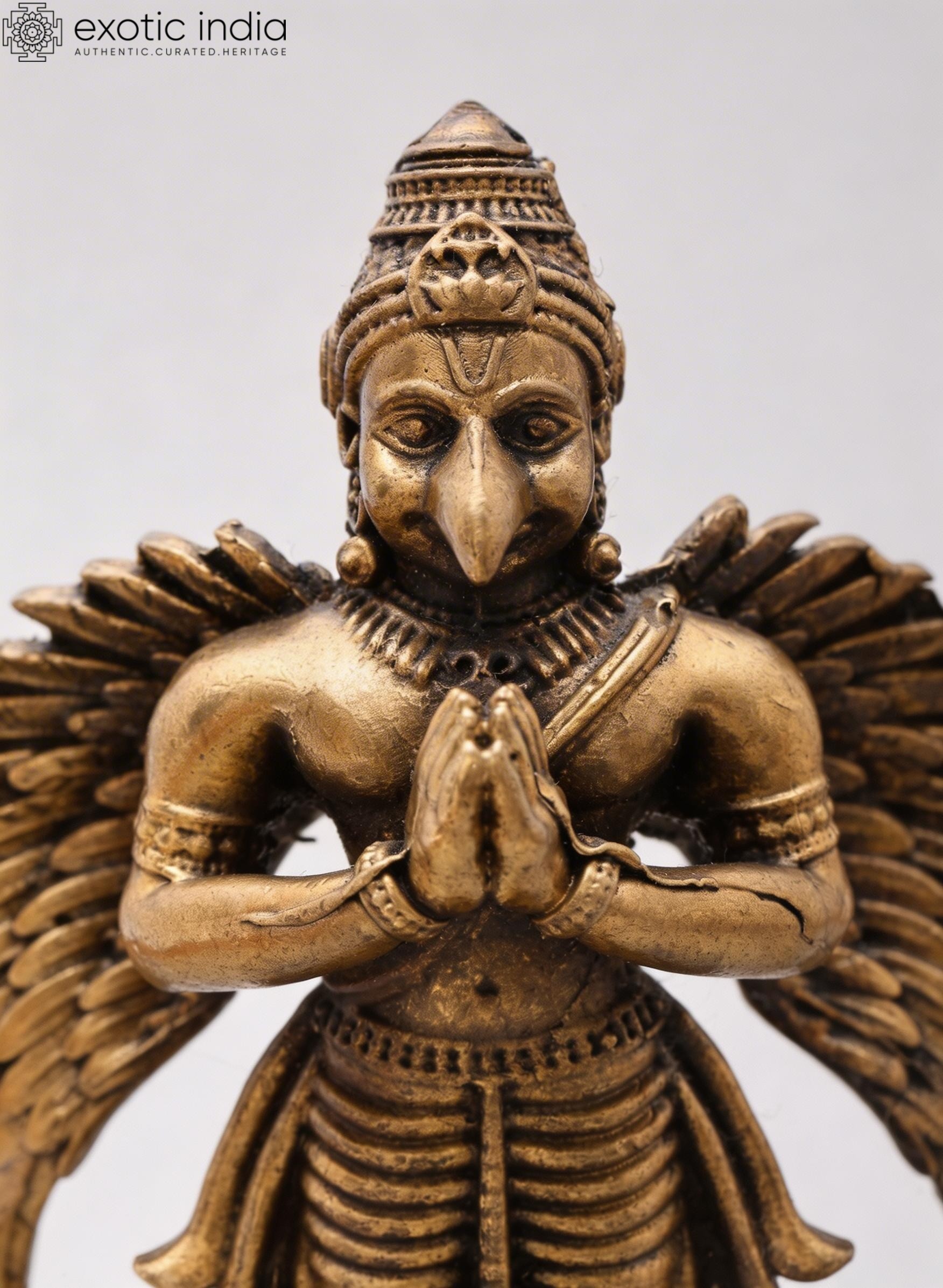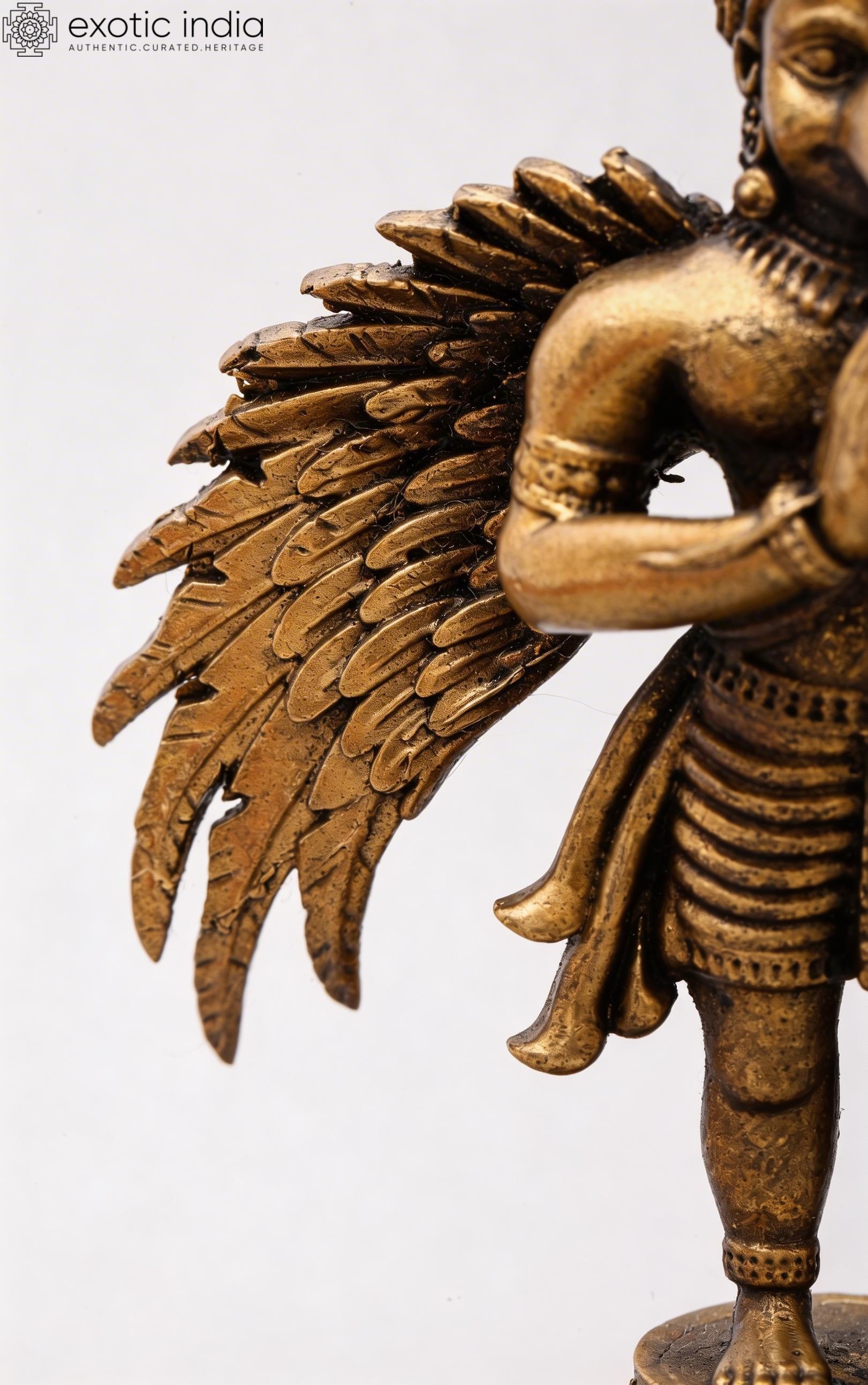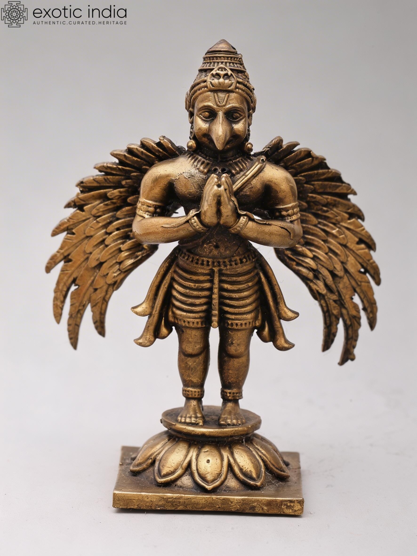 Features Garuda, the divine eagle-like mount of Vishnu, depicted in a respectful Namaskar (prayer) gesture.