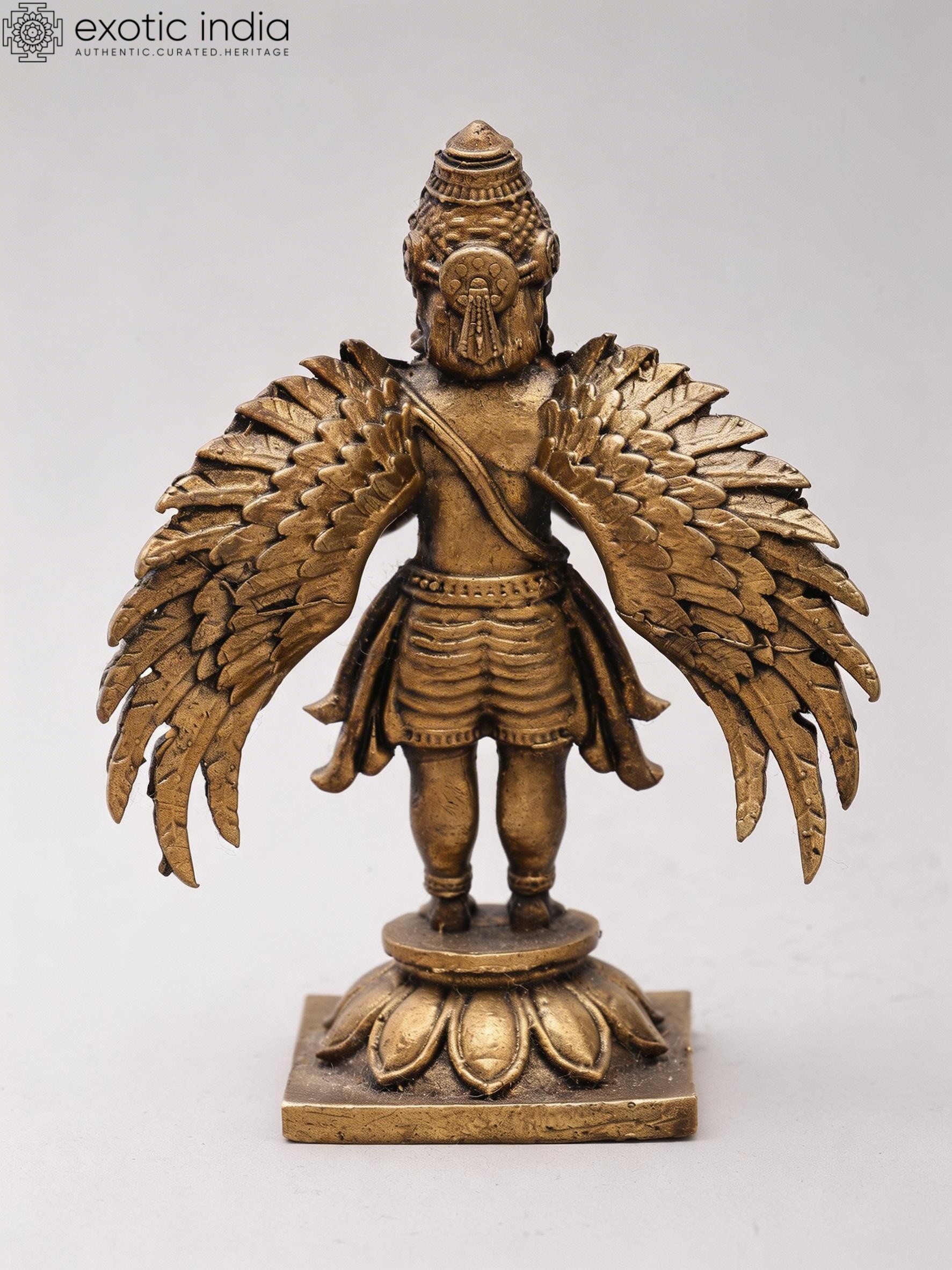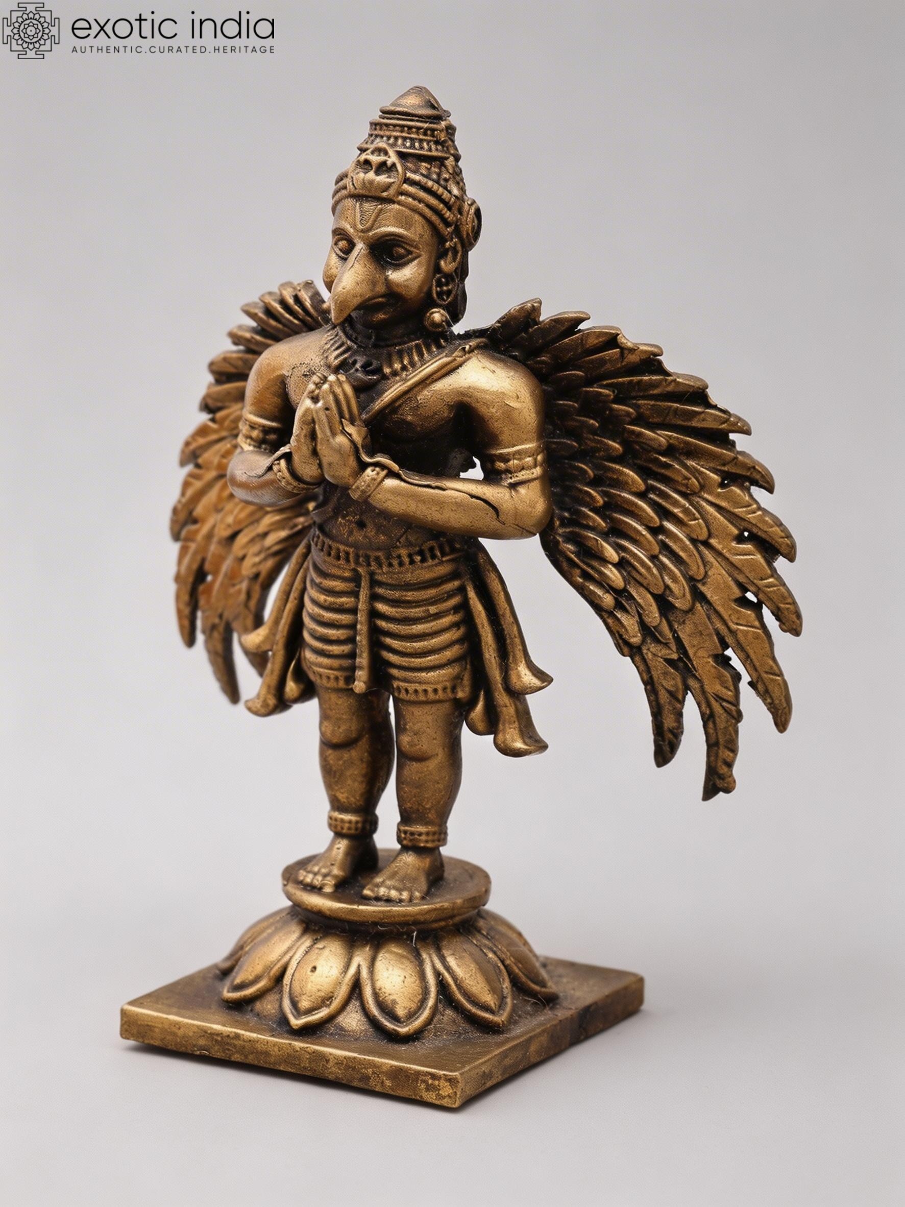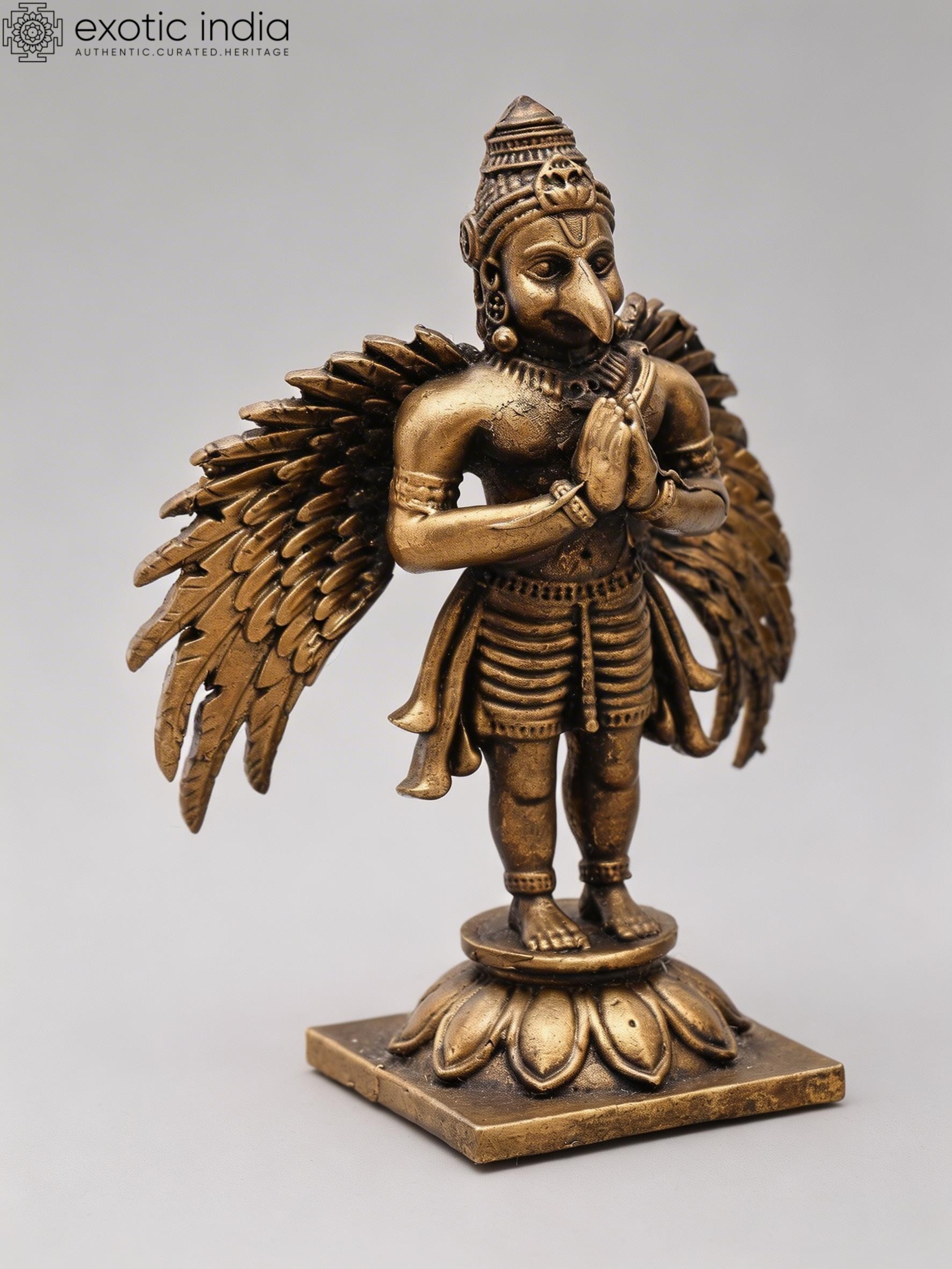 Features Garuda, the divine eagle-like mount of Vishnu, depicted in a respectful Namaskar (prayer) gesture.