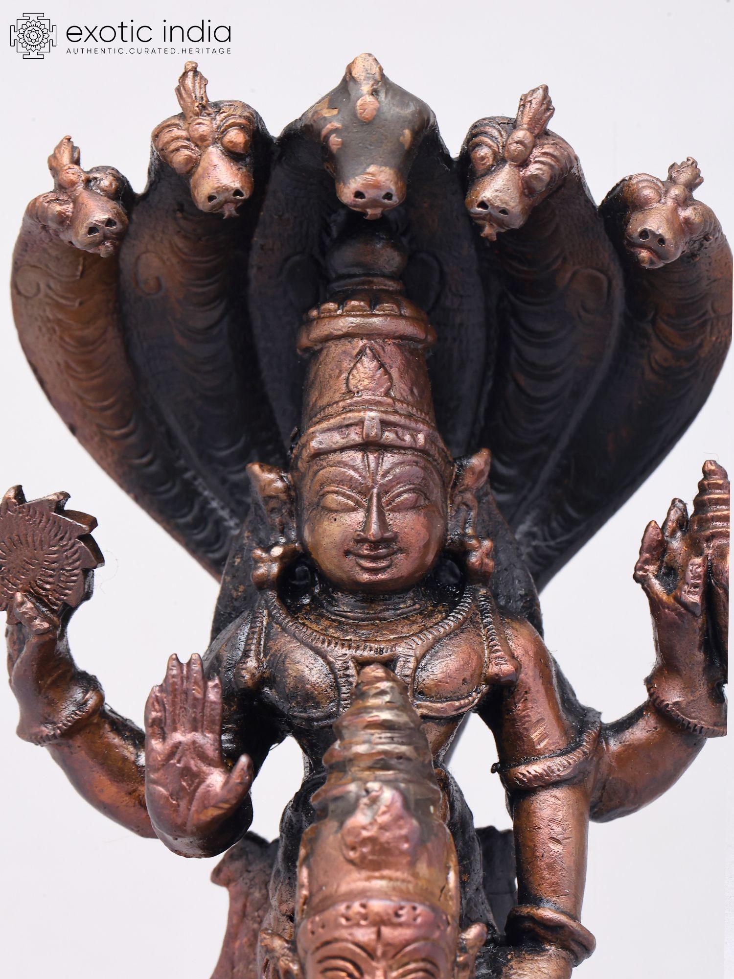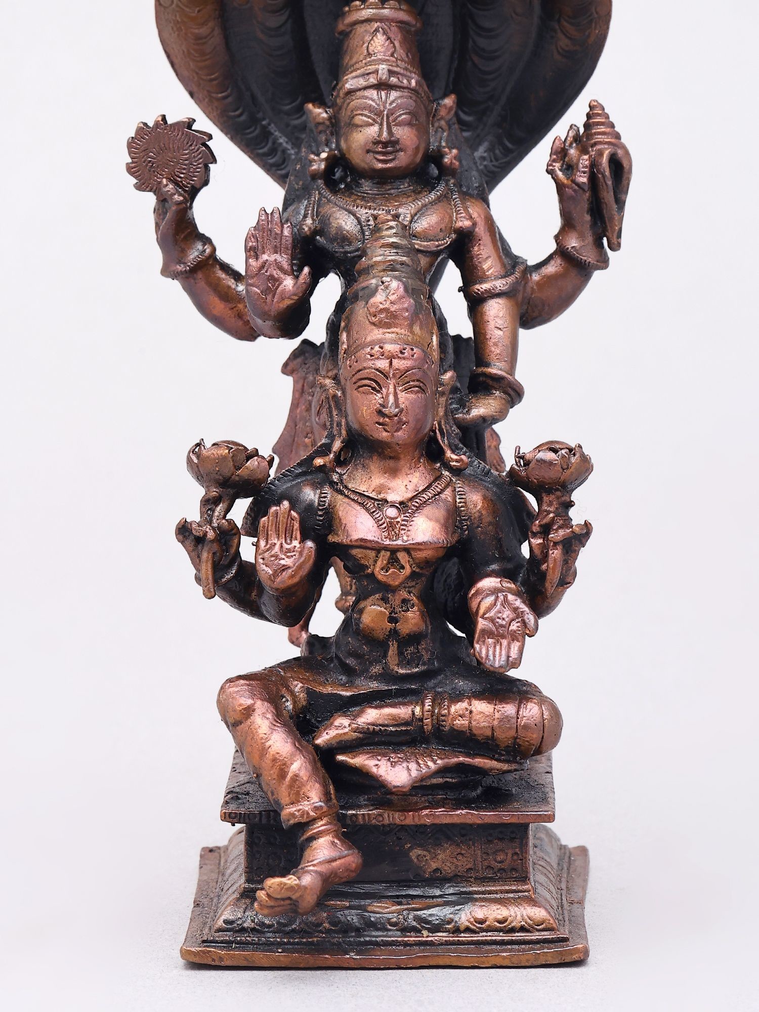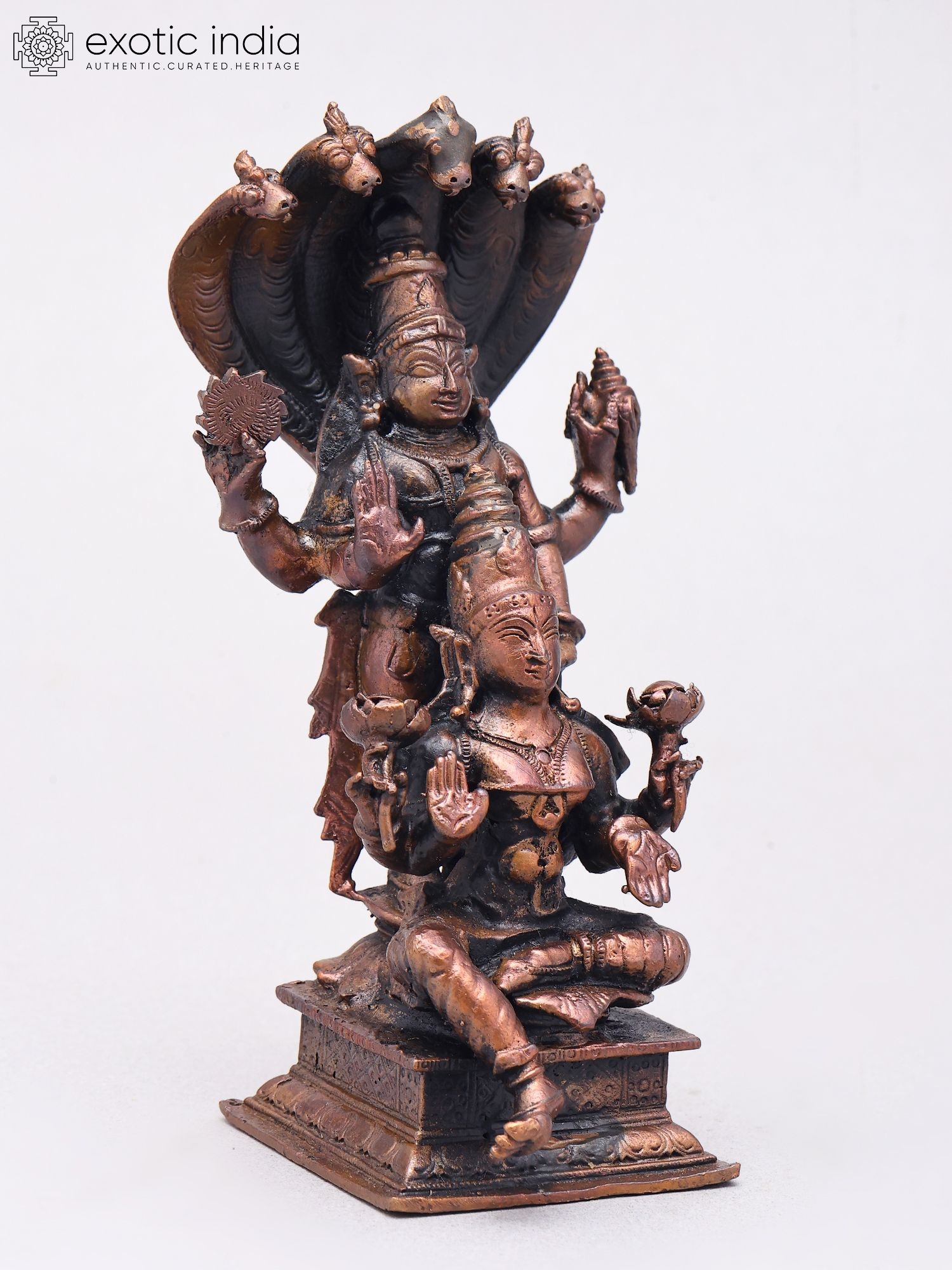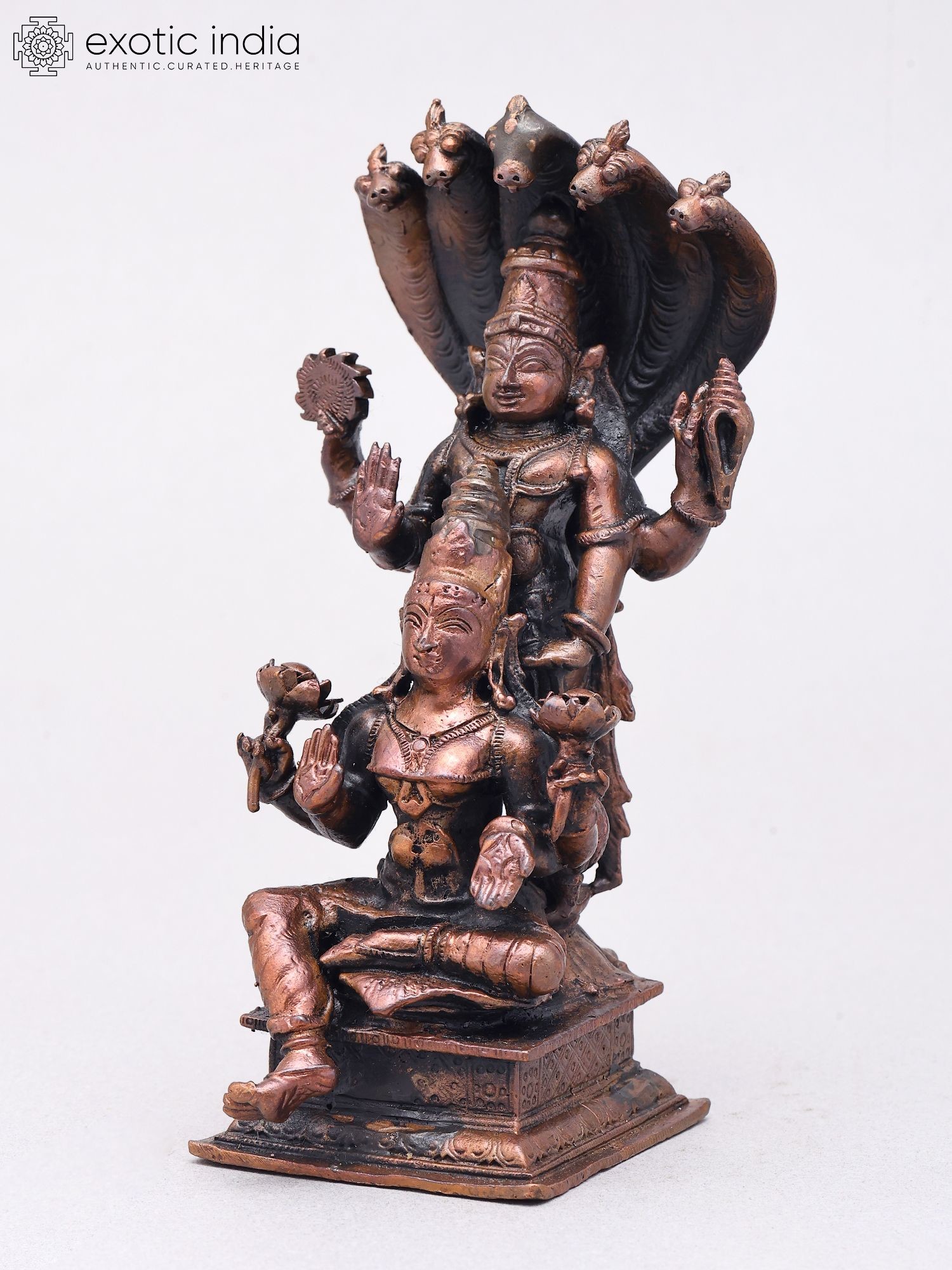 Copper Idol of Vishnu and Lakshmi with Sheshnag Canopy