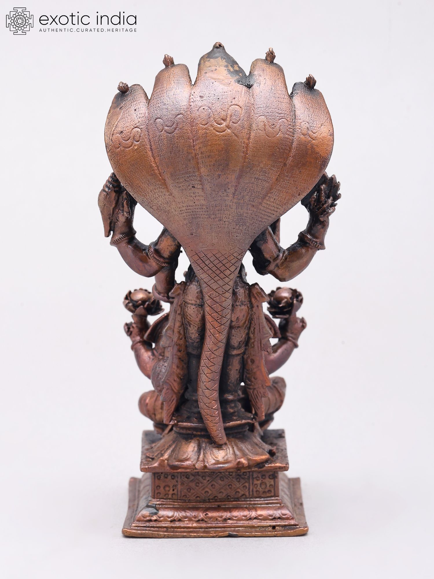 Copper Sculpture of Vishnu and Lakshmi with Garuda | 5 Inches Tall