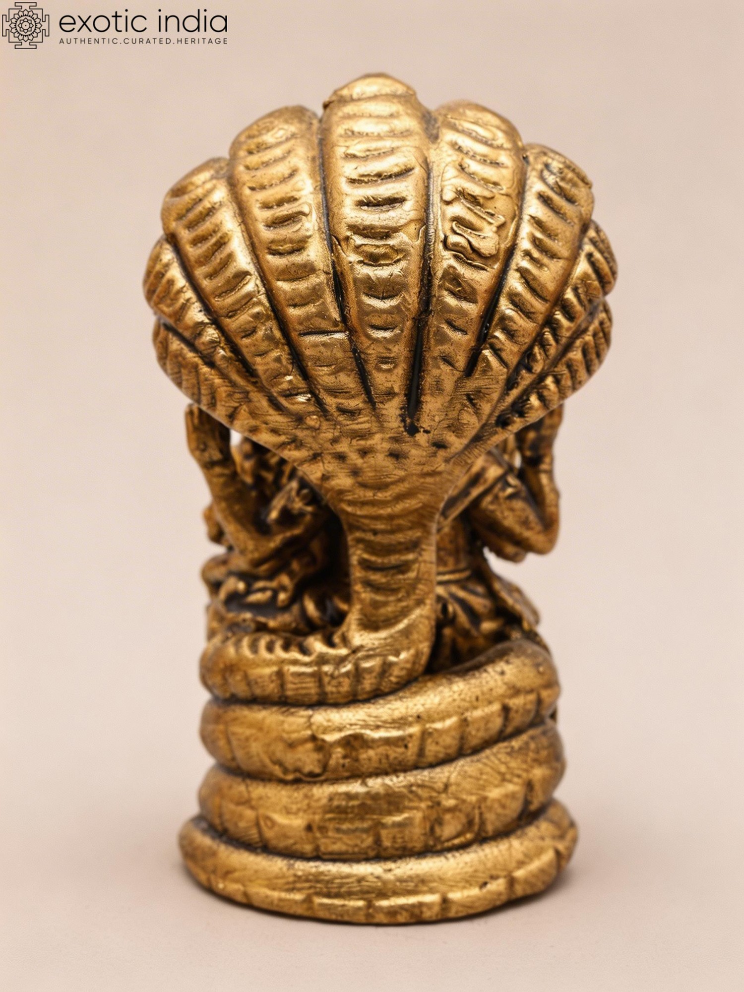 Copper Statue of Lakshmi Narasimha Seated on Sheshnag (3" Small)