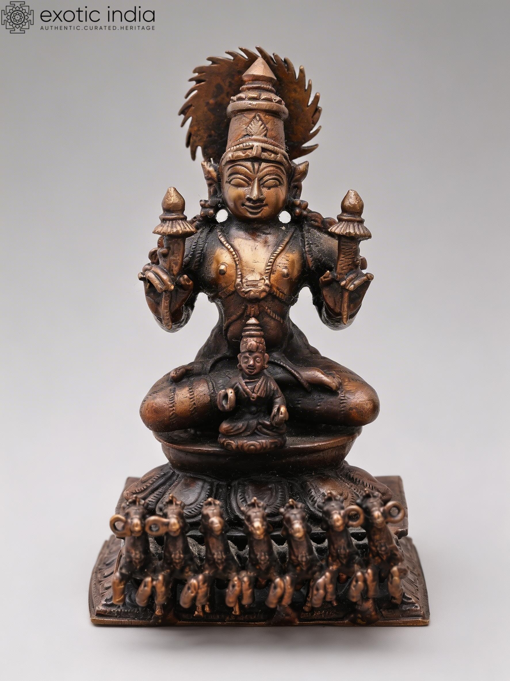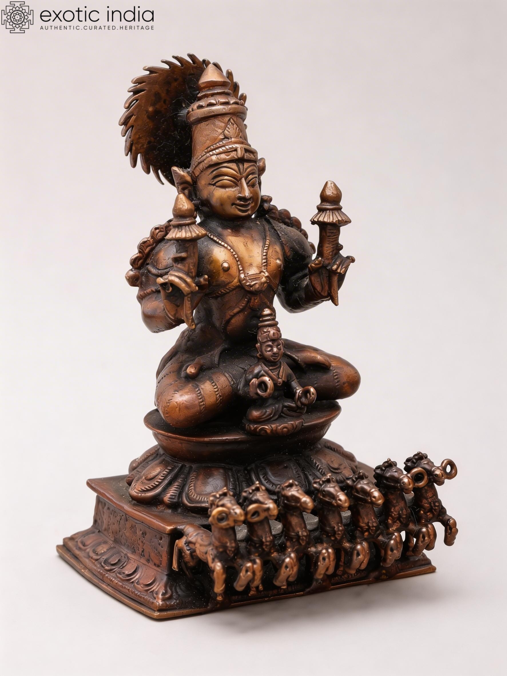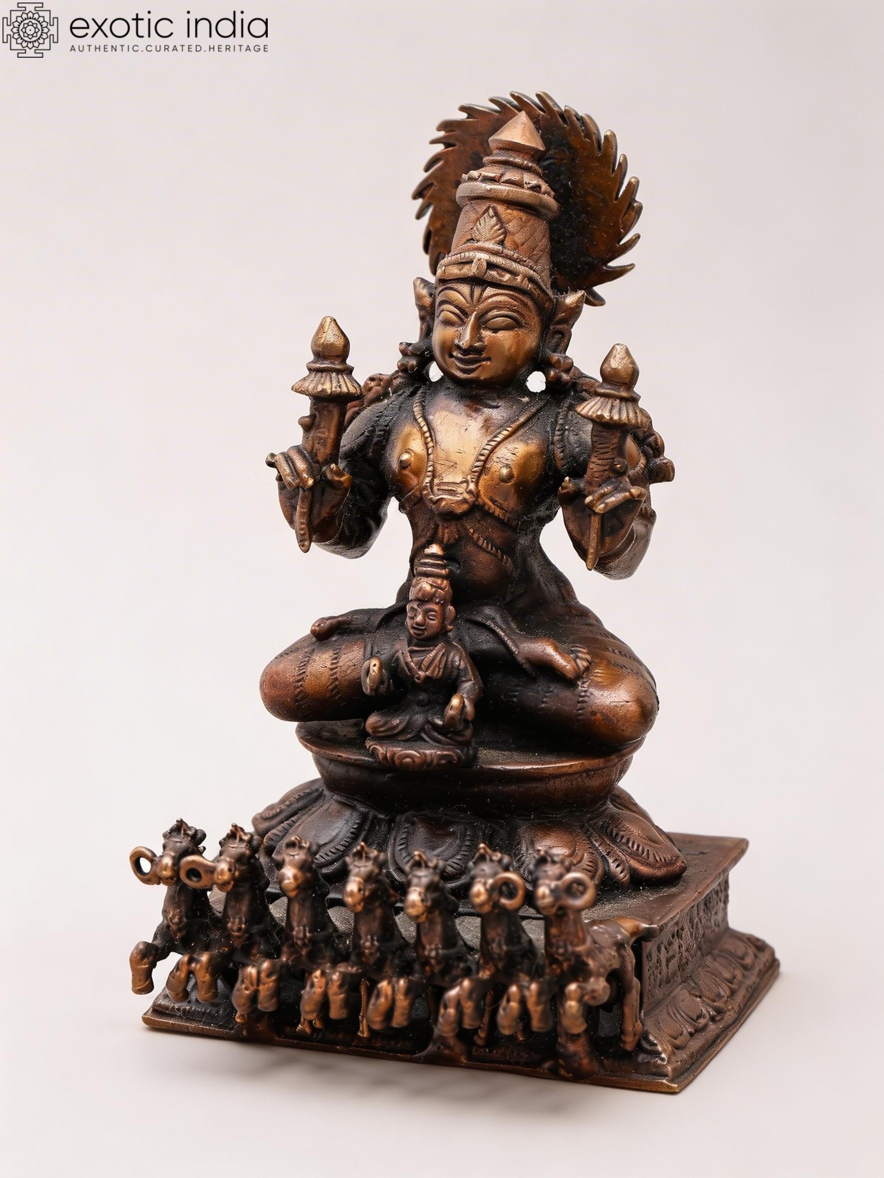 Copper Statue of Lord Surya with Seven Horses