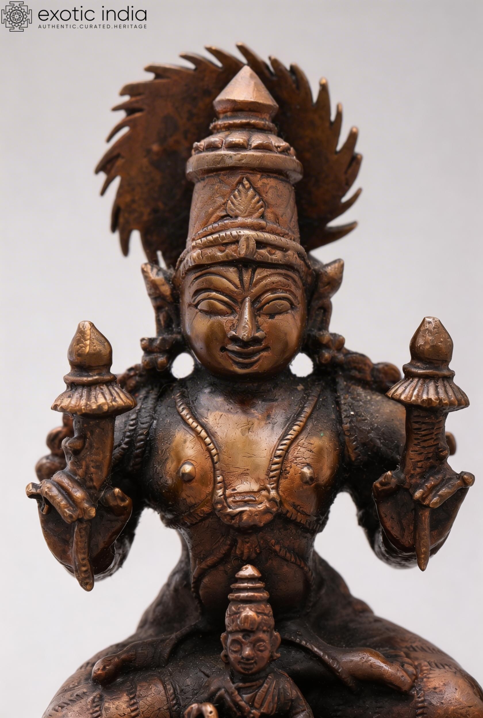 5" Small Goddess Pratyangira (Atharvana Bhadrakali) | Copper Statue