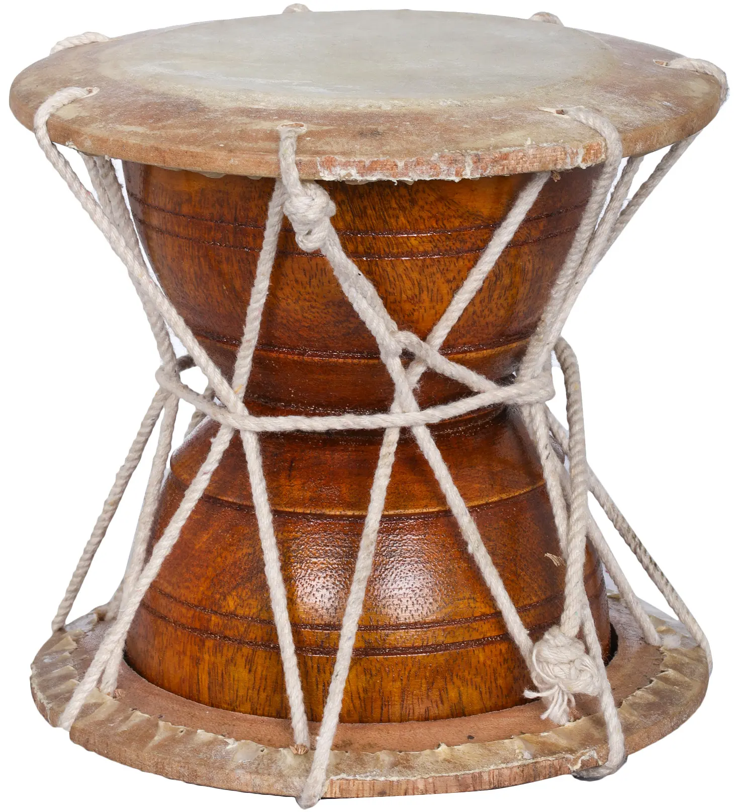 Immerse yourself in the resonant history and spiritual significance of this exquisite wooden damru. More than just a musical instrument, the damru is a profound symbol deeply interwoven with the fabric of Hindu mythology and spiritual practice. Its unique hourglass shape and dual-toned sound are said to have been created by Lord Shiva himself, the cosmic dancer and destroyer, to produce the primal sound of creation, Om. Legend has it that as Shiva performed his Tandava, the universe vibrated with the rhythmic beat of his damru, setting the cosmic rhythm that governs all existence.