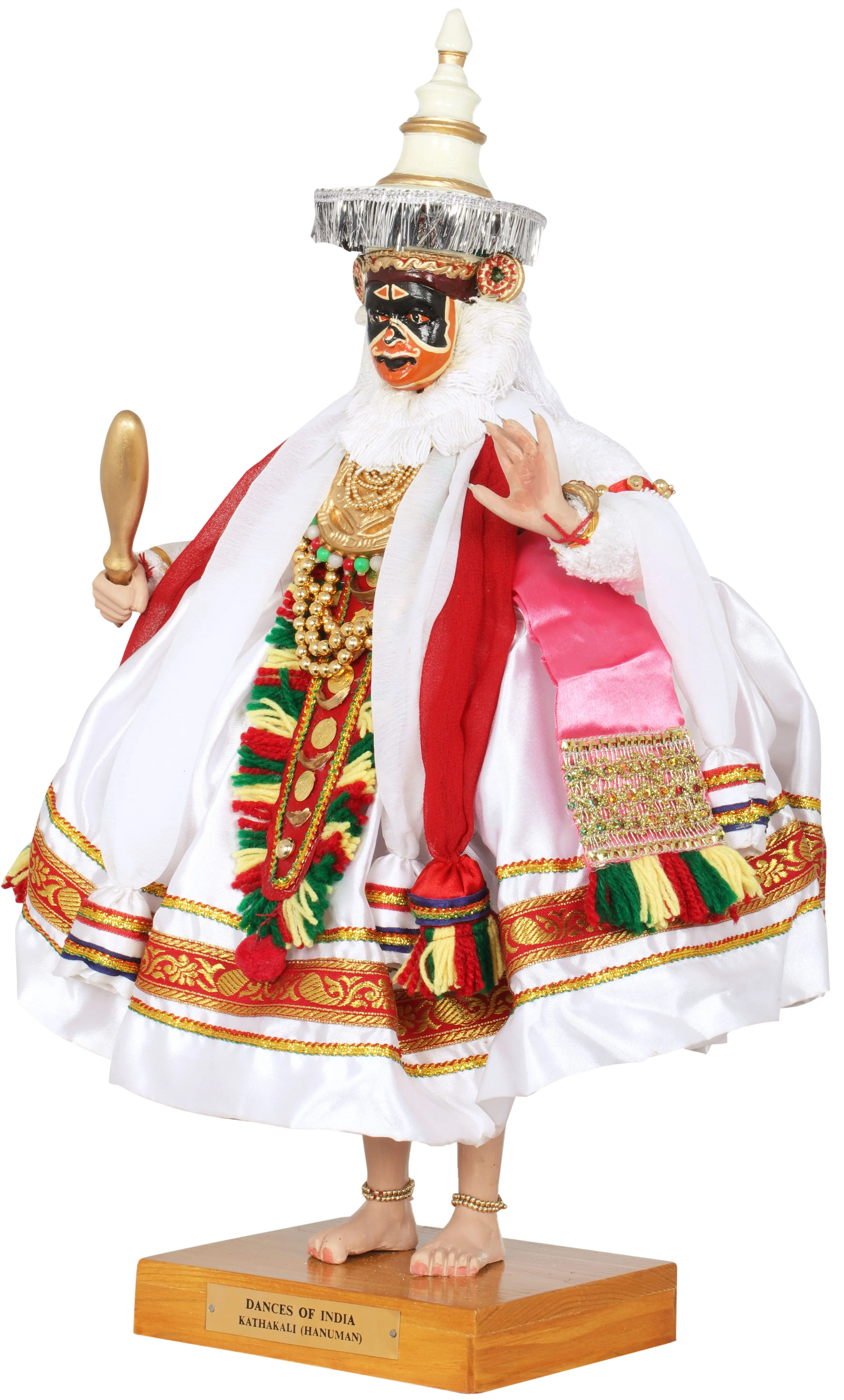 The representation of Hanuman in Kathakali is particularly powerful. His portrayal often signifies immense strength, the ability to overcome obstacles, and a deep, unyielding devotion. In the Ramayana, Hanuman’s leaps across oceans, his role in building the bridge to Lanka, and his fearless confrontation with Ravana highlight his extraordinary might. He is revered as a symbol of *bhakti* (devotion) and *shakti* (power). This figurine, with its detailed costume and striking appearance, evokes the very spirit of this beloved deity as he might appear on the Kathakali stage, ready to narrate tales of heroism and unwavering faith.